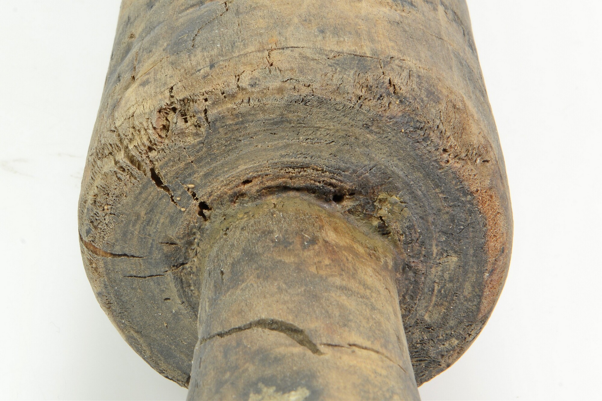 Kardoesmal; monster met minuscule fragmentjes van resten van een draagkoord (touw?) bijgevoegd
