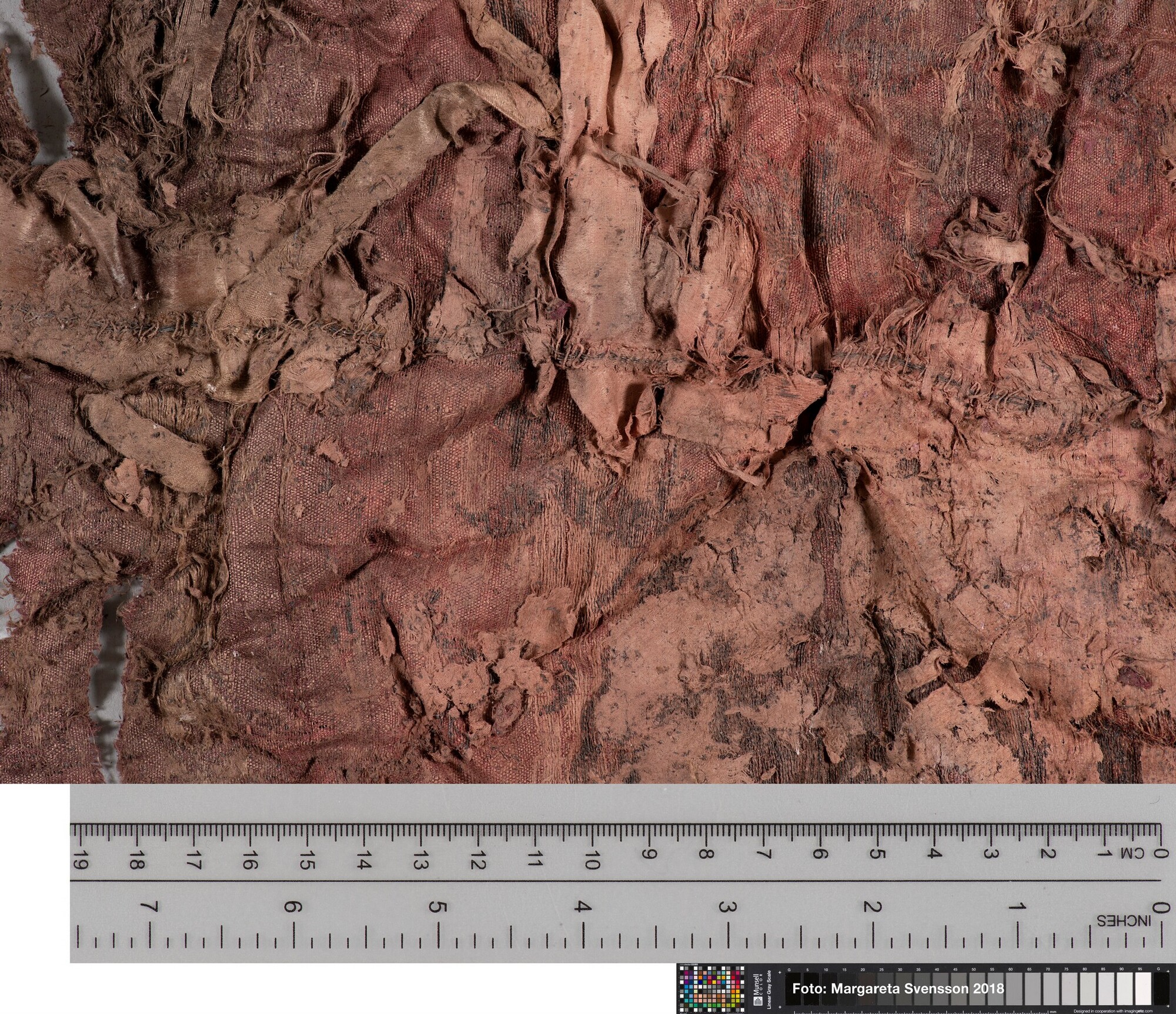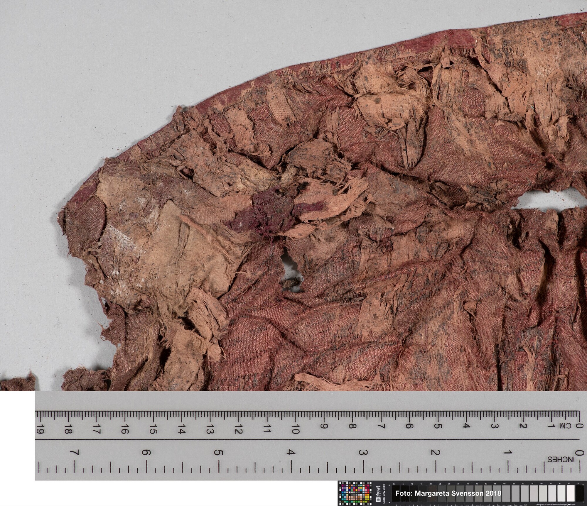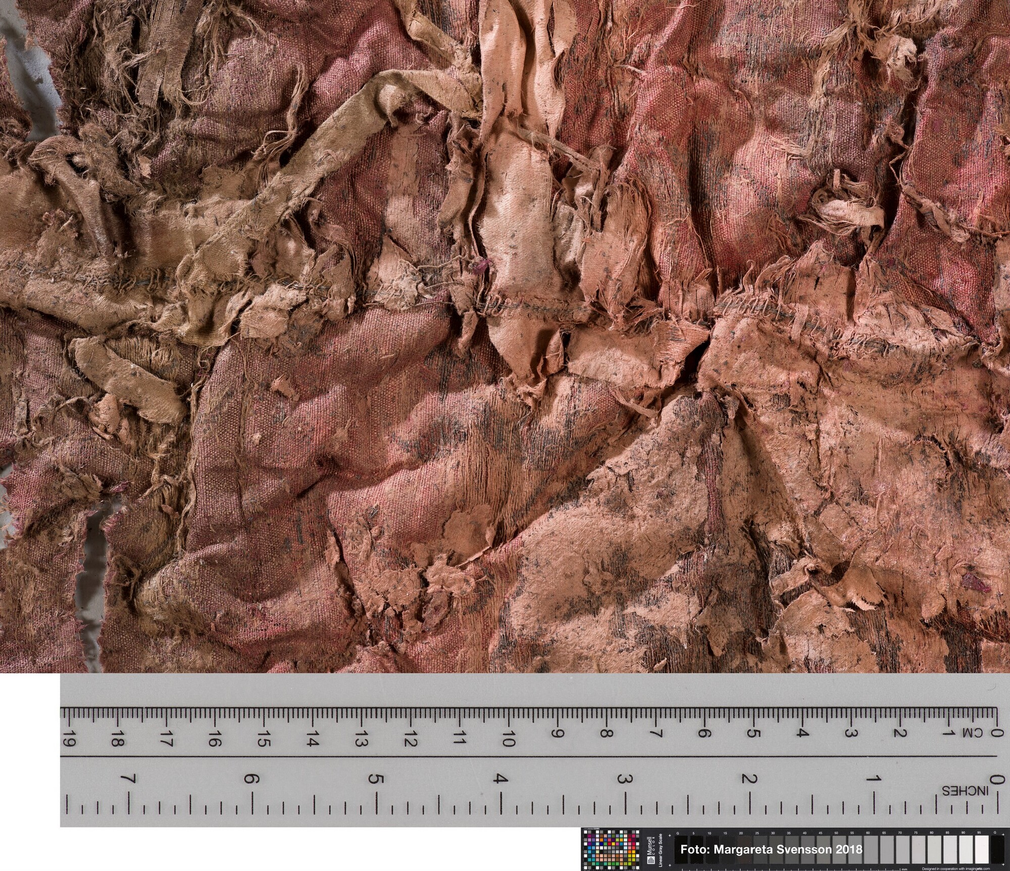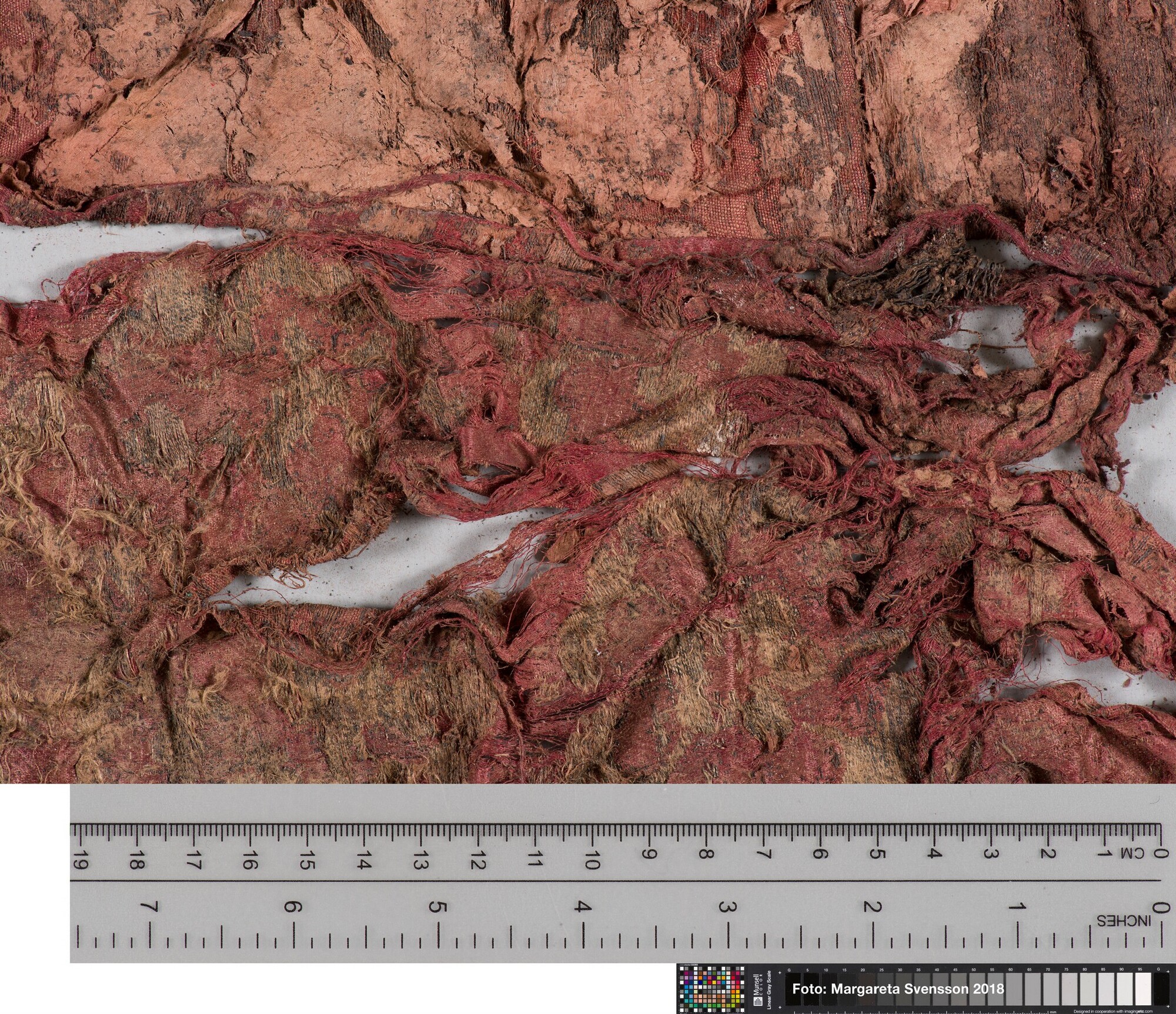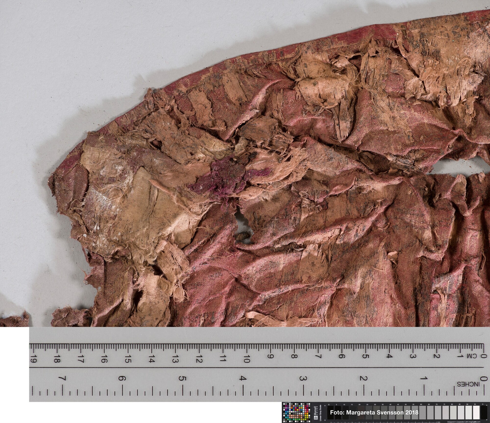 Basisweefsel van satijngeweven zijde, brokaat weefsel met ingeweven patronen van metaaldraad; naden/zomen zichtbaar aan twee zijden; voering met mogelijk een sierband of naad; mogelijk onderdeel van een kostuum