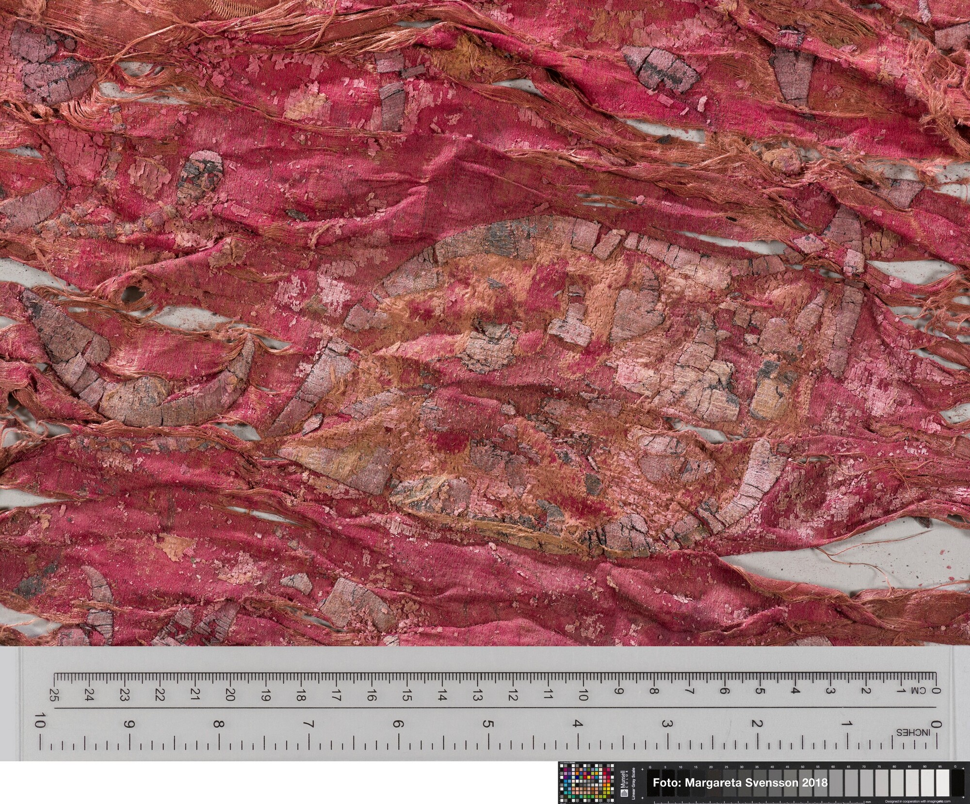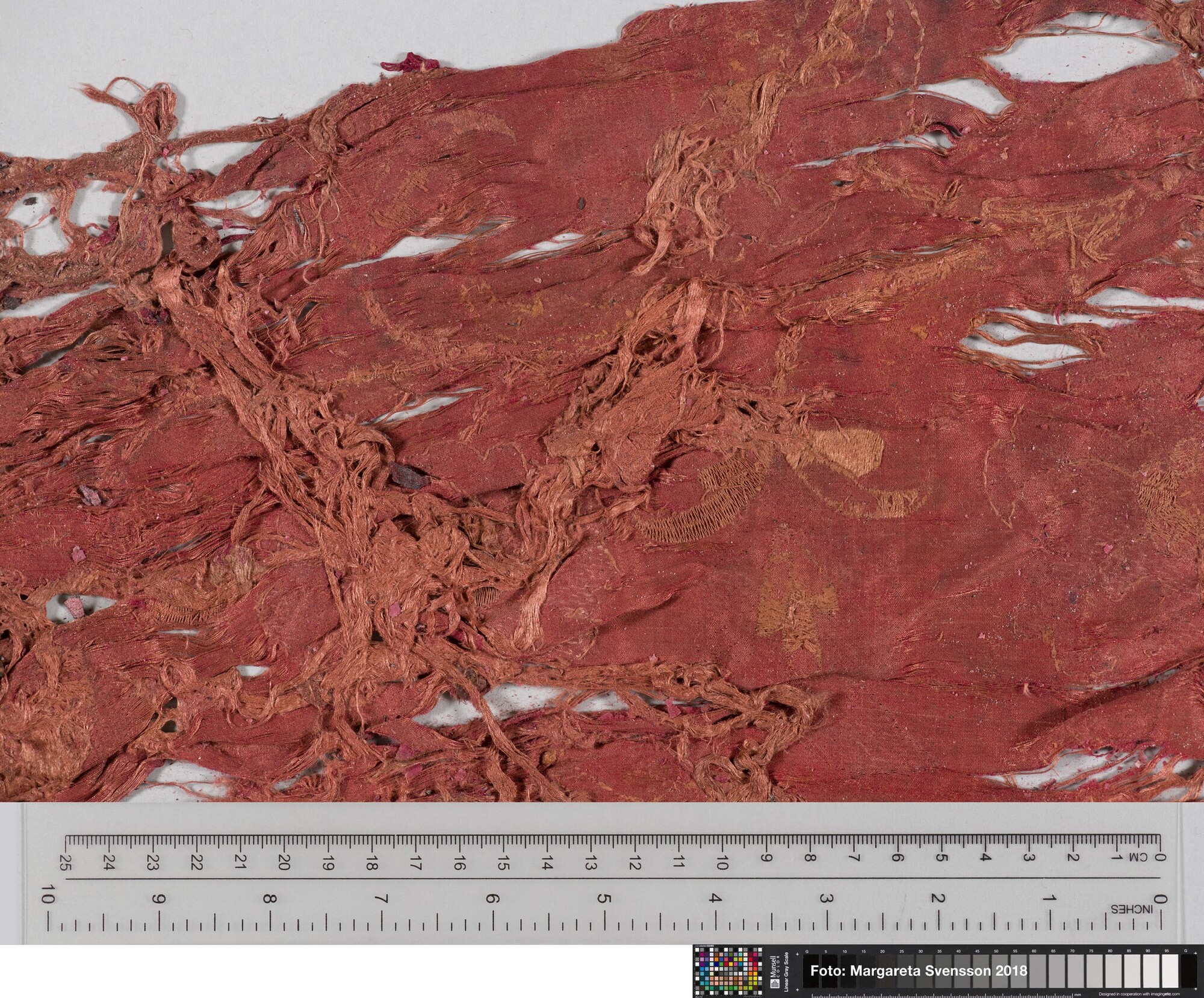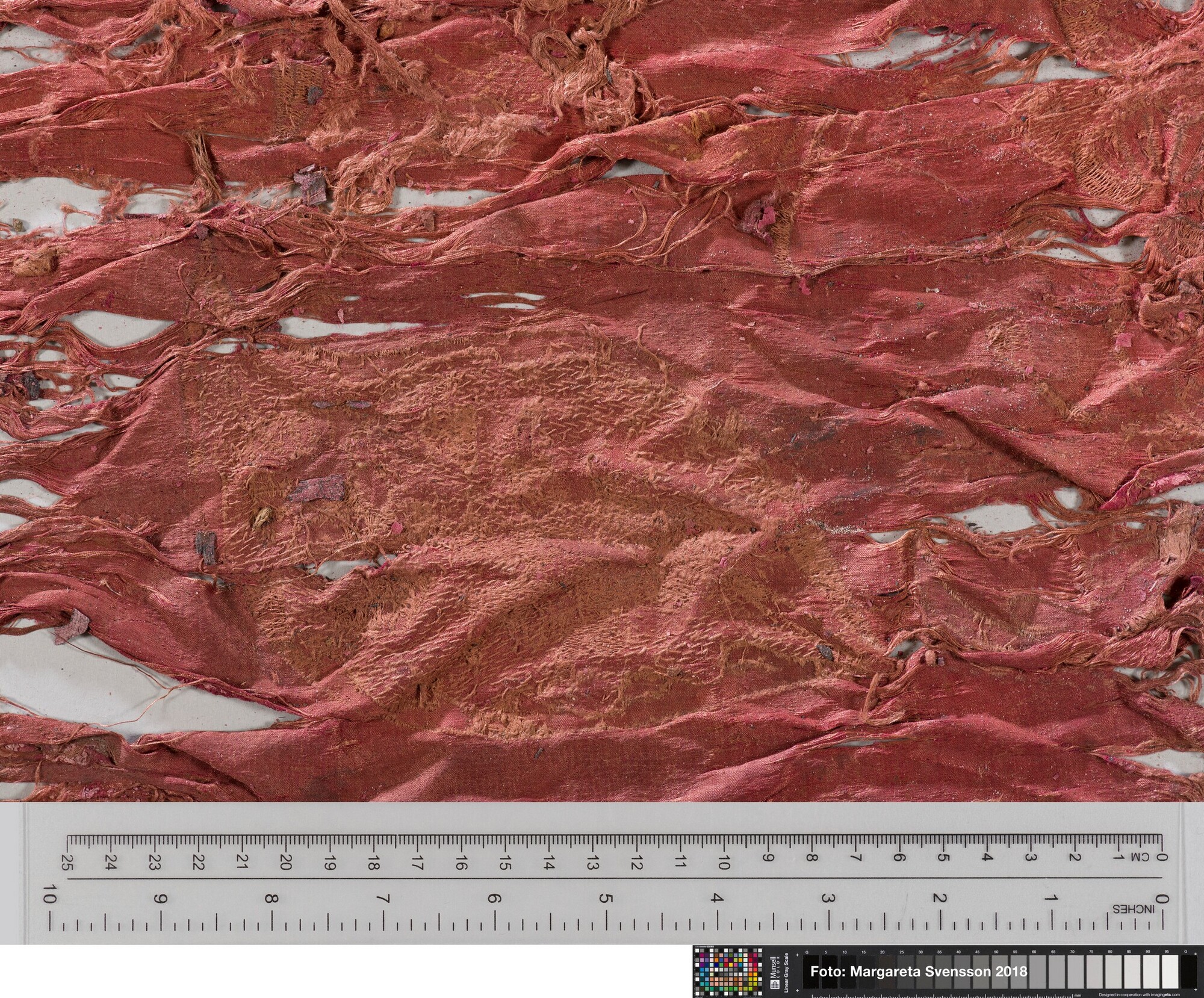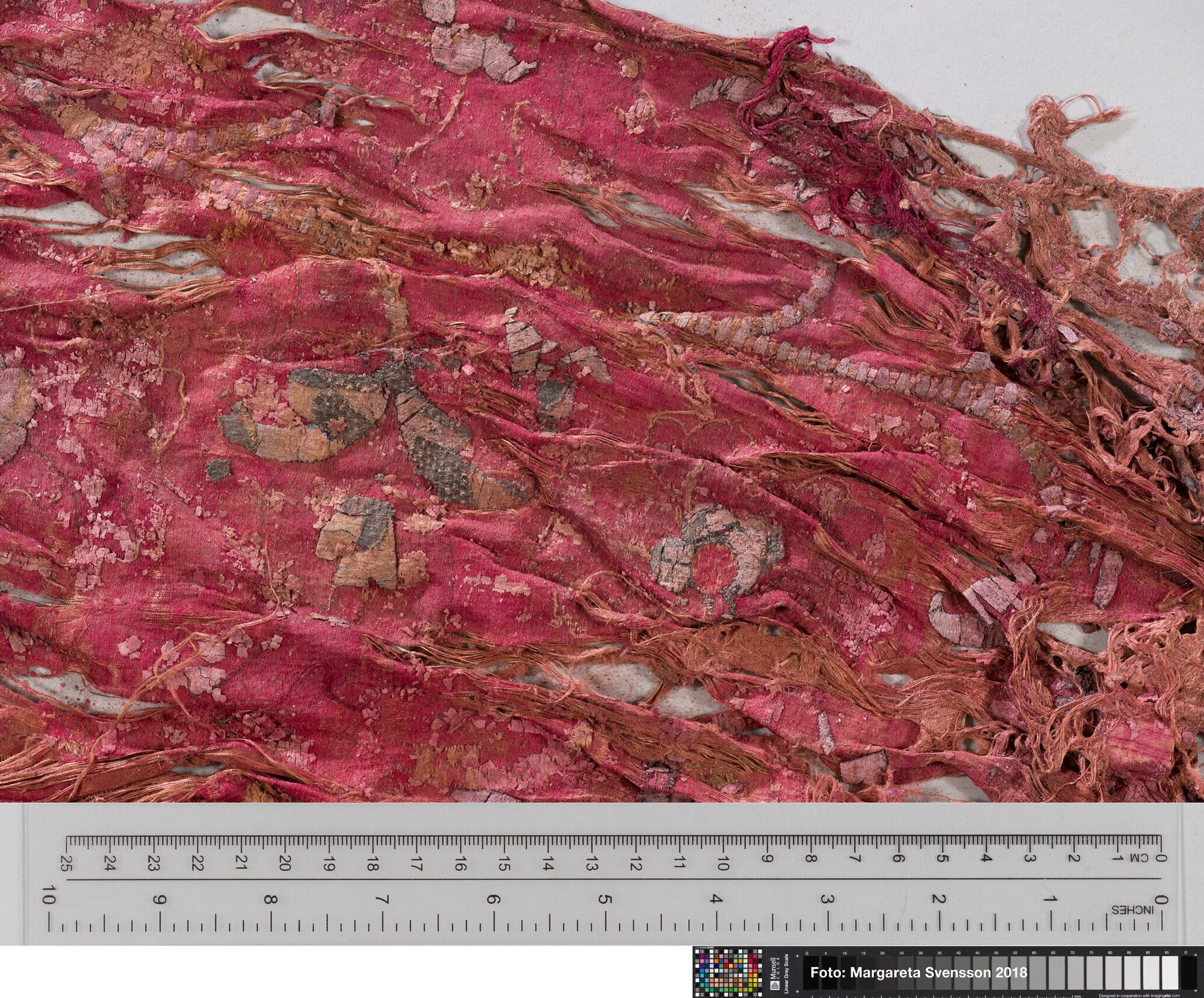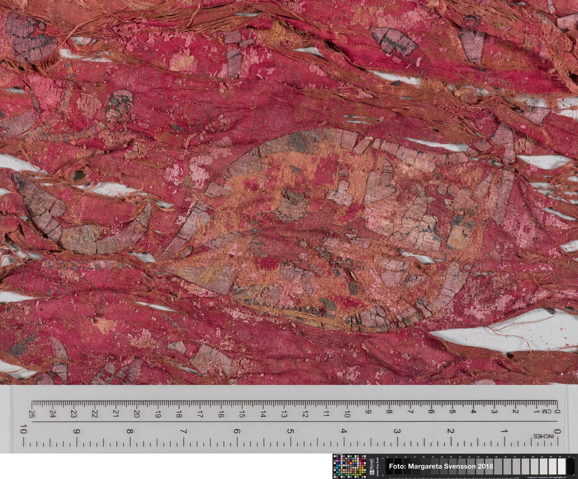 Rechthoekig basisweefsel van satijngeweven zijde, versierd met dikke metaalborduursels en opgenaaide contourdraden; florale en moerab motieven; voering