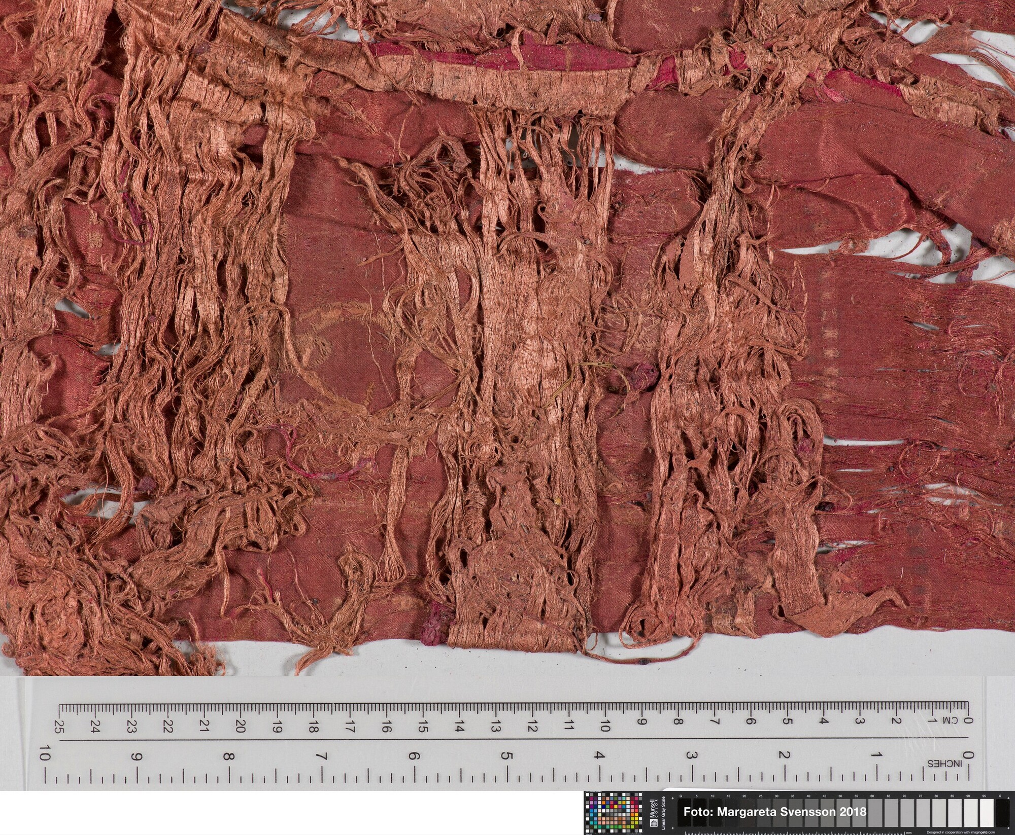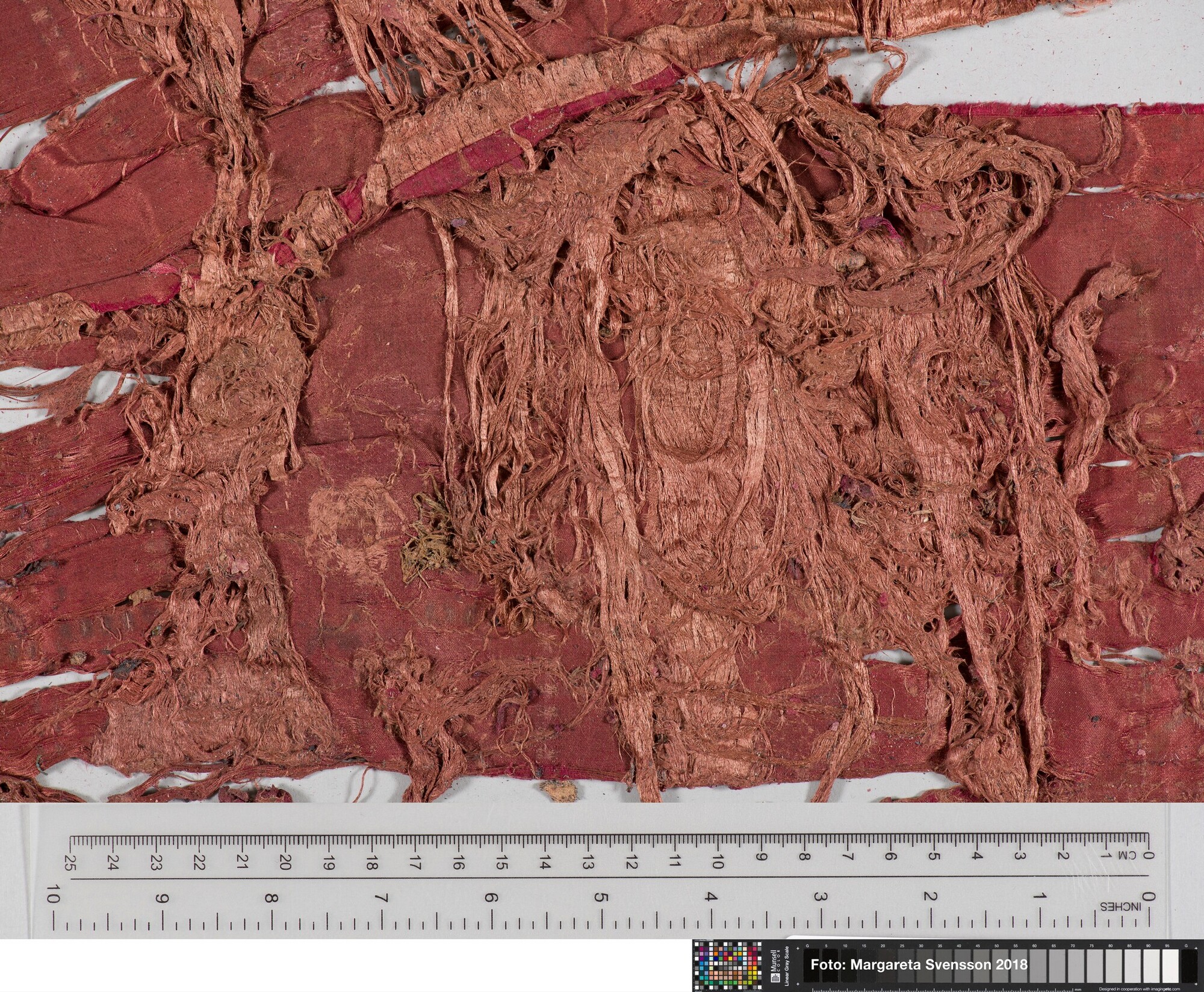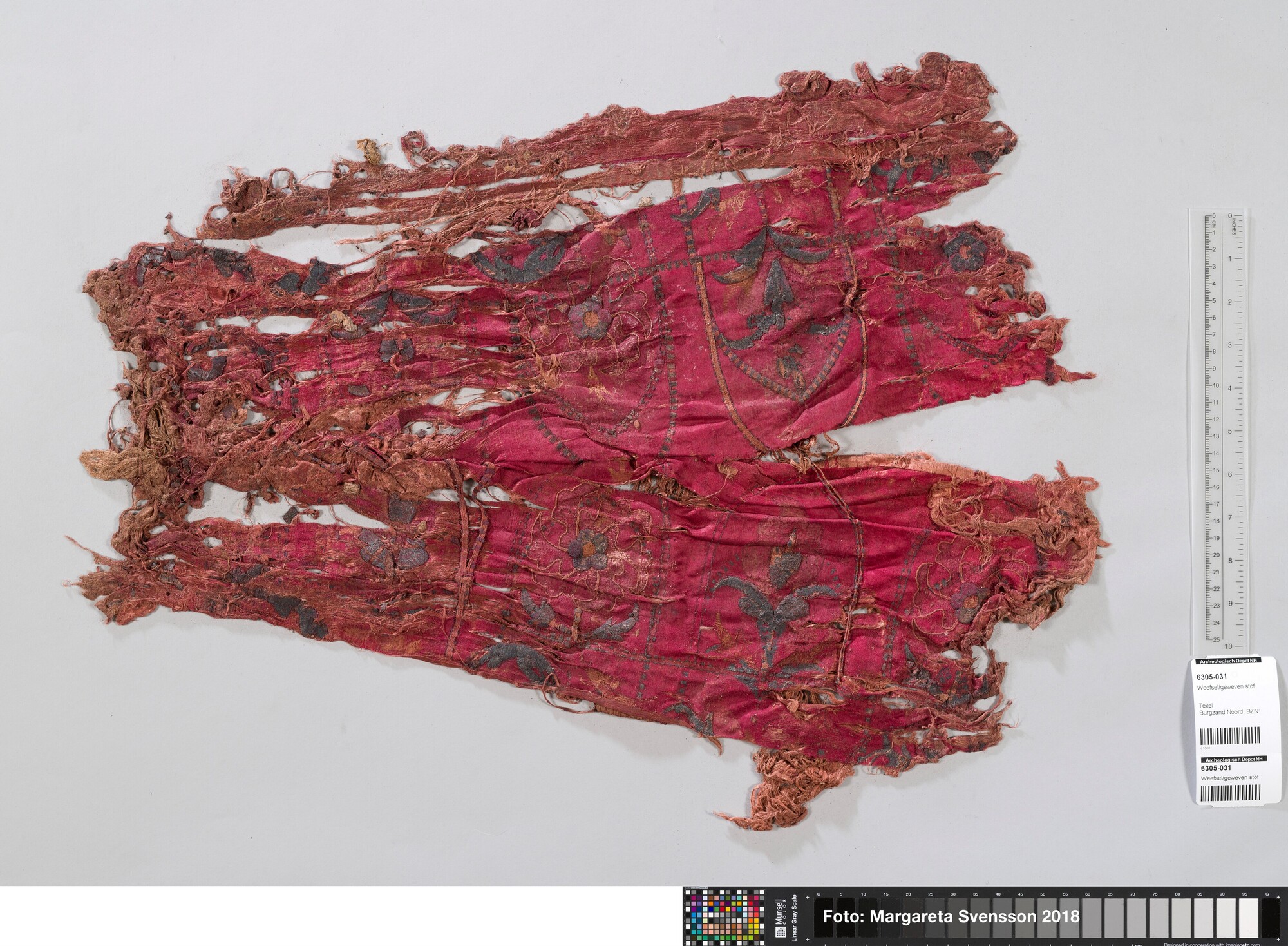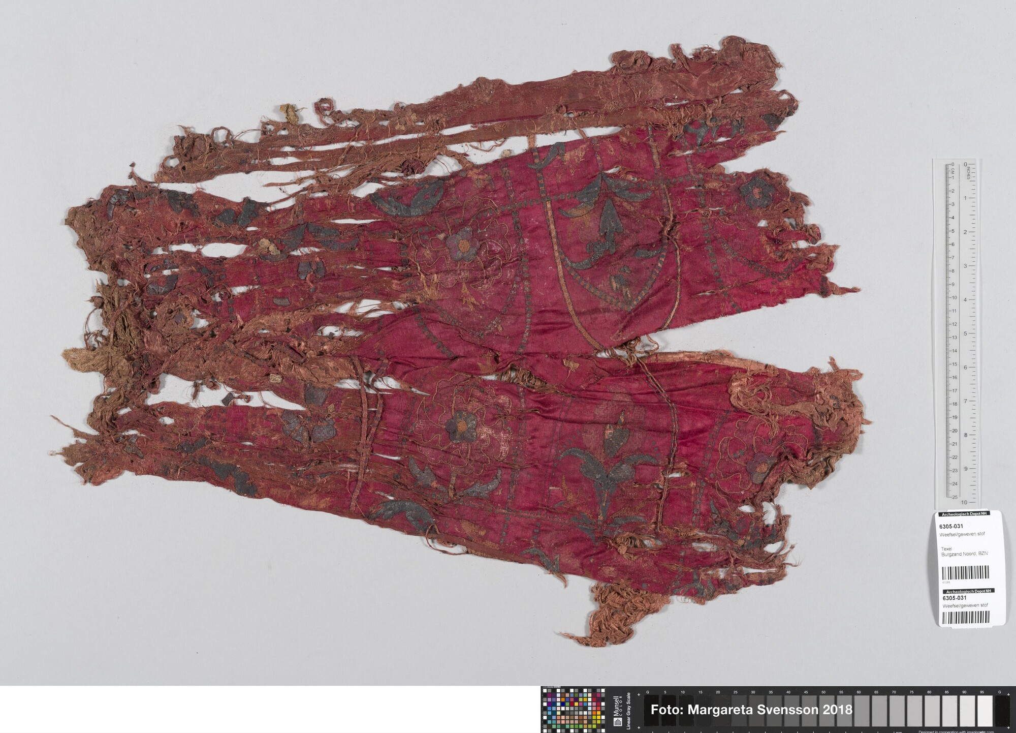 Rechthoekig basisweefsel van satijngeweven zijde, versierd met dikke metaalborduursels en opgenaaide contourdraden; florale en moerab motieven; voering
