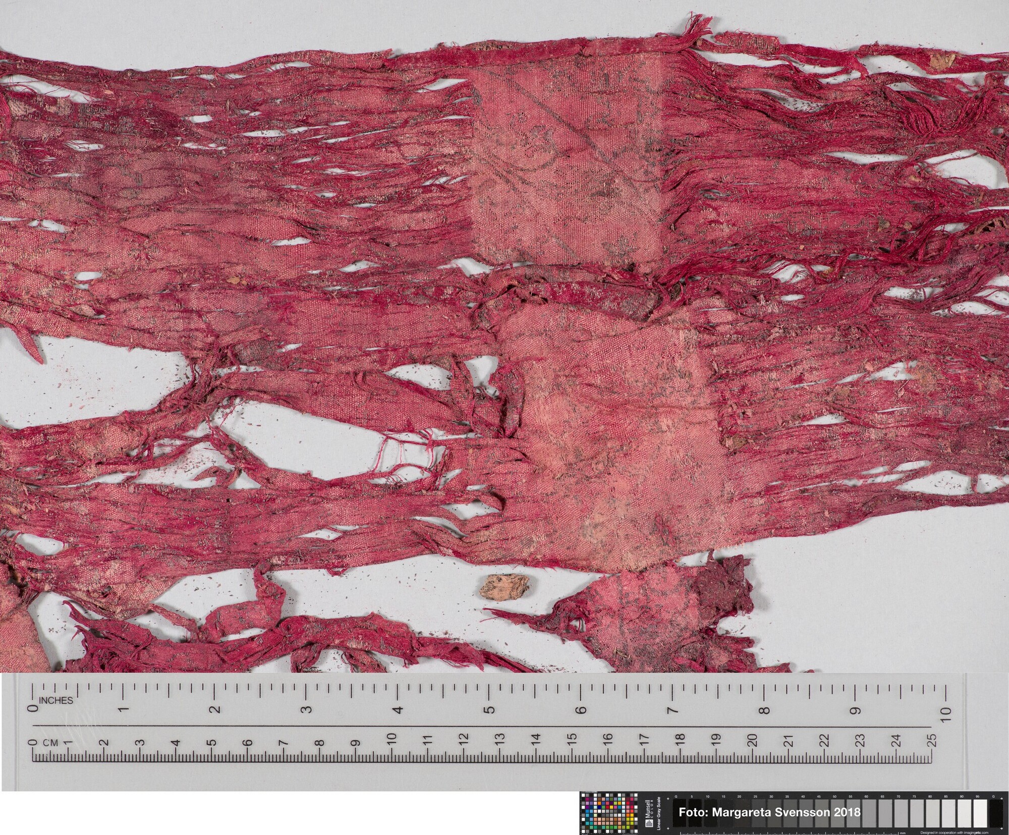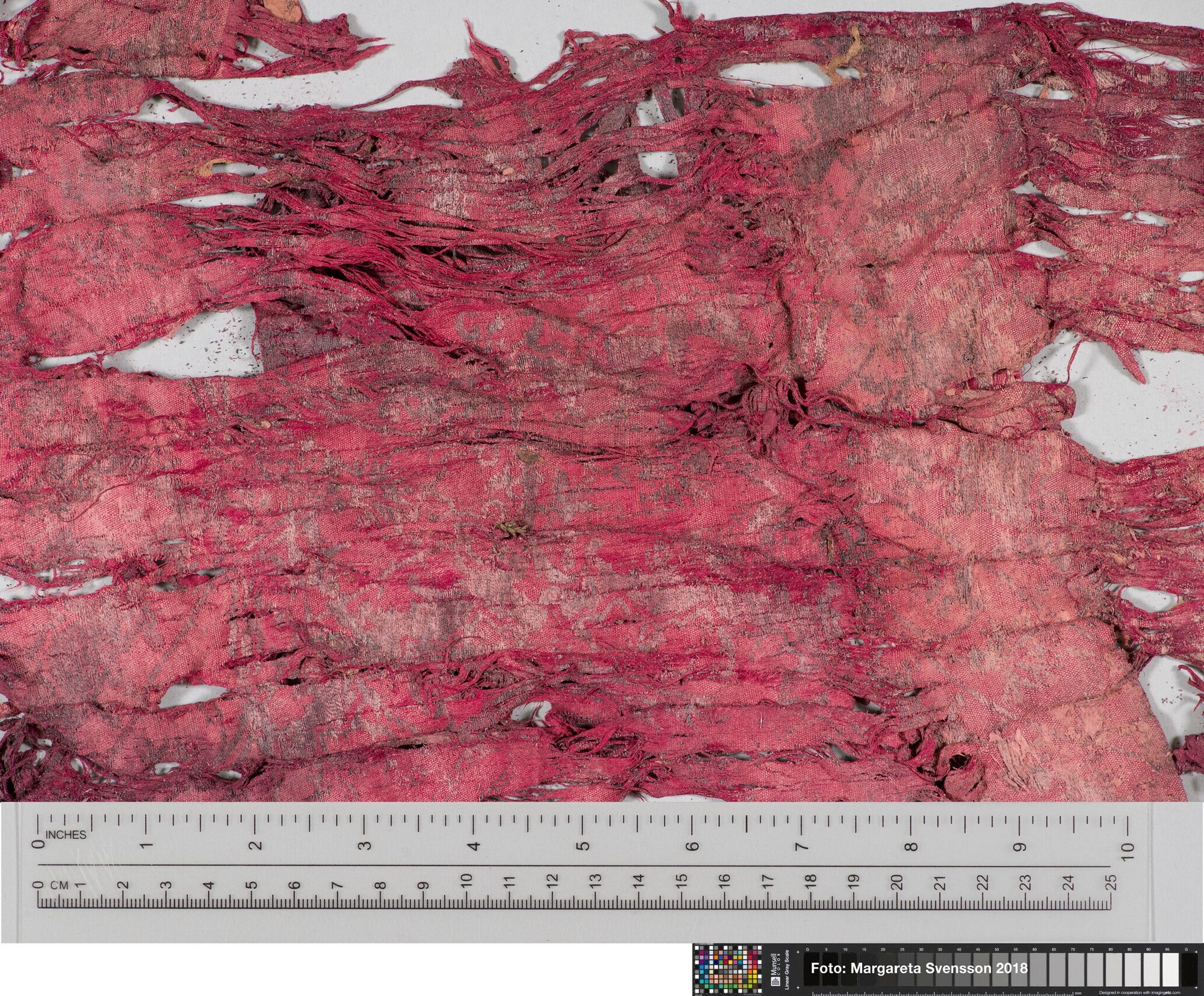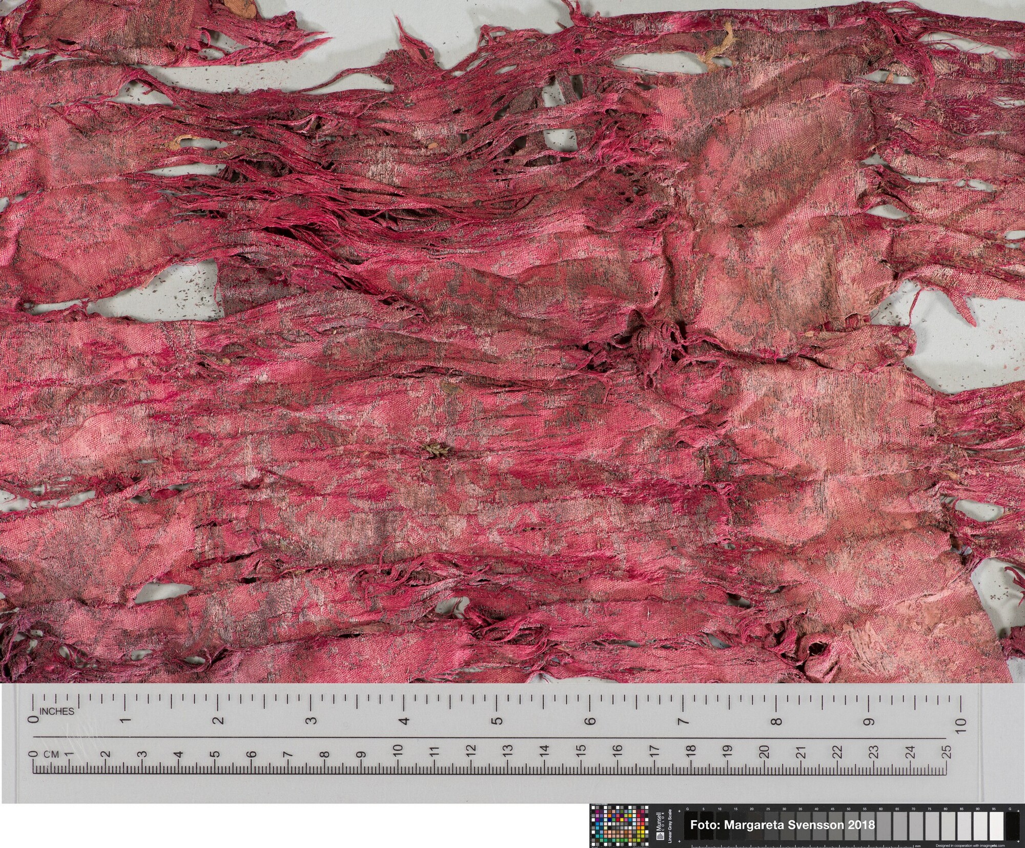 Rechthoekig fragment damast geweven zijde met ingeweven metaaldraad (brokaat), aan de voorzijde satijnweefsel, floraal motief ?