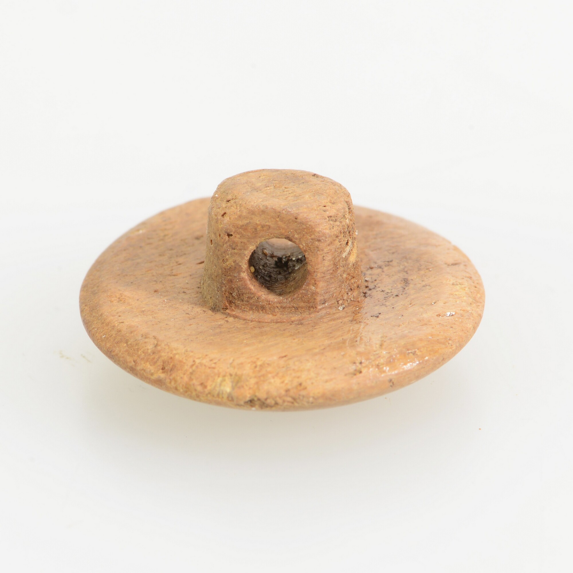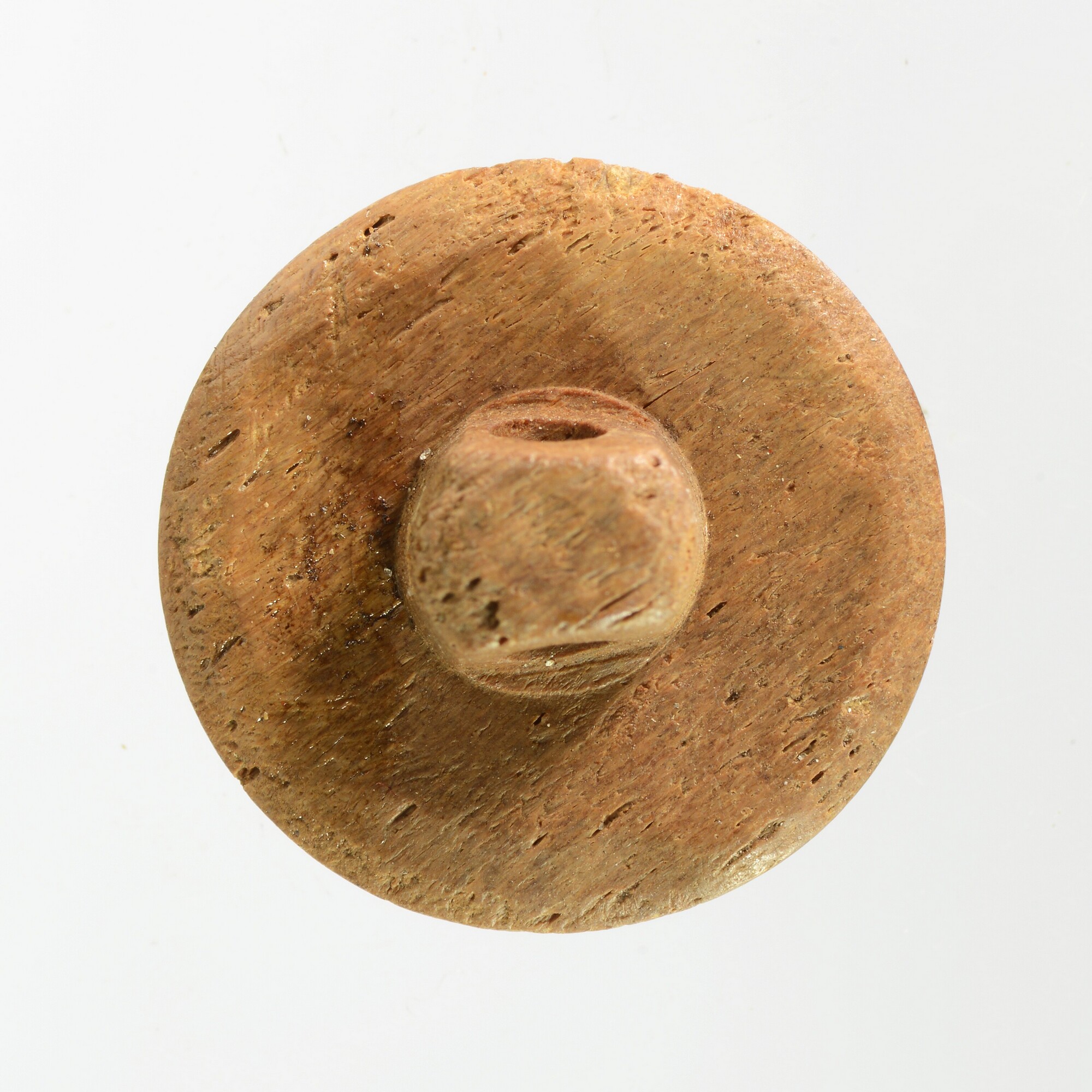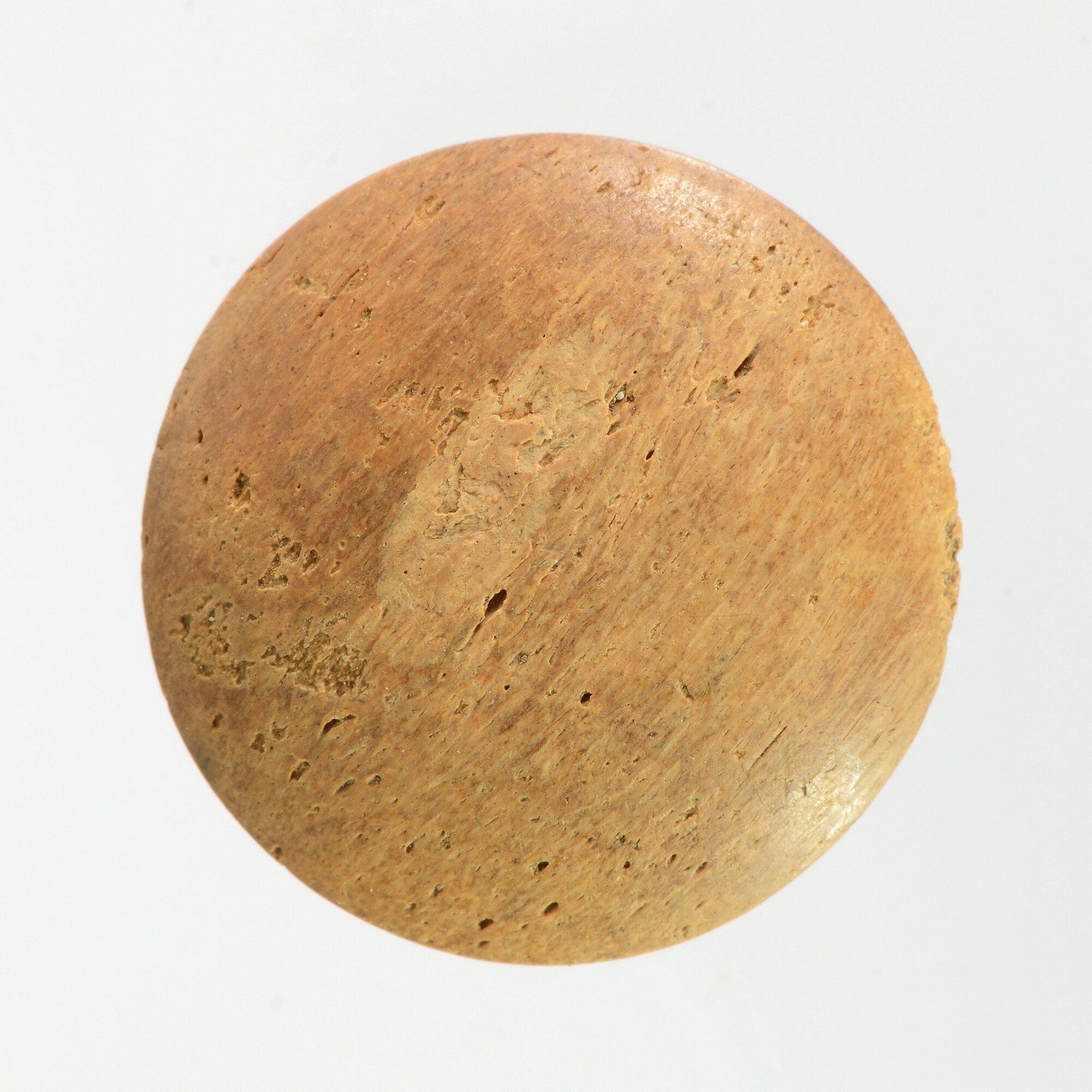 Knoop; dierlijk bot; rond, gebolde voorzijde, achterzijde met opstaand oog