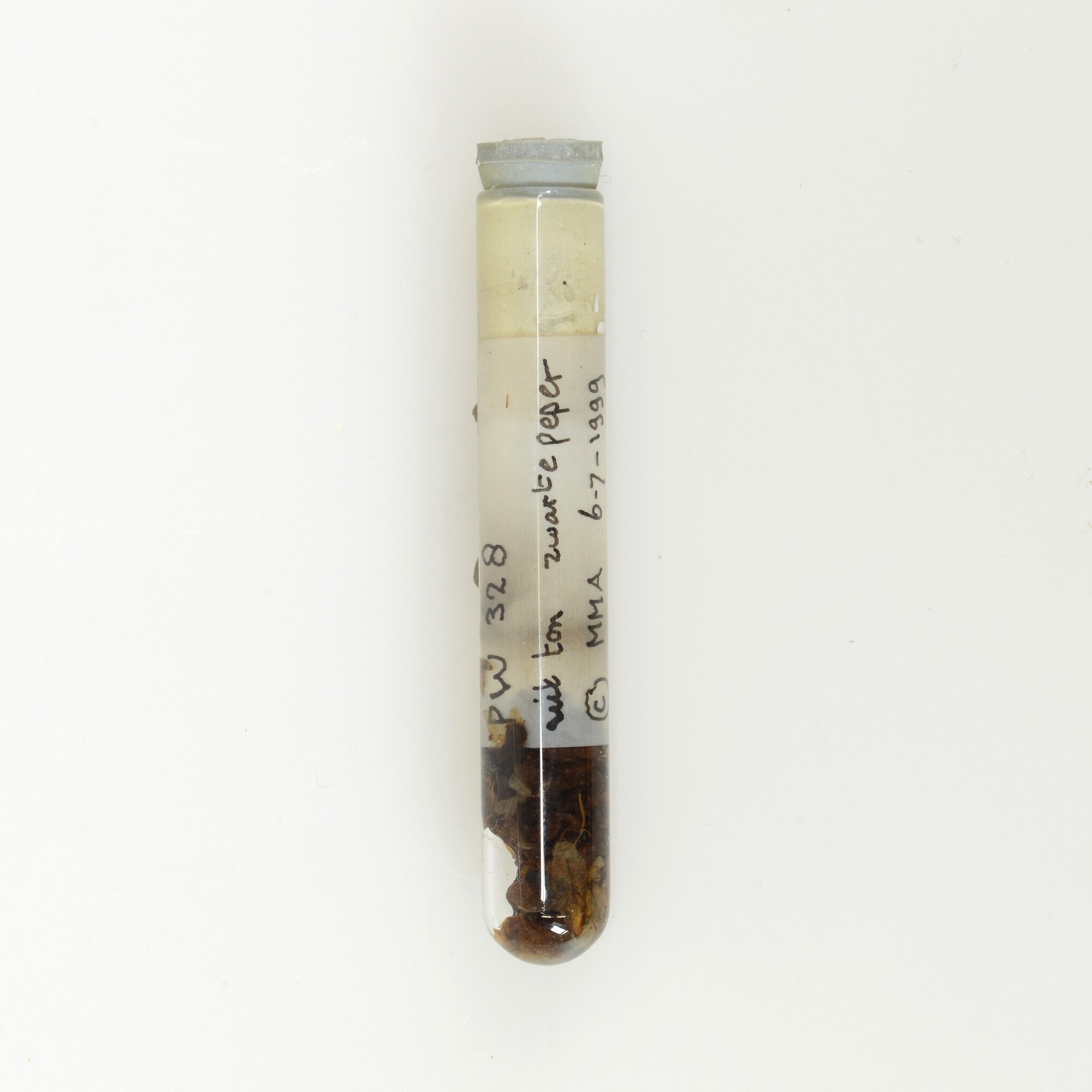 Reageerbuis met monsters van peper, rijst en kool