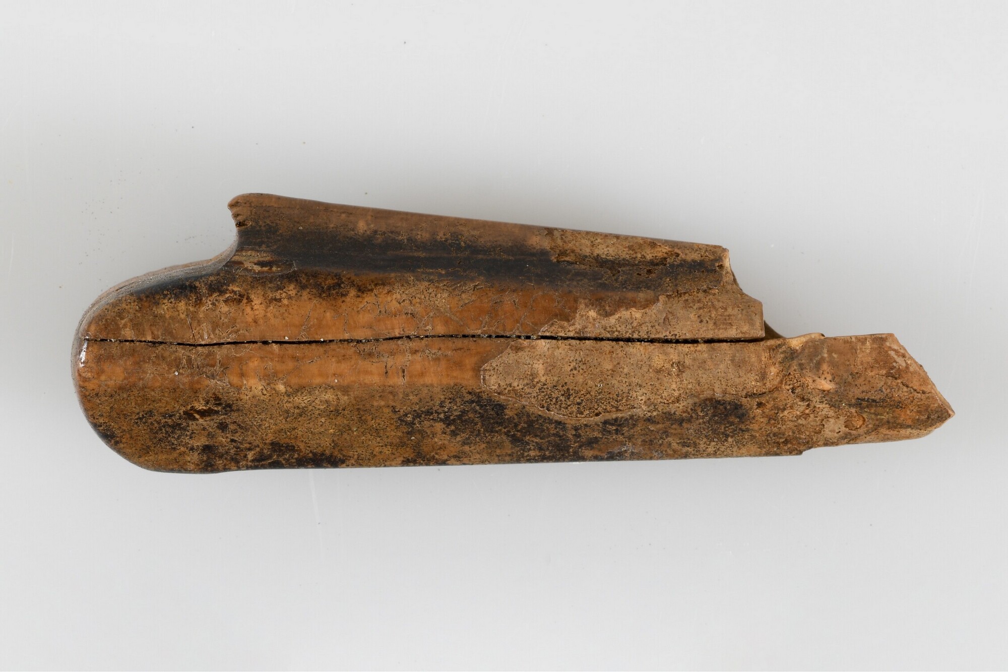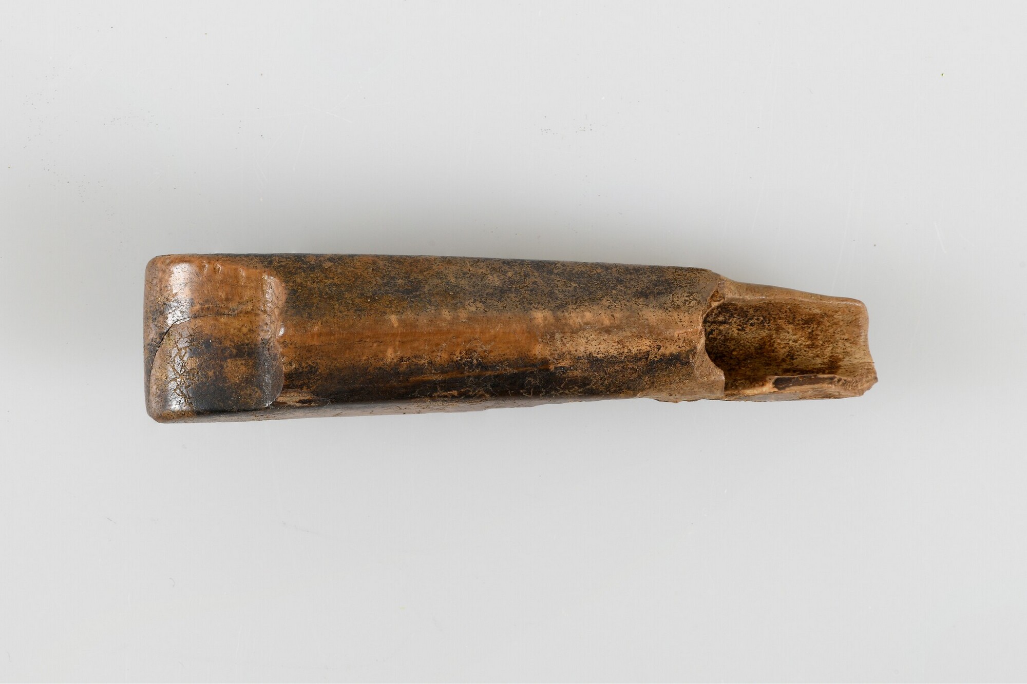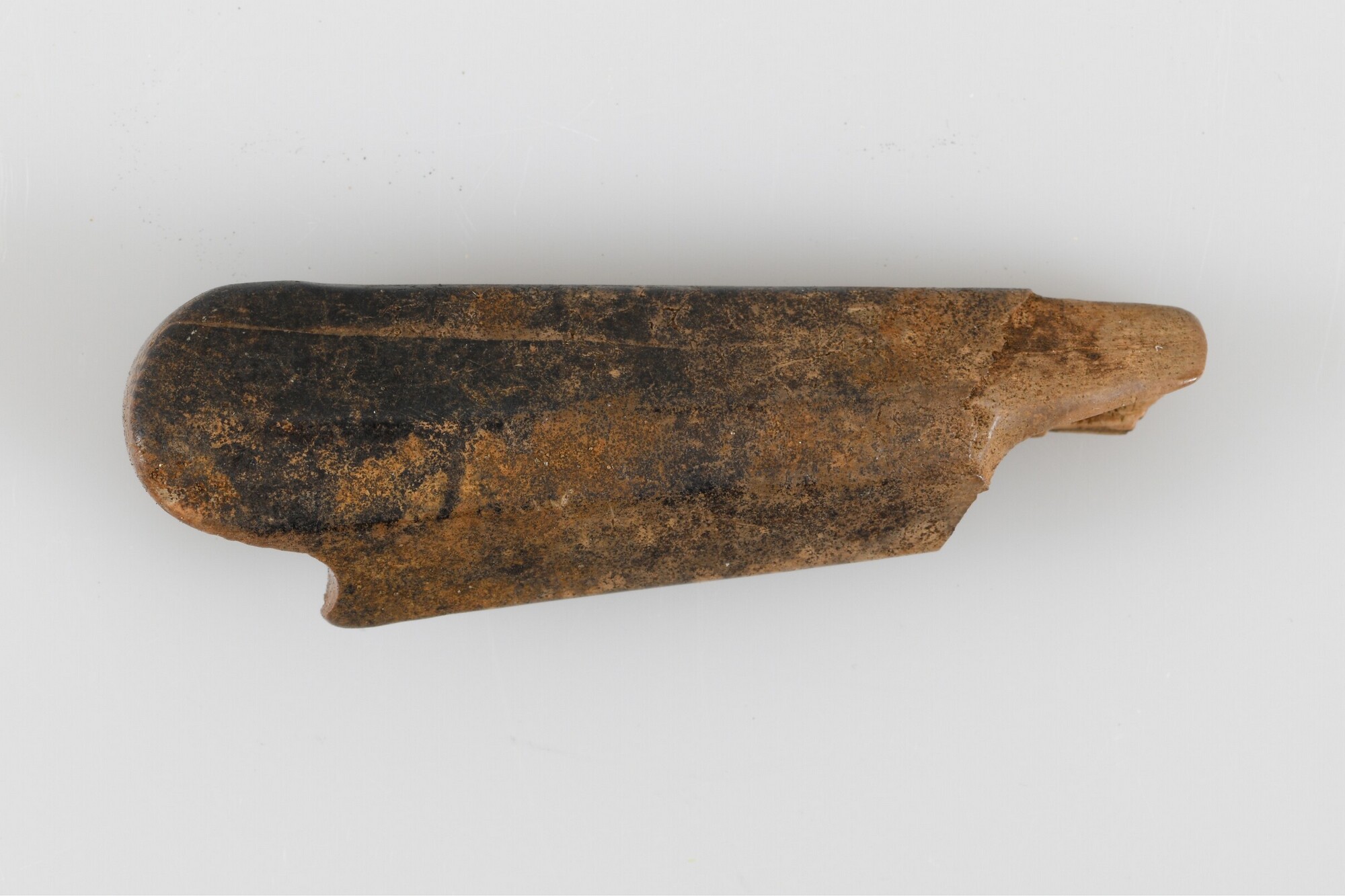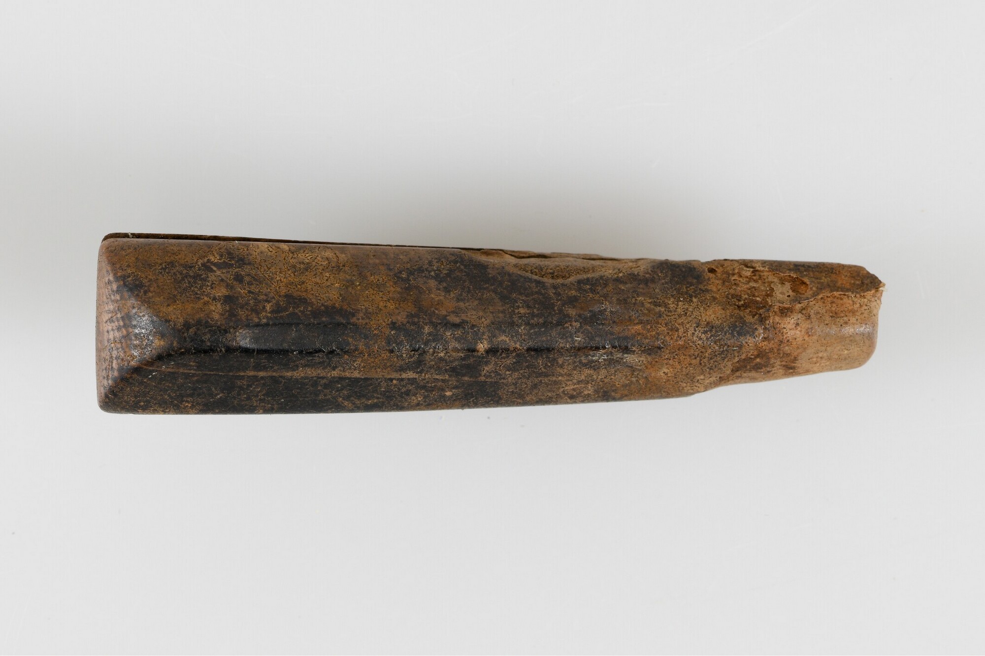 Mesheft; ivoor; afgeronde inkeping aan uiteinde; ijzeren lemmet ontbreekt