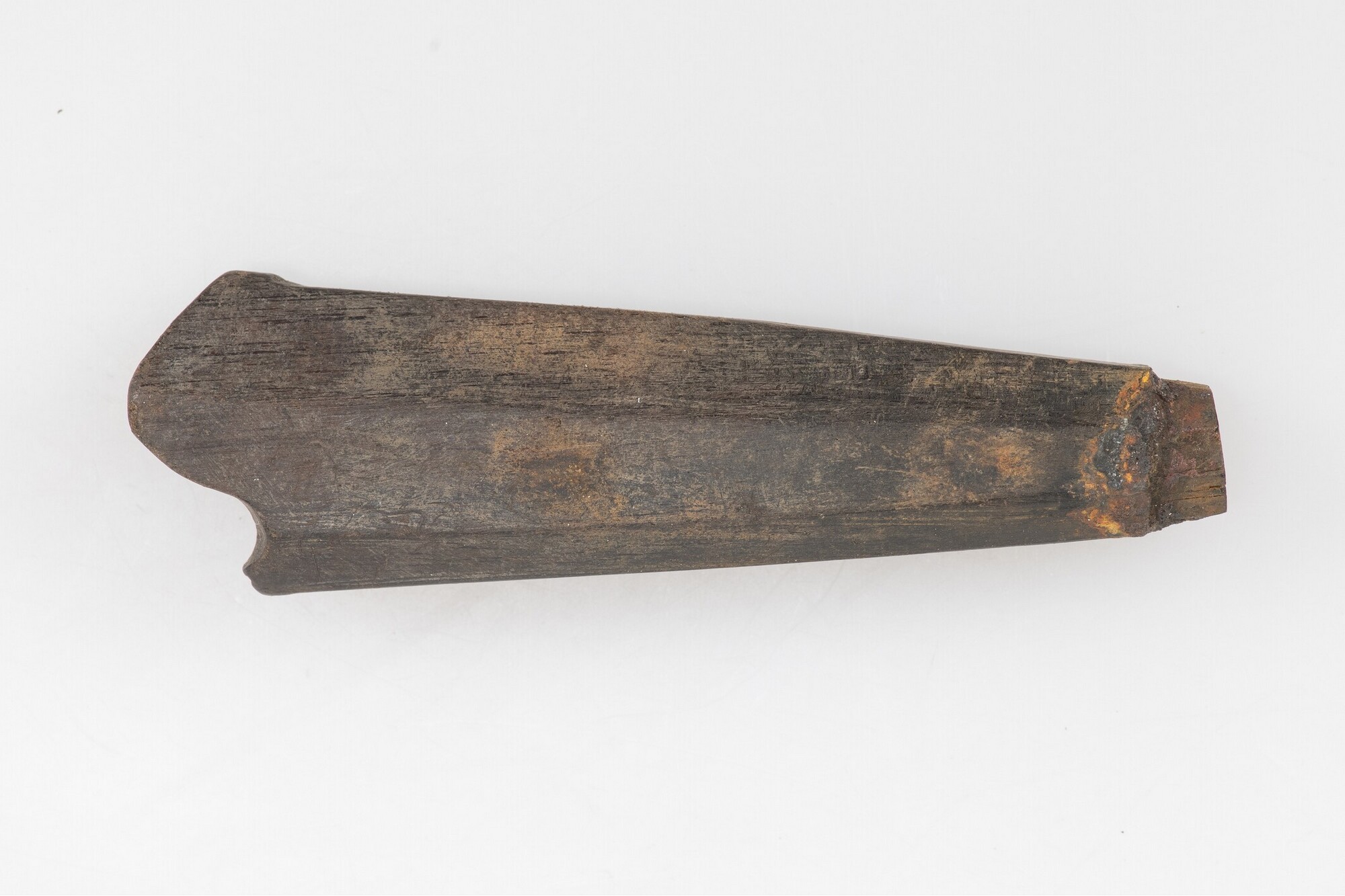 Mesheft; achthoekig heft, taps toelopend met S-vormig uiteinde