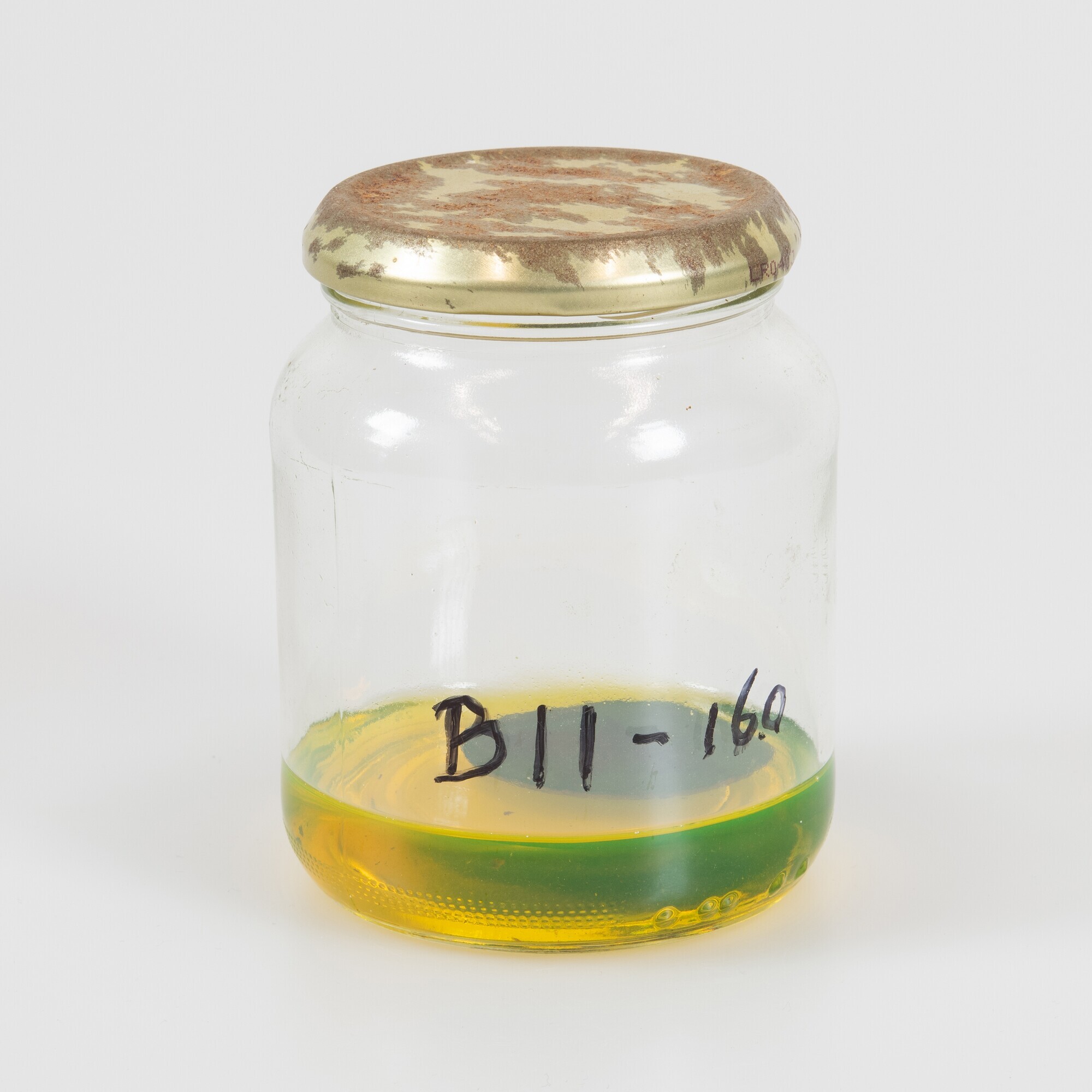 Kruithoorn (fragment); ronde schijf met uitgesneden voorstelling van een soldaat met morionhelm, vermoedelijk deel geweest van een versierde gesneden kruithoorn van kokosnoot (zgn. 'Bug Bear');