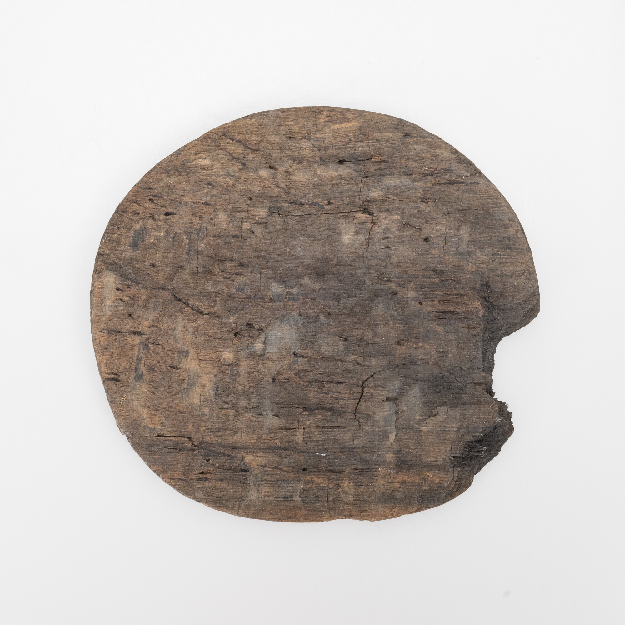 Bodem van kuipemmer van eikenhout; resten van hoepel van essenhout die aan de rand is vastgespijkerd met houten pennetjes