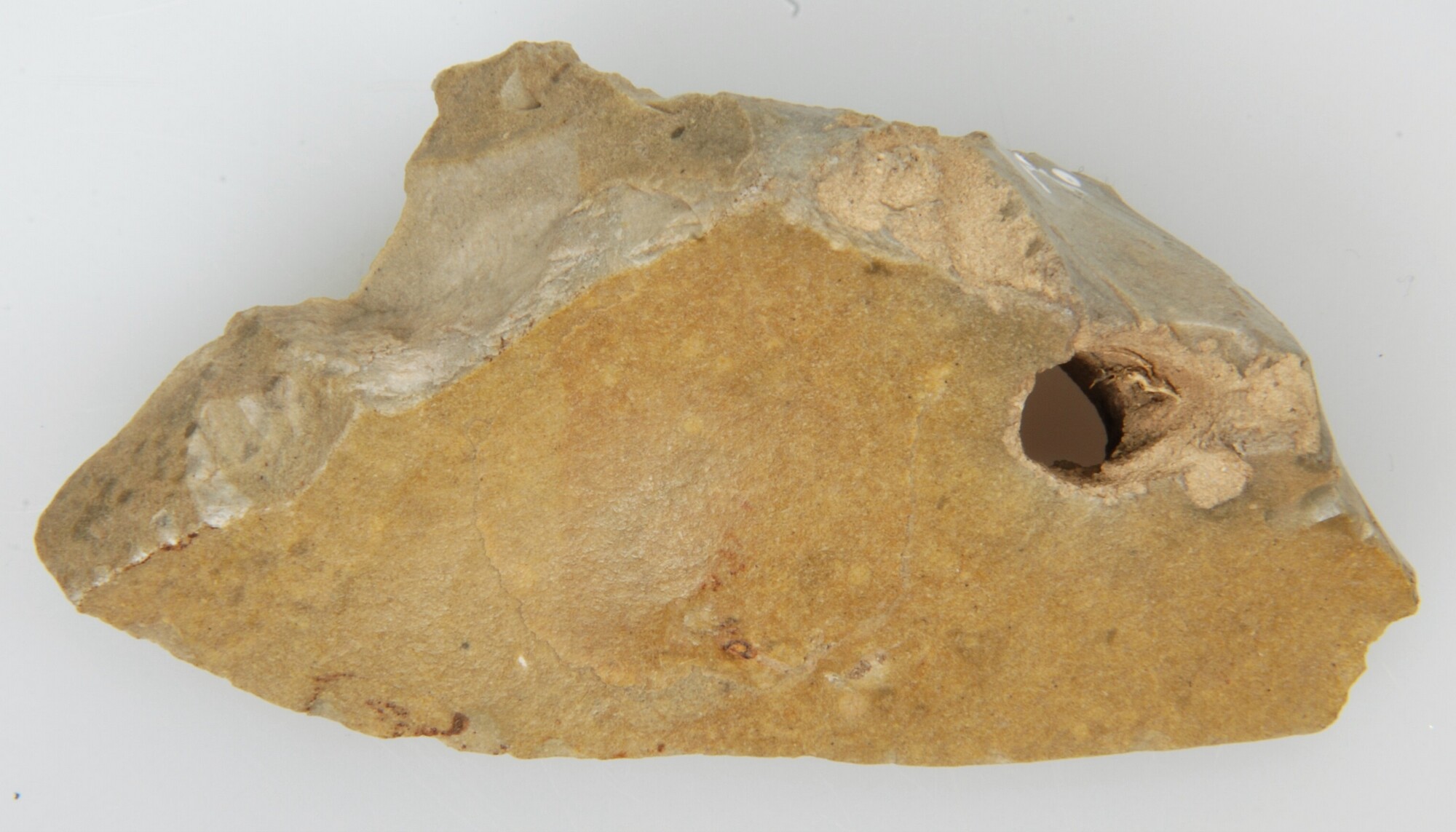Fragment van vuursteenknol met gat (natuurlijk?). DA131