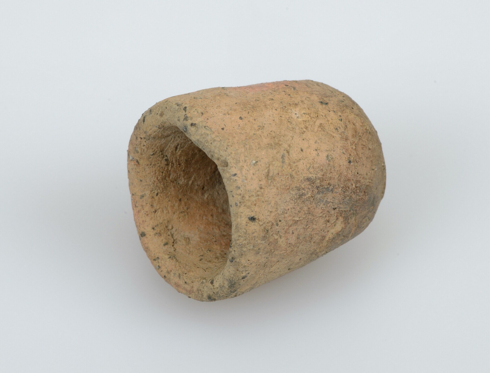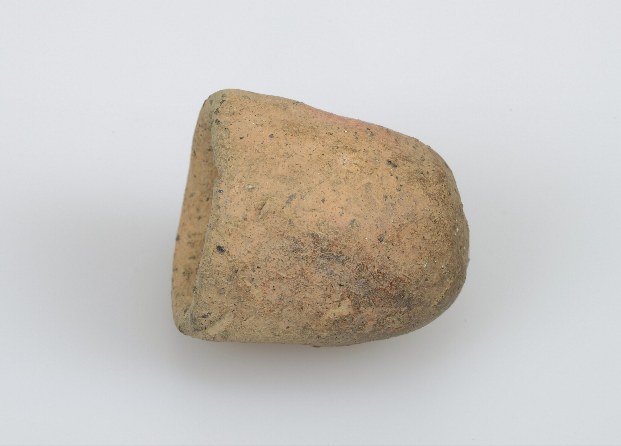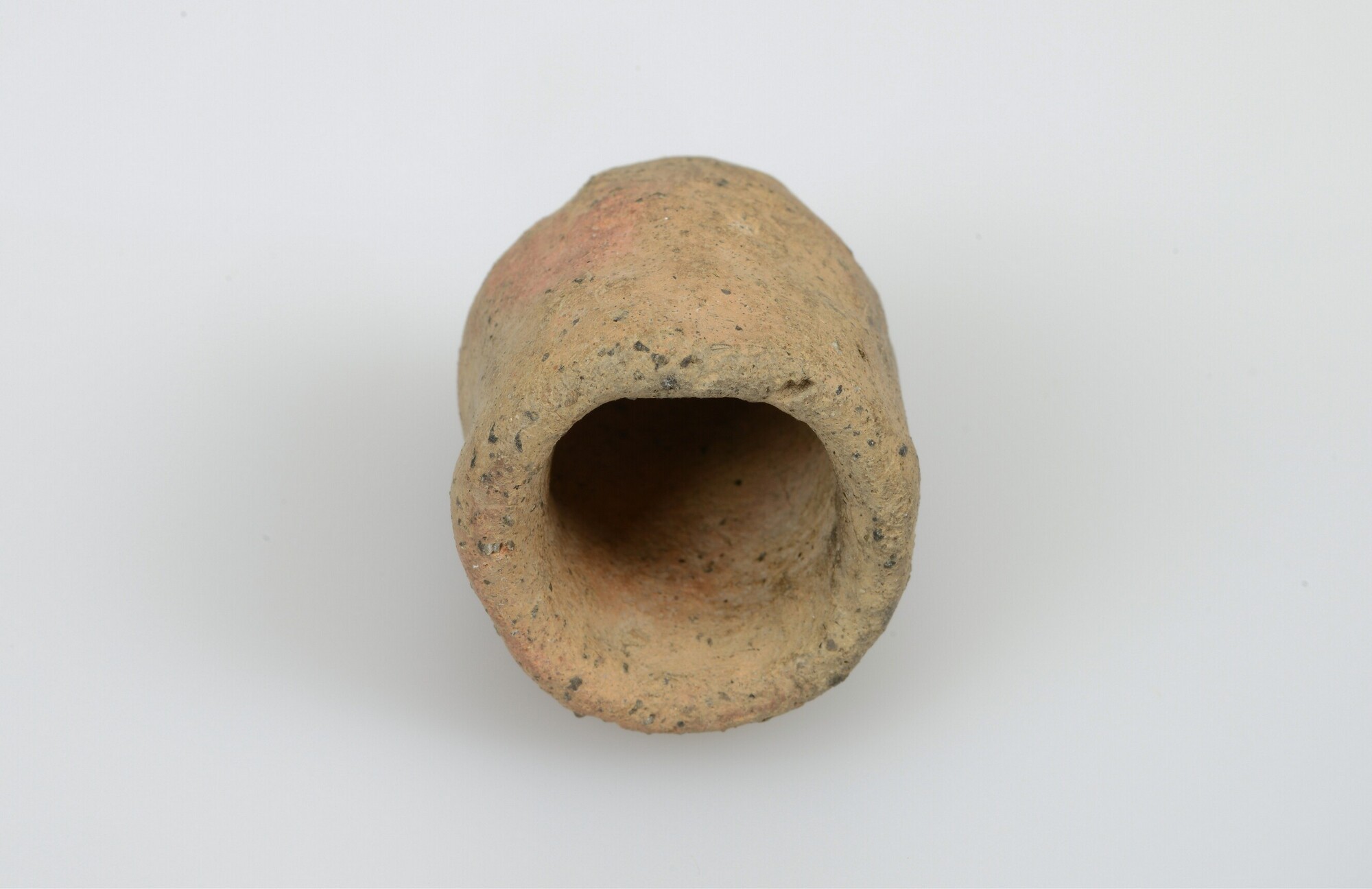 Smeltkroes; ruwwandig aardewerk; klein formaat met bolle bodem en afgeplatte rand; fijne steengruis magering