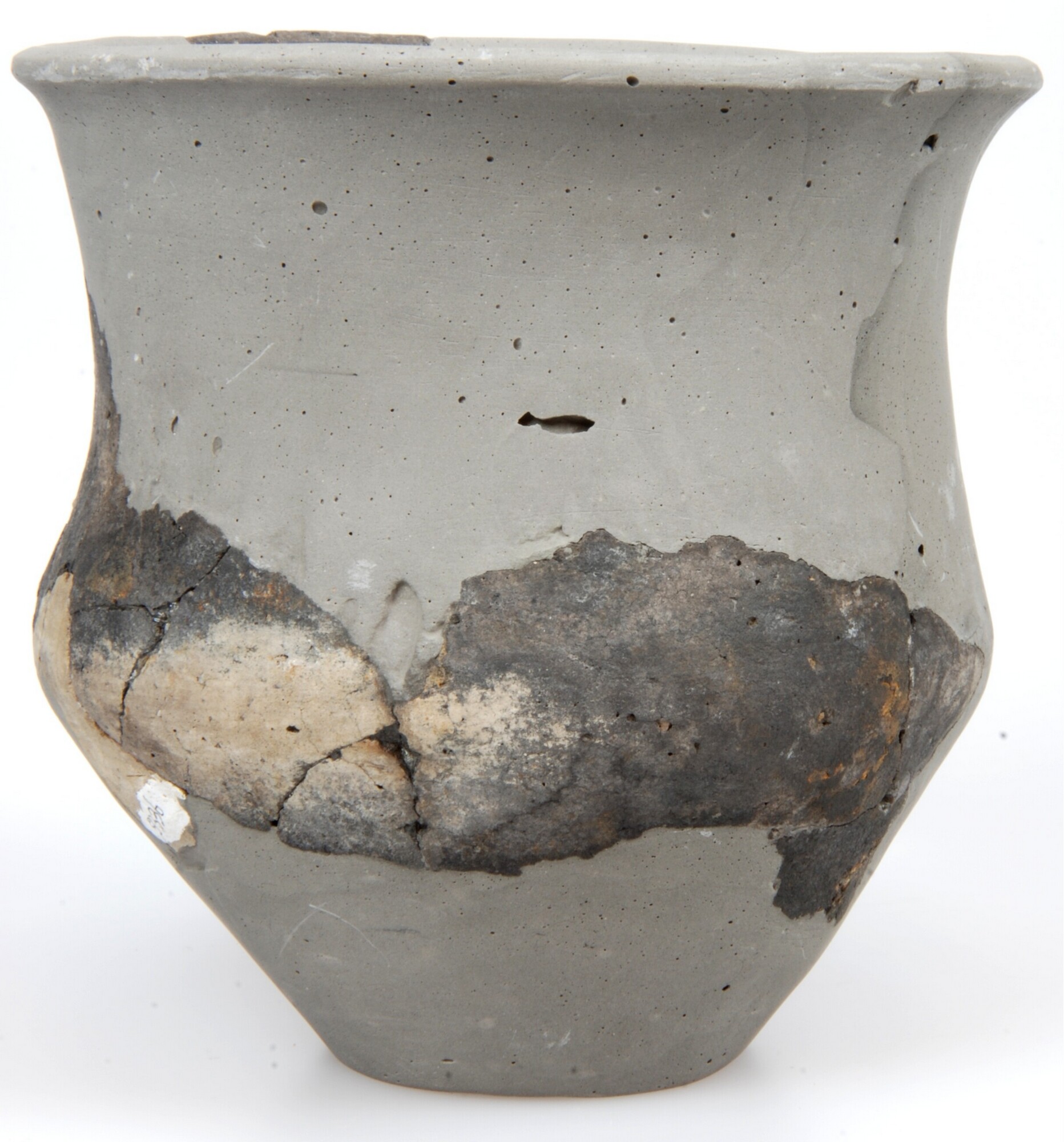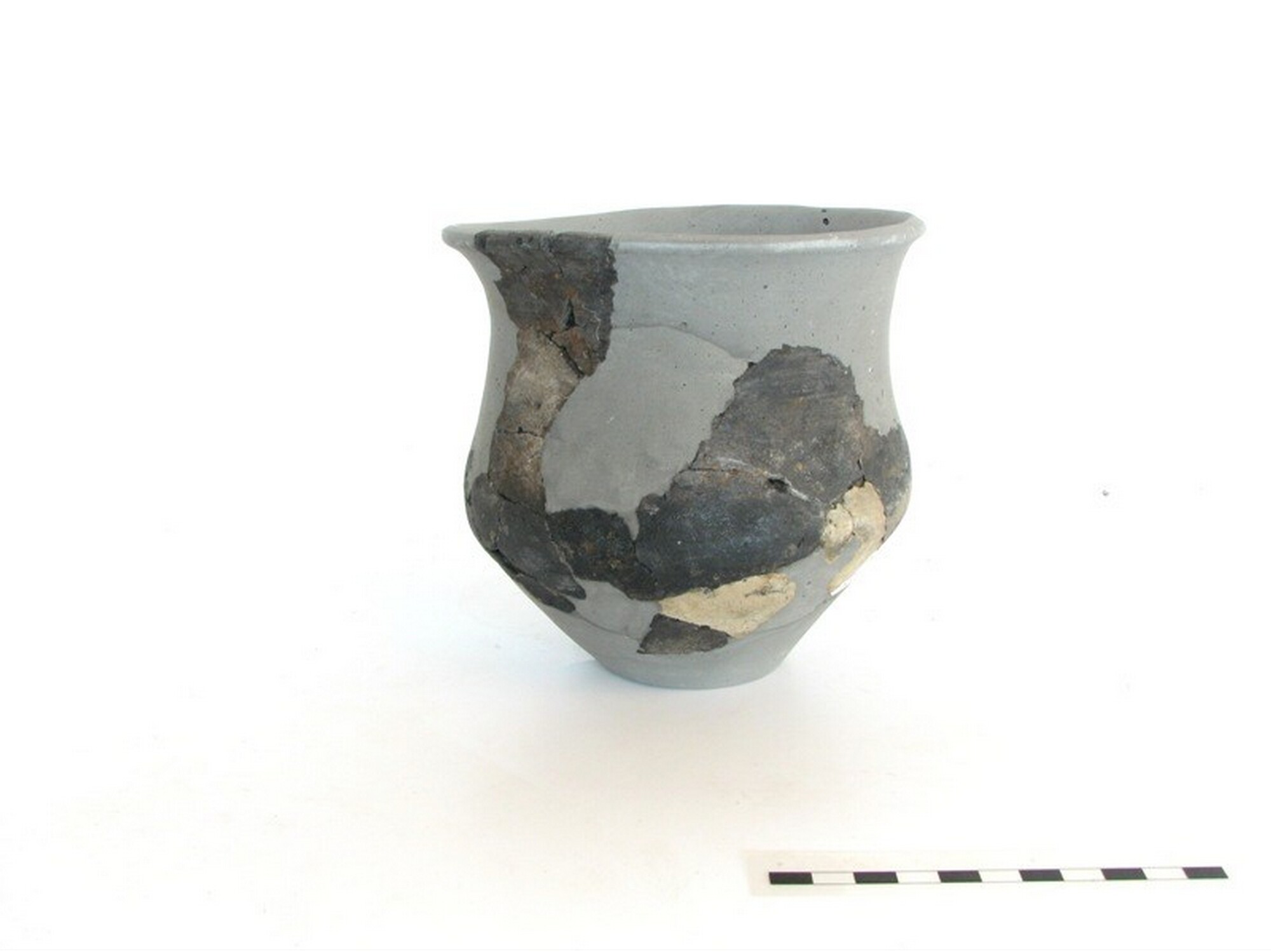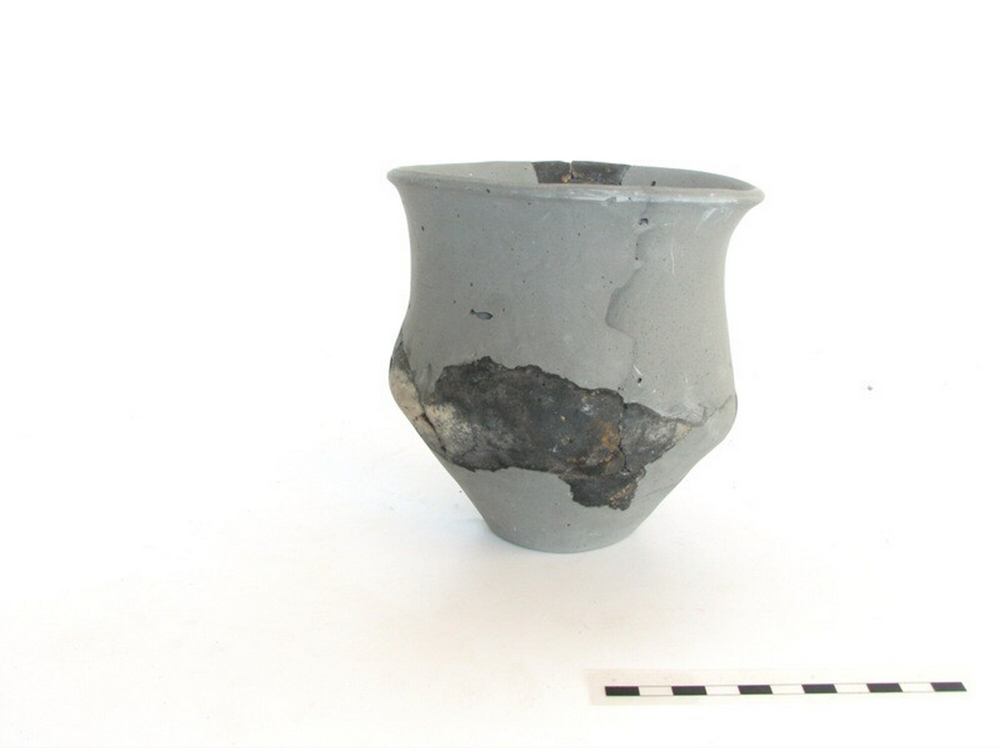 Enkelgrafbeker; lage, wijdmondig model met naar buiten staande rand; standvlak; ca. 75% aangevuld