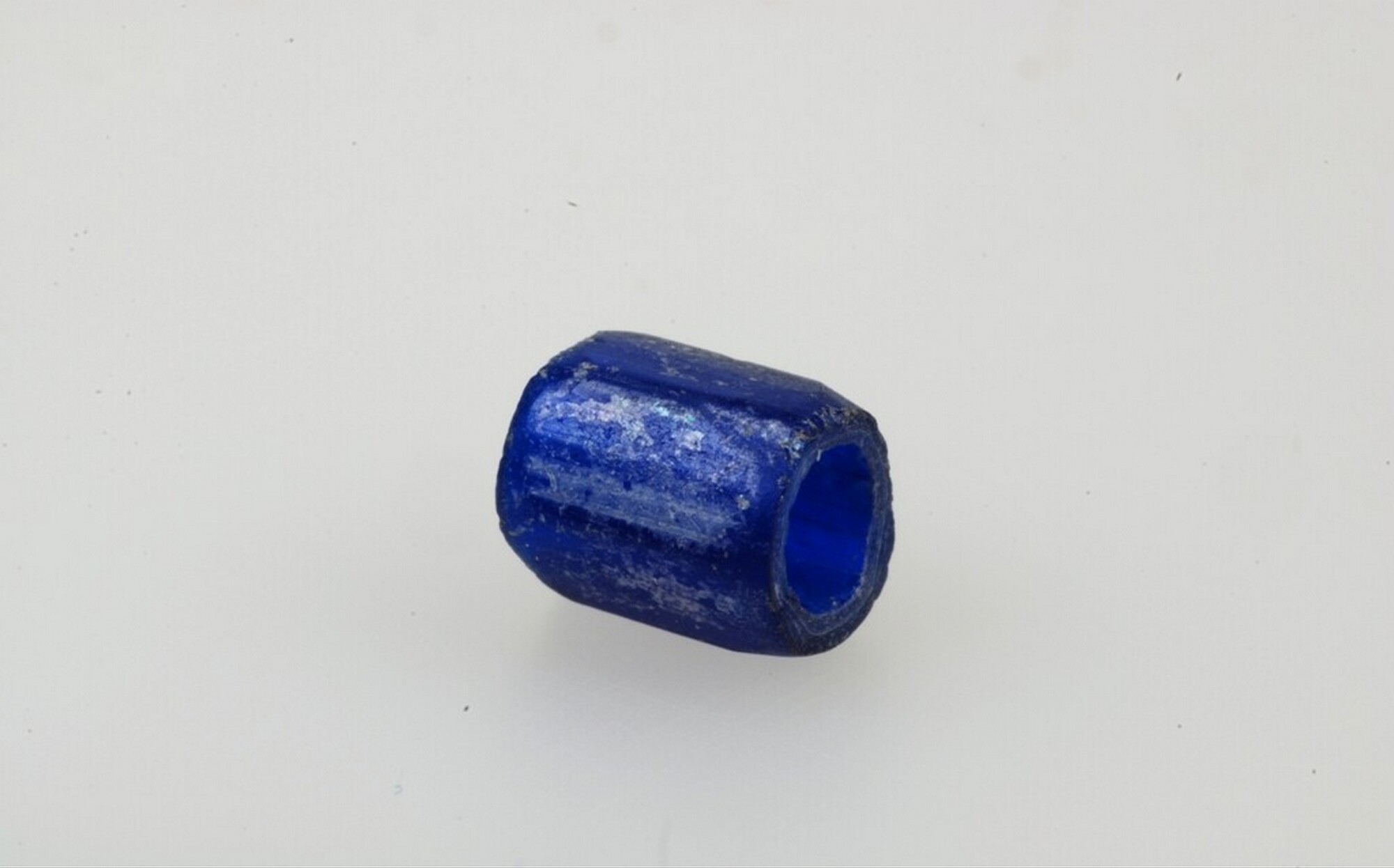 Kraal; kobaltblauw glas; pentagonaal met doorboring; herkomst: Bohemen of Beieren