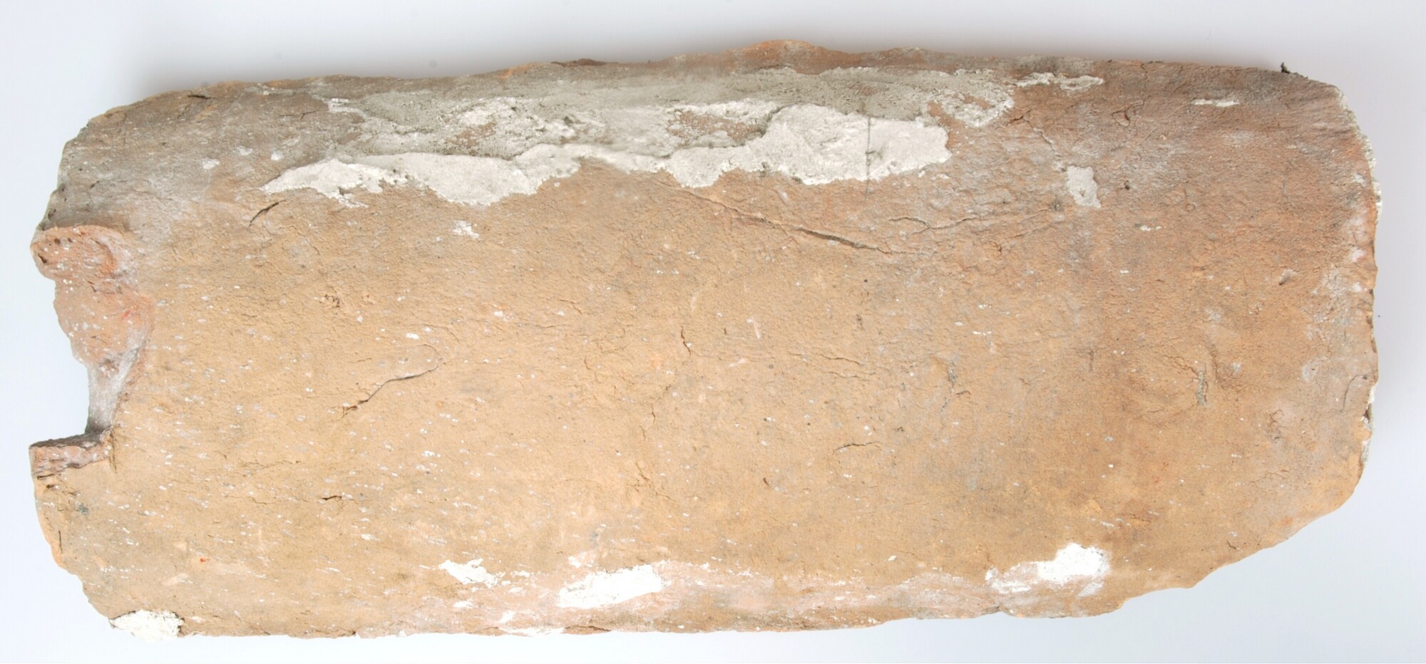 Dakpan; vorstpan/imbrex; roodbakkend ongeglazuurd; hol type met restanten mortel