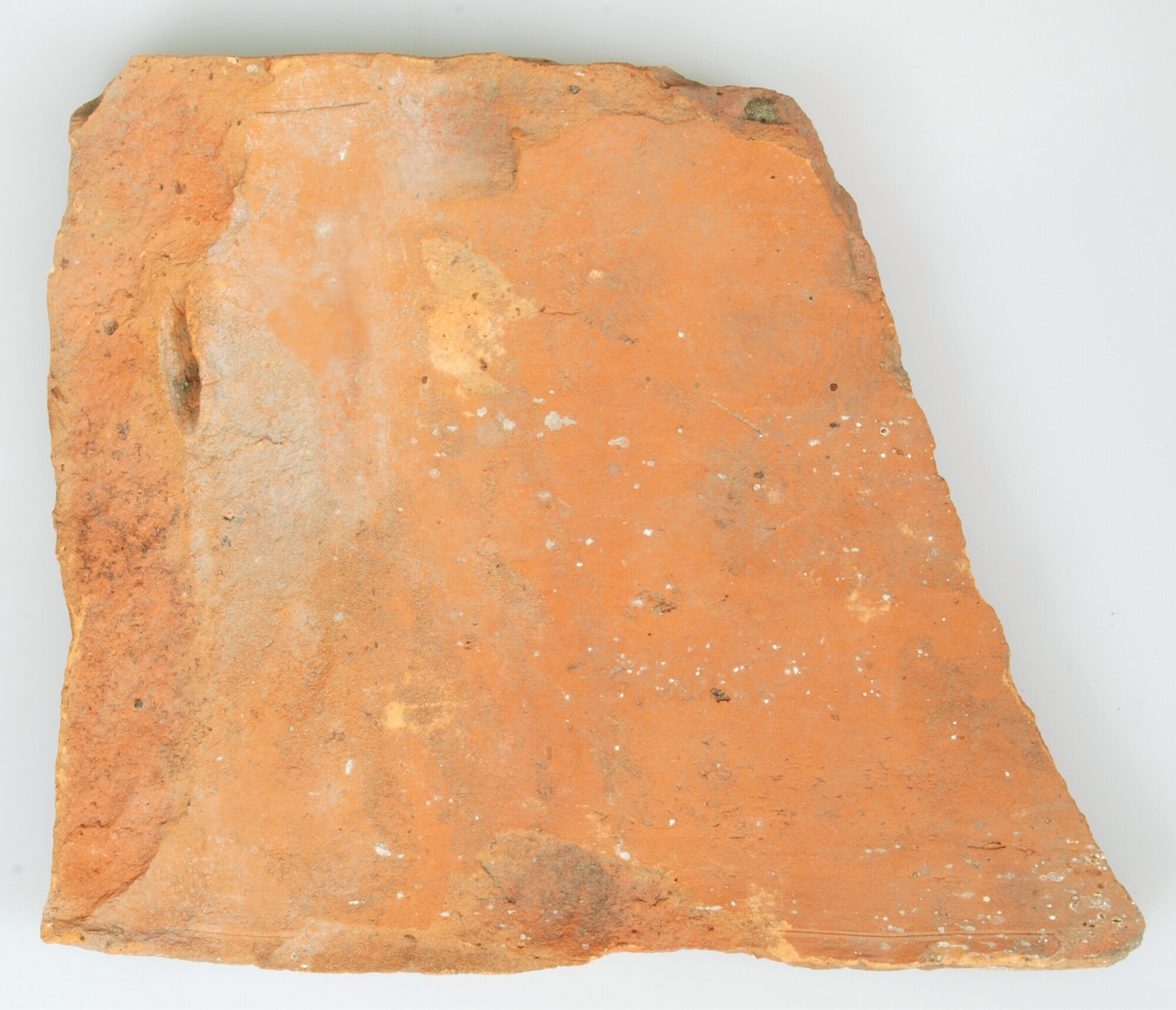 Daktegel; roodbakkend ongeglazuurd; rechthoekig fragment met mortelrestanten