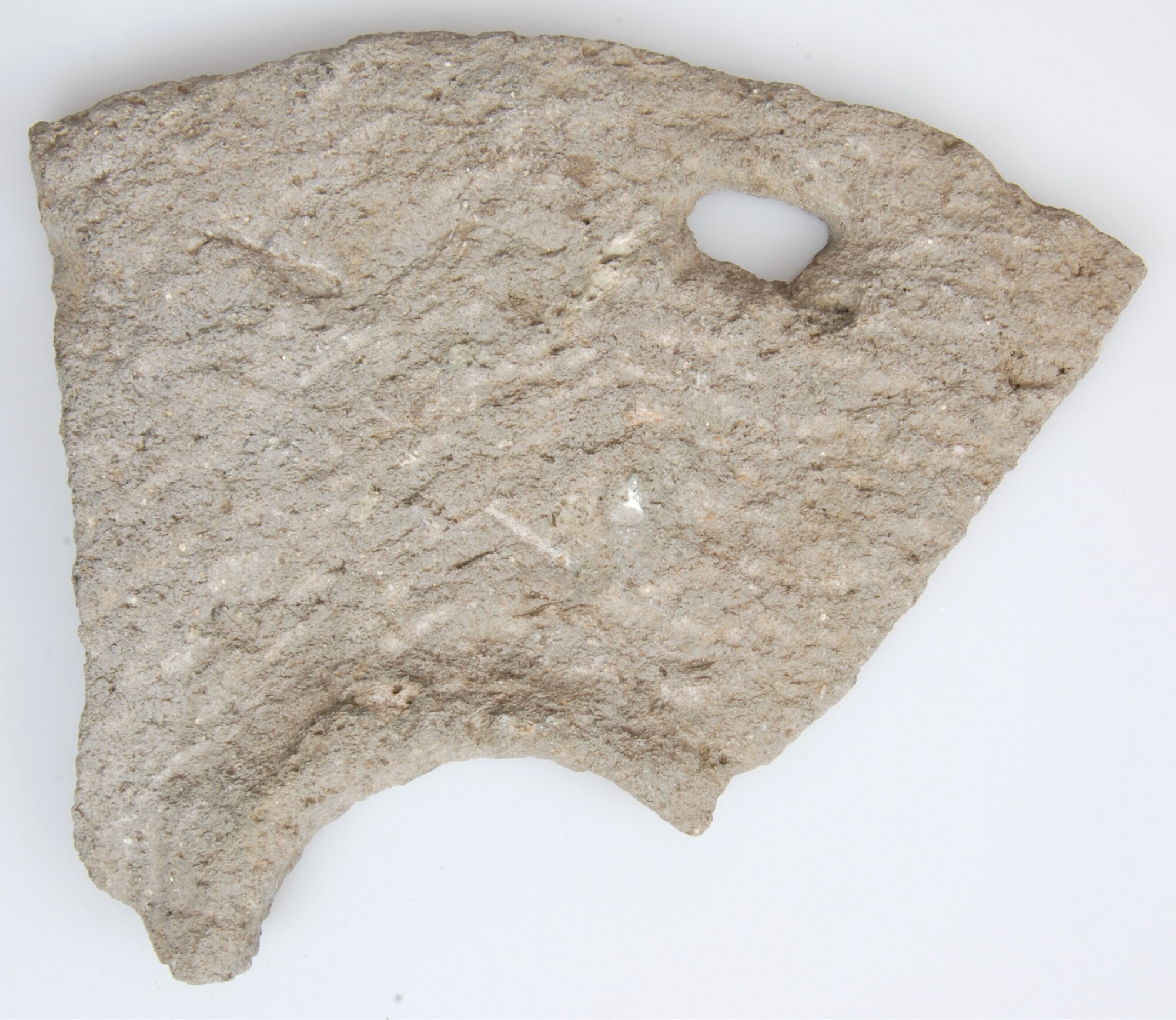 Maalsteen; fragment met centraal gat en vlak langs de rand bevindt zich een uitsparing