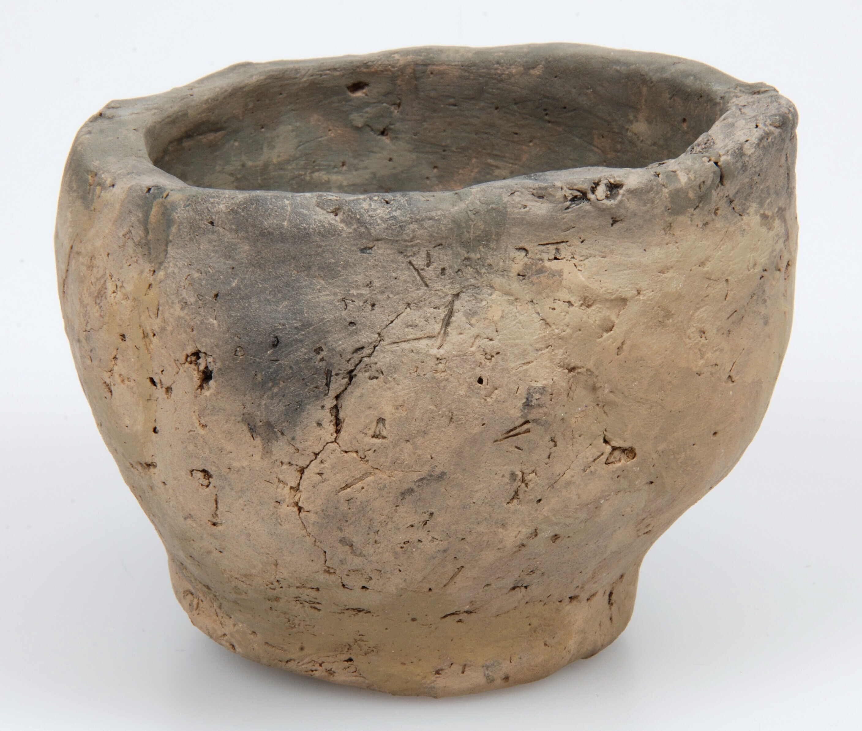 Kom; Diederik type X; inheems-Romeins aardewerk; handgevormd; kleine, ondiepe bak met standvlak; organische magering
