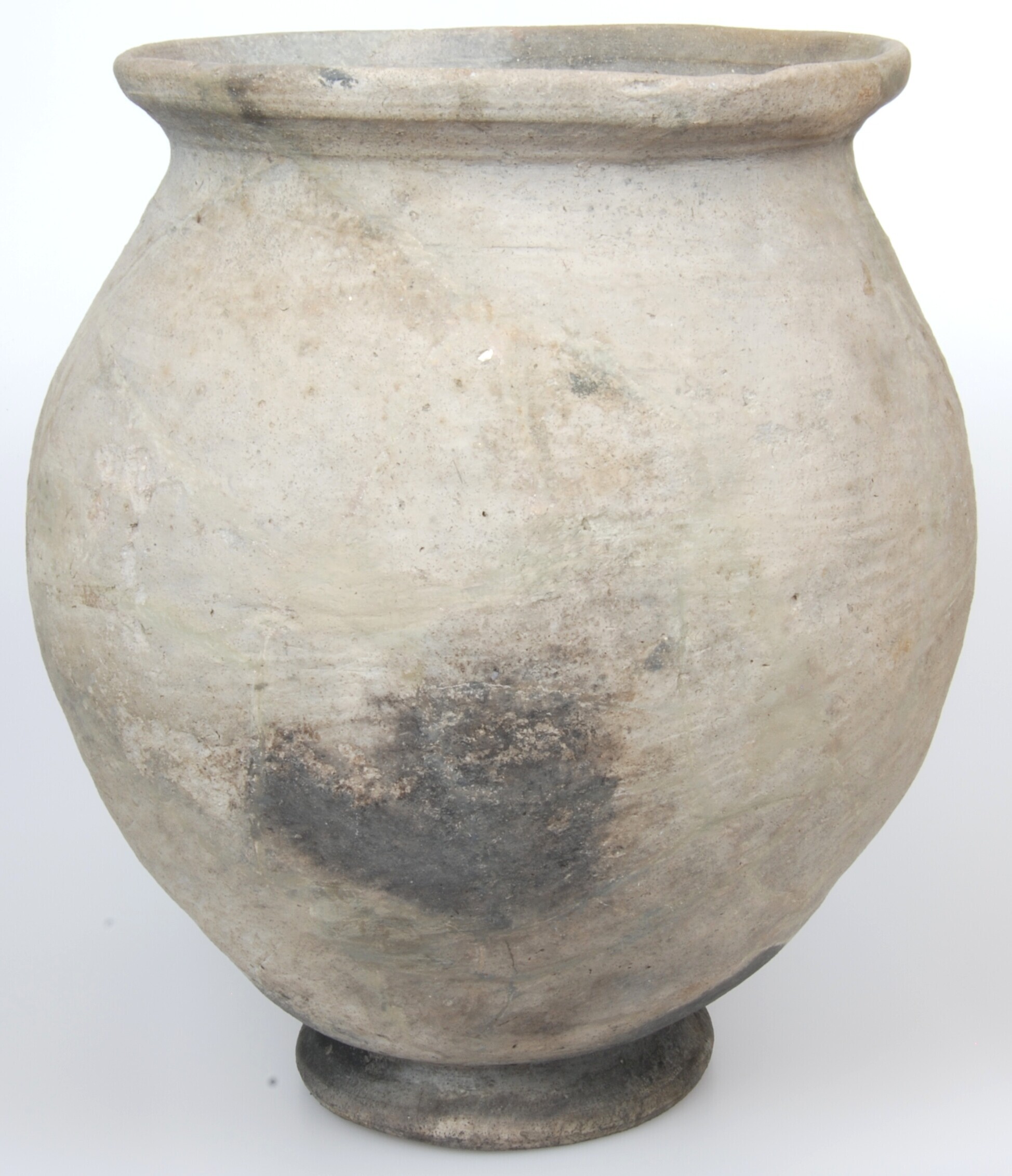 Pot; kp-pot-3; bolle pot met smalle kraagrand met dekselgeul, standring; kogelpotaardewerk; herkomst: Noord/West-Nederland