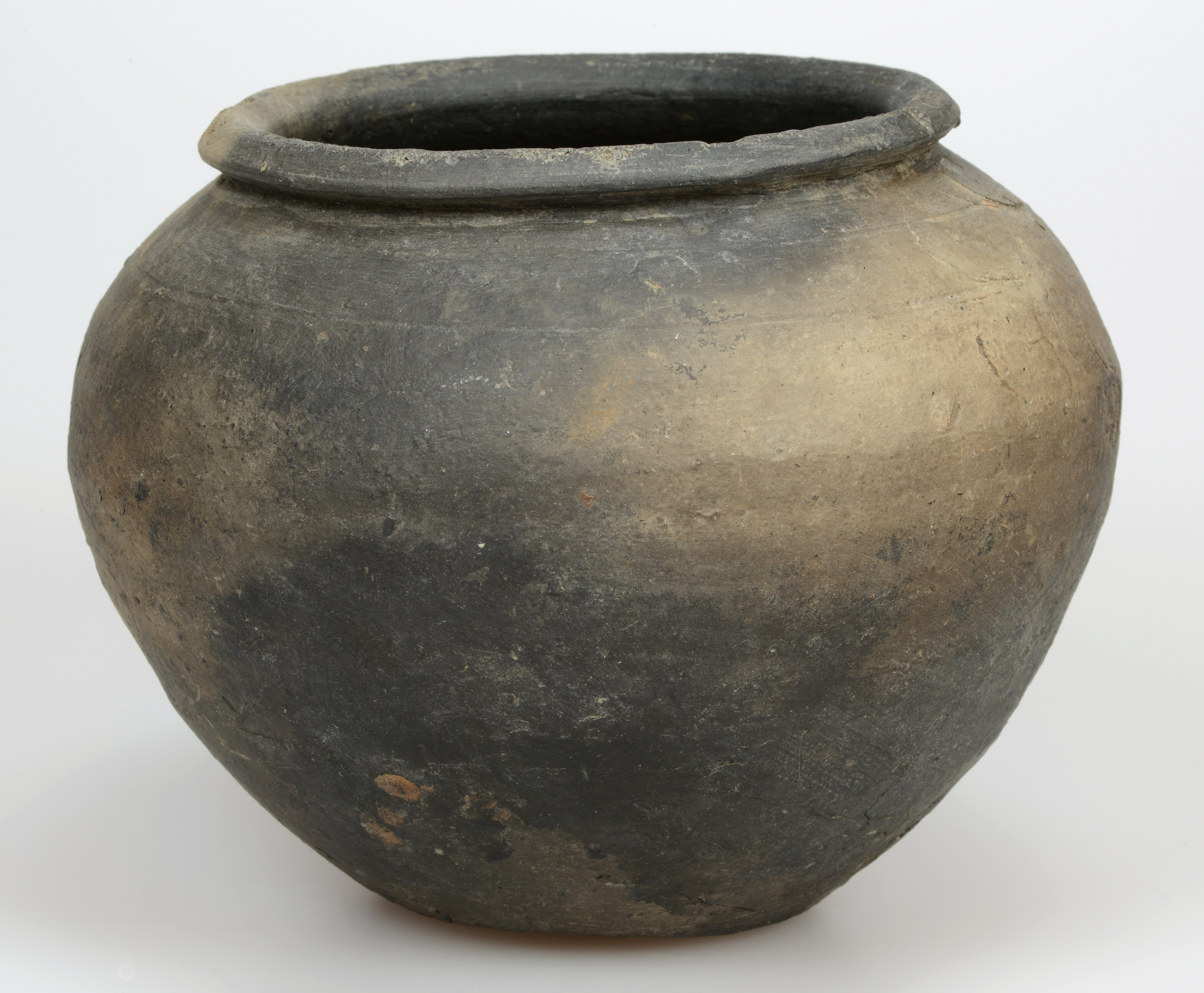 Bolpot; Type W-lll-D; bol met gedrongen rand en lensvormige bodem; Karolingisch draaischijf-aardewerk; herkomst: Mayen, Eifelgebied