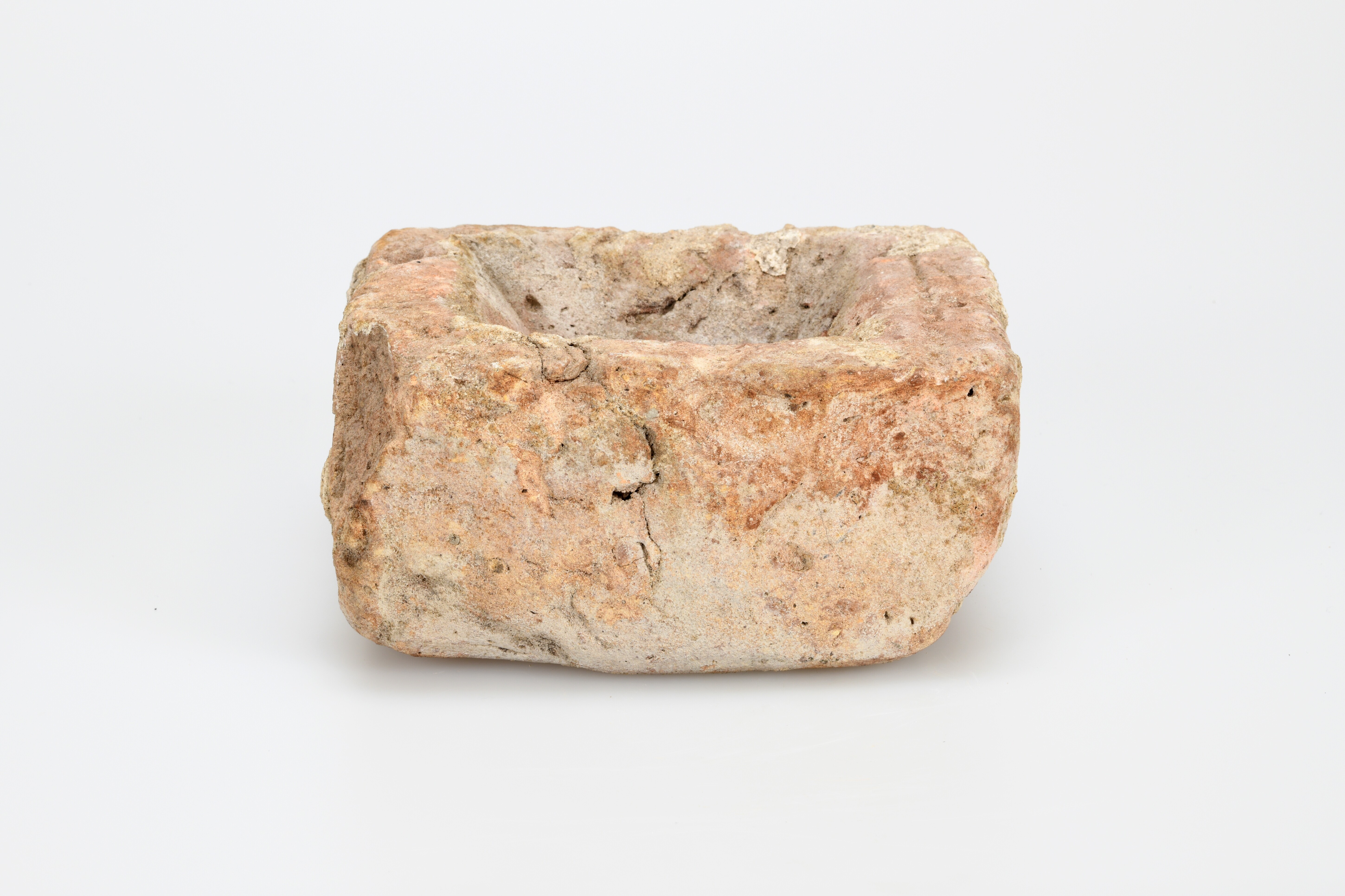 Baksteen met puntvormig gat; mortelresten