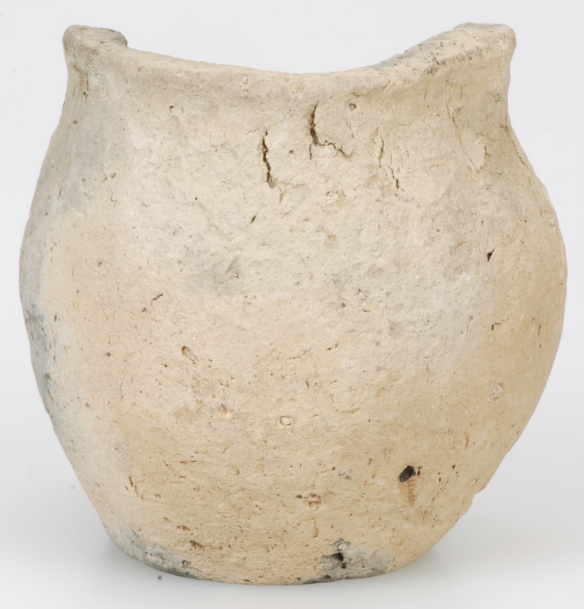 Pot; kleine bolle pot met korte rechte hals; standvlak; fijne magering; vondstjaar:1978