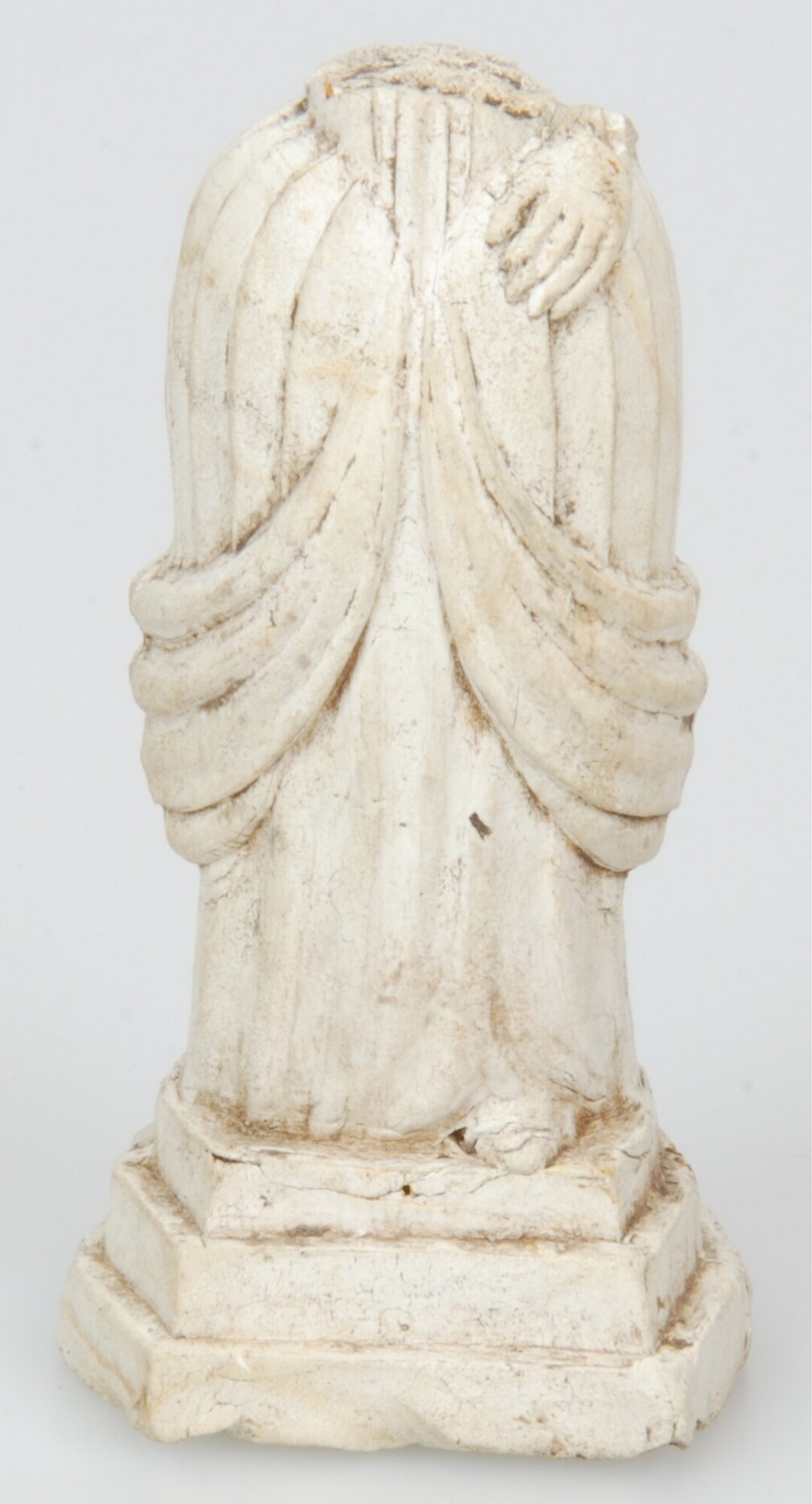 Pijpaarden beeld; vrouw in jurk (onderzijde)