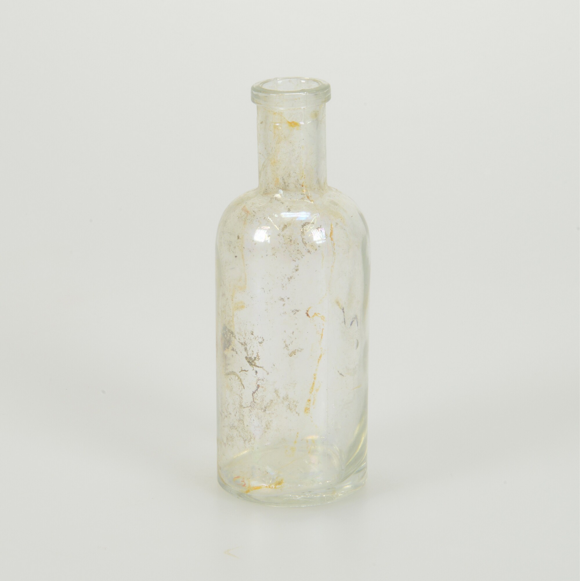 Fles; gl-fle-; glas; kleurloos; standvlak; contactvorm, nr.: 100; herkomst: Nederland?