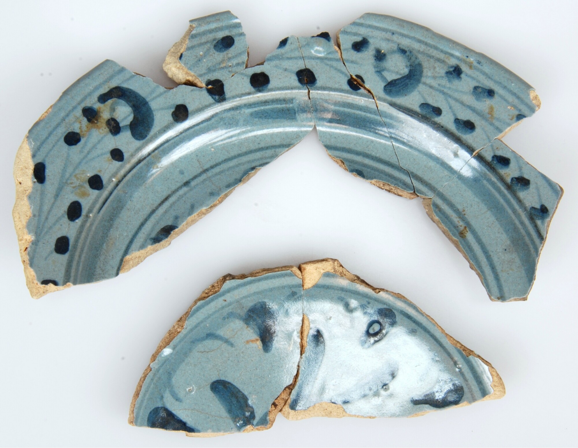 Bord; i-bor-1; italiaans faience; tinglazuur; blauw: Berrettino bord met Ligurgisch randje en rozet op de spiegel; herkomst: Italie