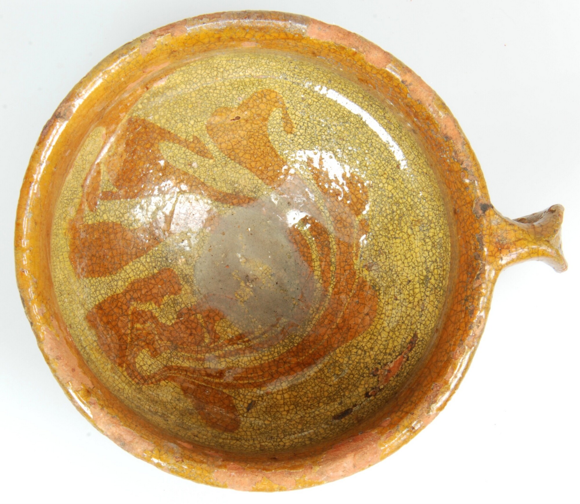 Kop; r-kop-4; roodbakkend; loodglazuur; inwendig gemarmerd, uitwendig ringeloor; standring; één lintoor