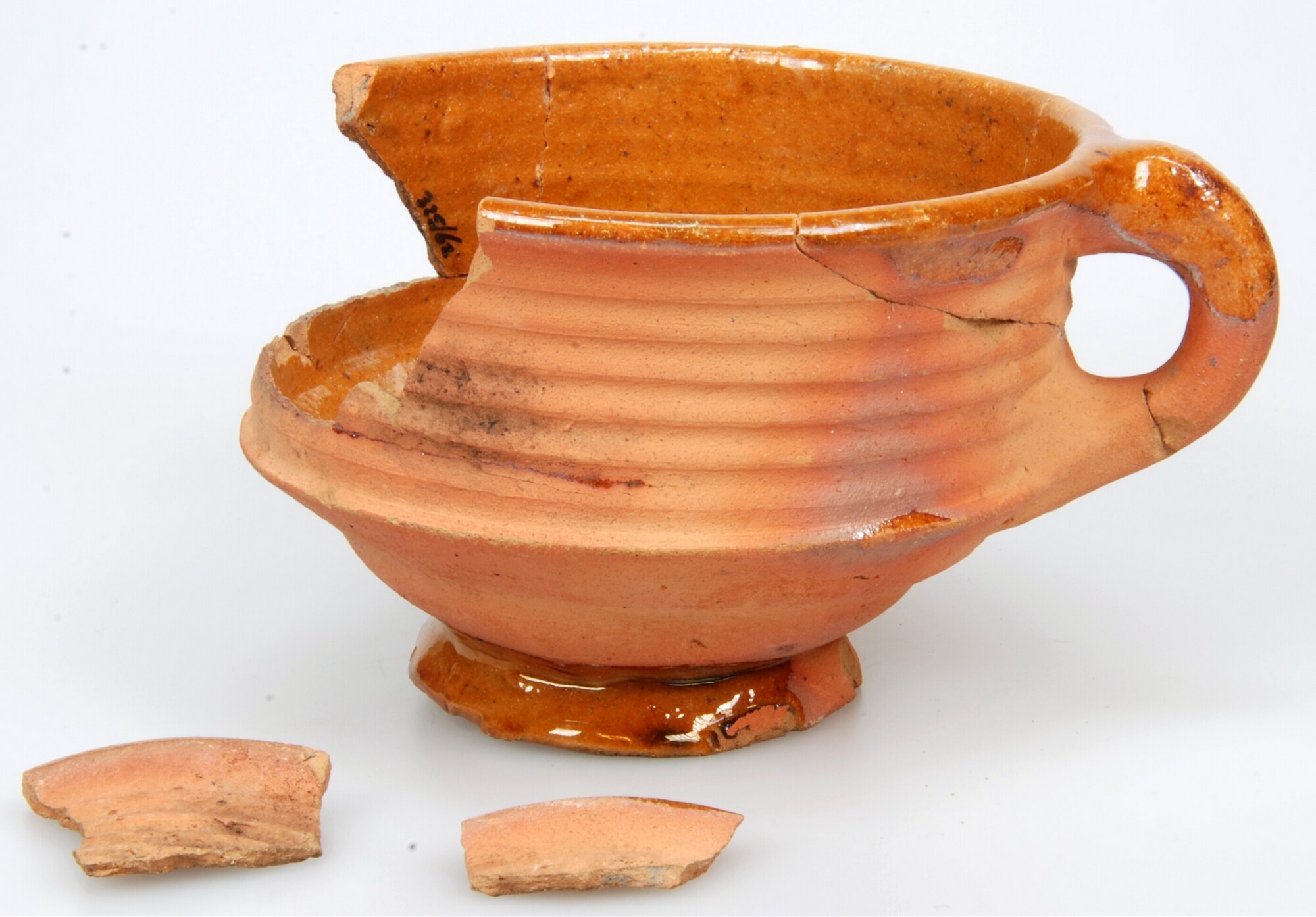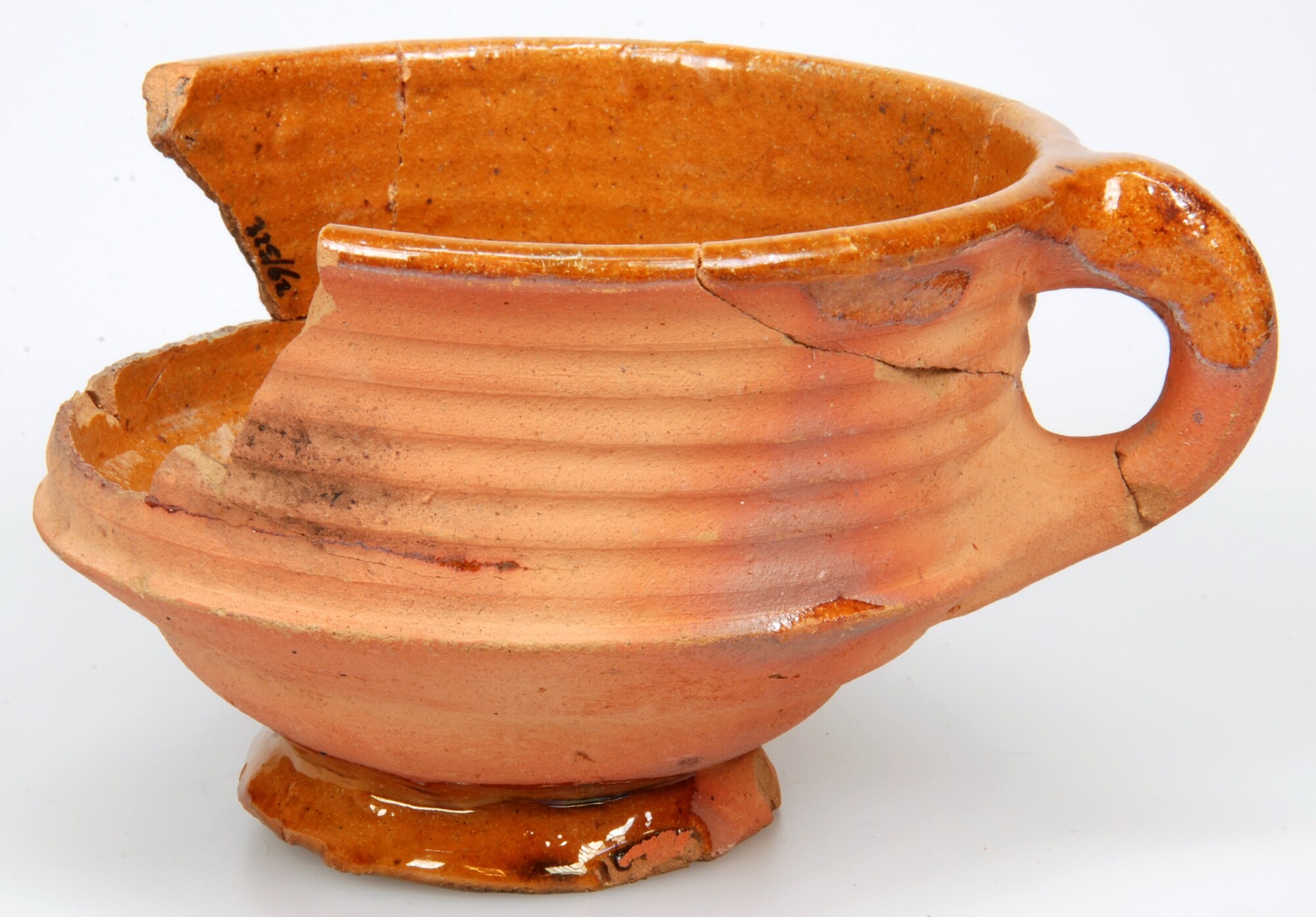 Kop; r-kop-2; roodbakkend; loodglazuur; kop met scherpe knik bodem-wand en iets uitgebogen rand; verticaal worstoor; standring; datum: 1-9-11