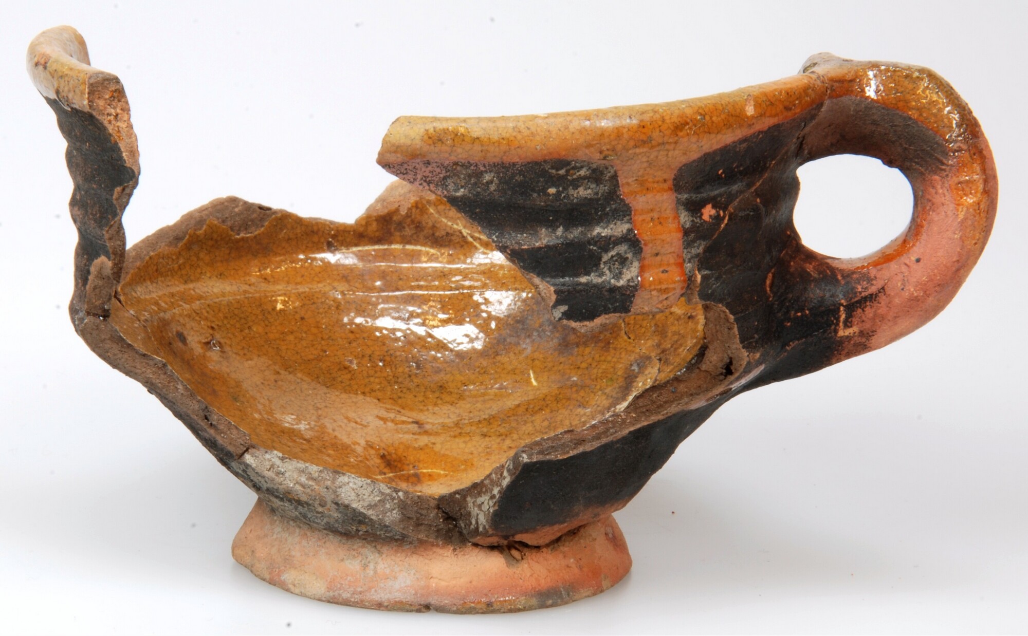 Kop; r-kop-2; roodbakkend; loodglazuur; kop met scherpe knik bodem-wand en iets uitgebogen rand; verticaal worstoor; standring