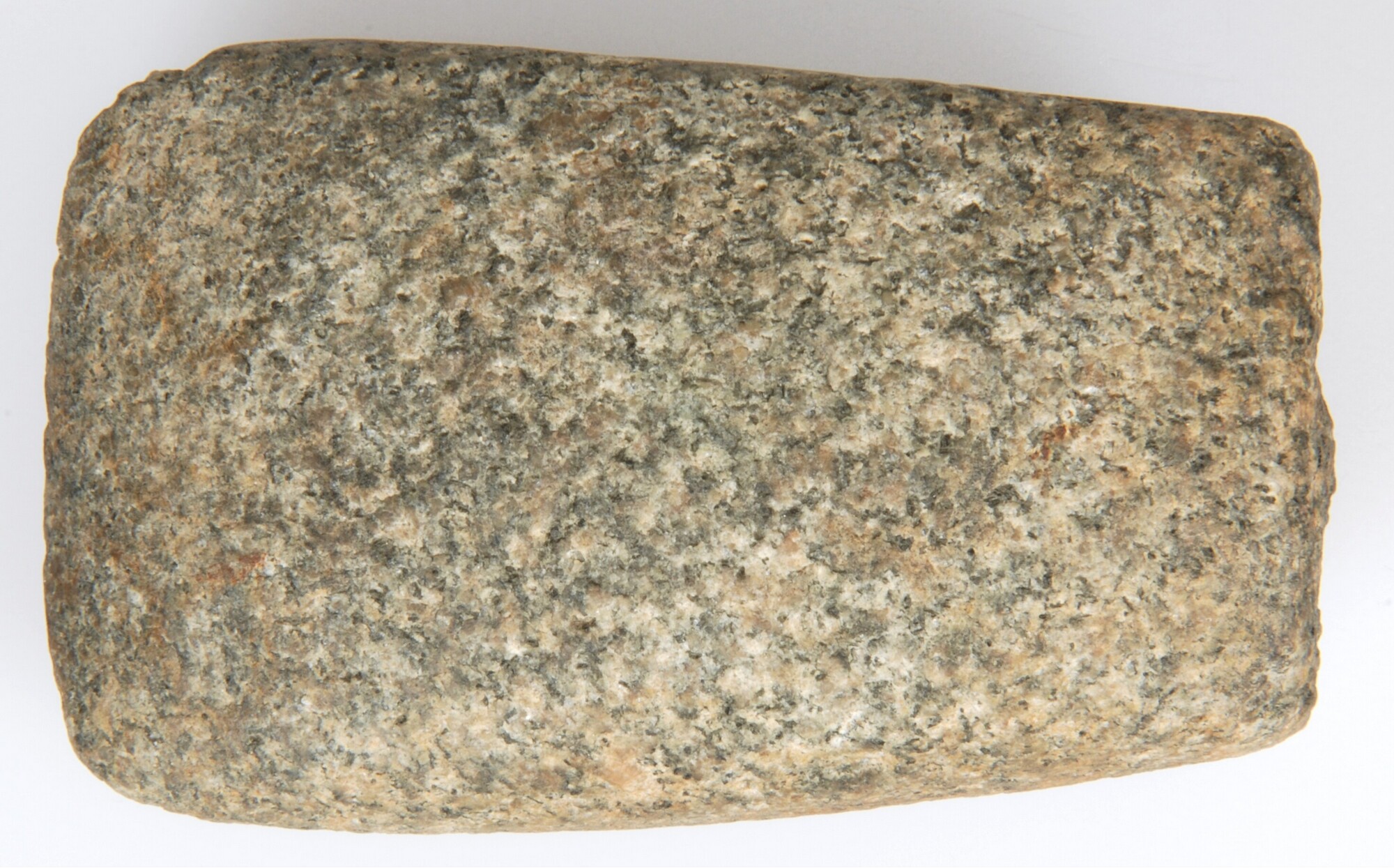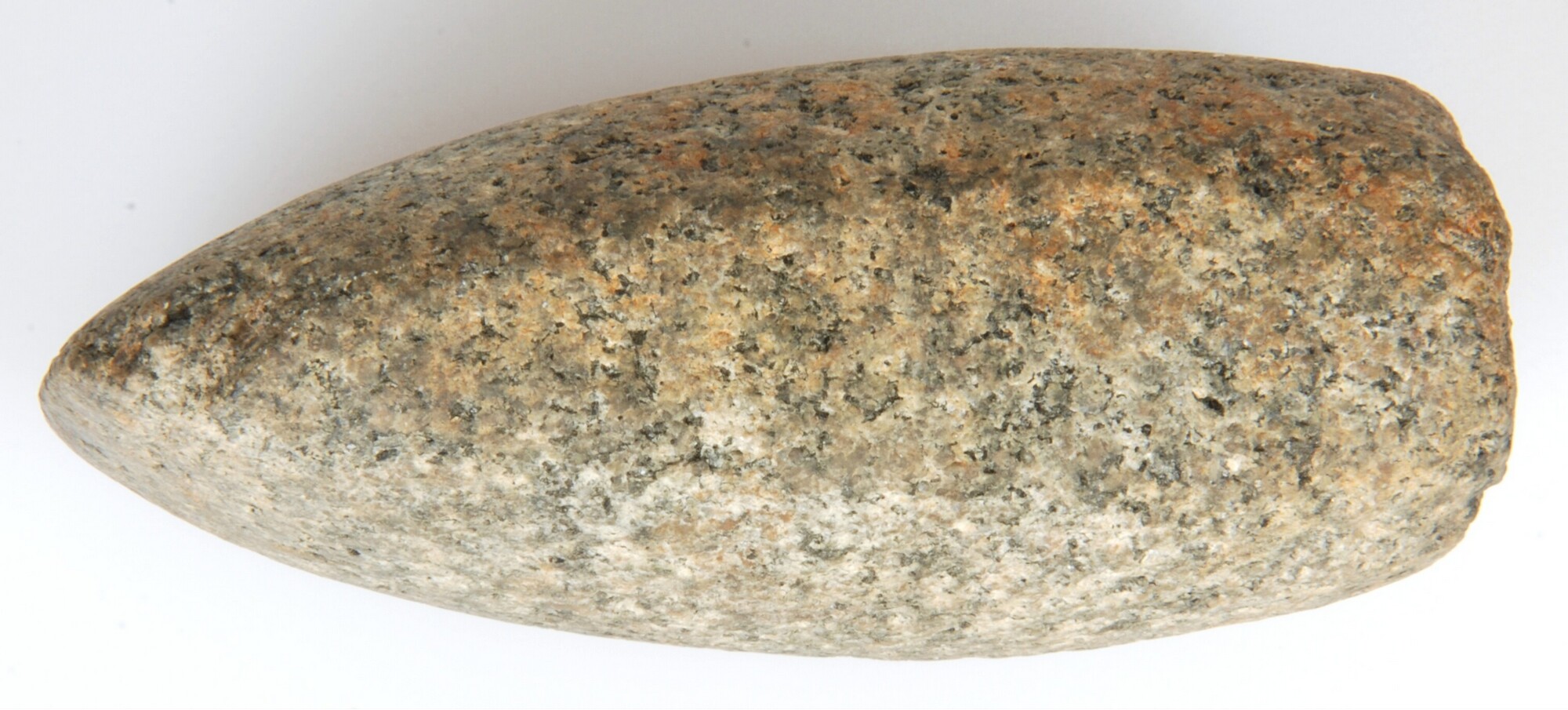 Bijl; type Fels-Rechteckbeil; graniet; één zijde is afgerond hoekig, de andere zijde is geheel rond; de snede is niet scherp; vondstomstandigheden: Wieringermeer, kavel H 42