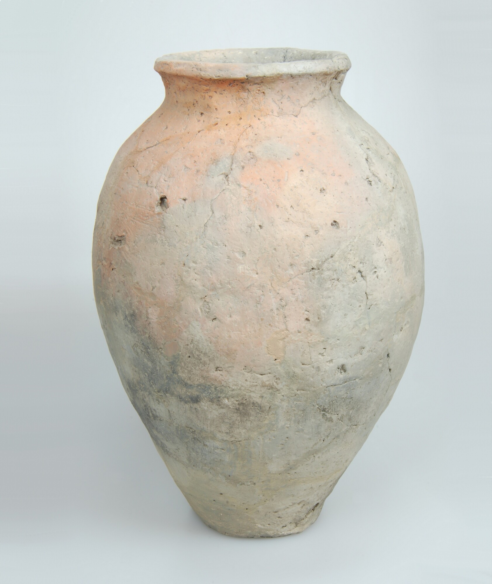 Pot; type Diederik F-III; inheems-romeins aardewerk; nauwmondige pot; geglad oppervlak; schouderknik; standvlak; organische magering