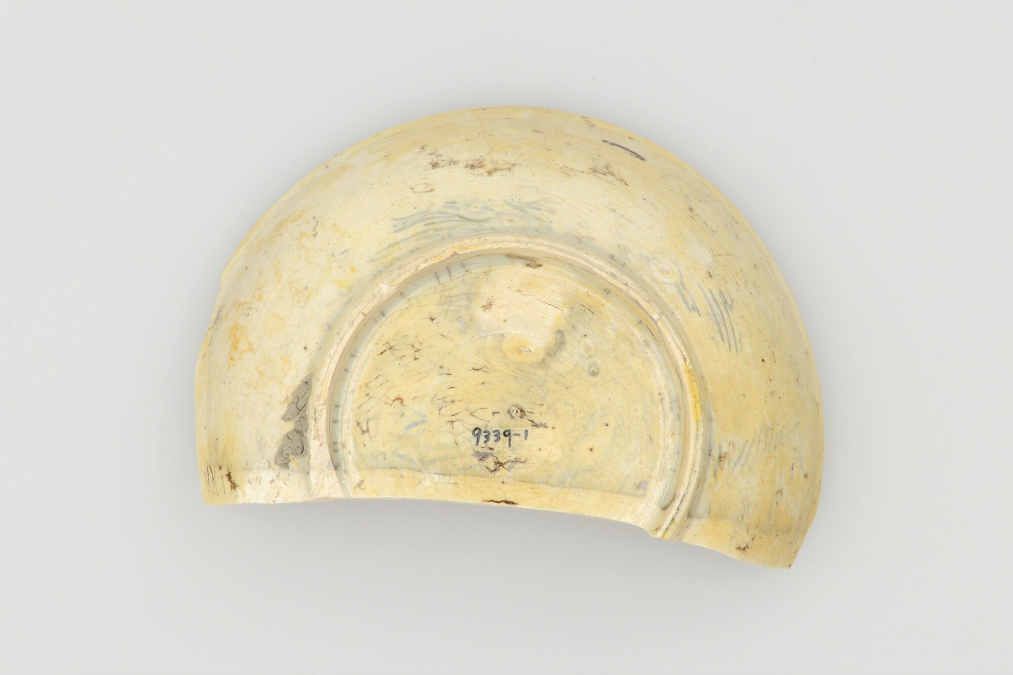 Bord; iw-bor-3; bord met rechte rand; industrieel wit; loodglazuur; polychrome handbeschildering, sterrand en rozet; standring; herkomst: Engeland