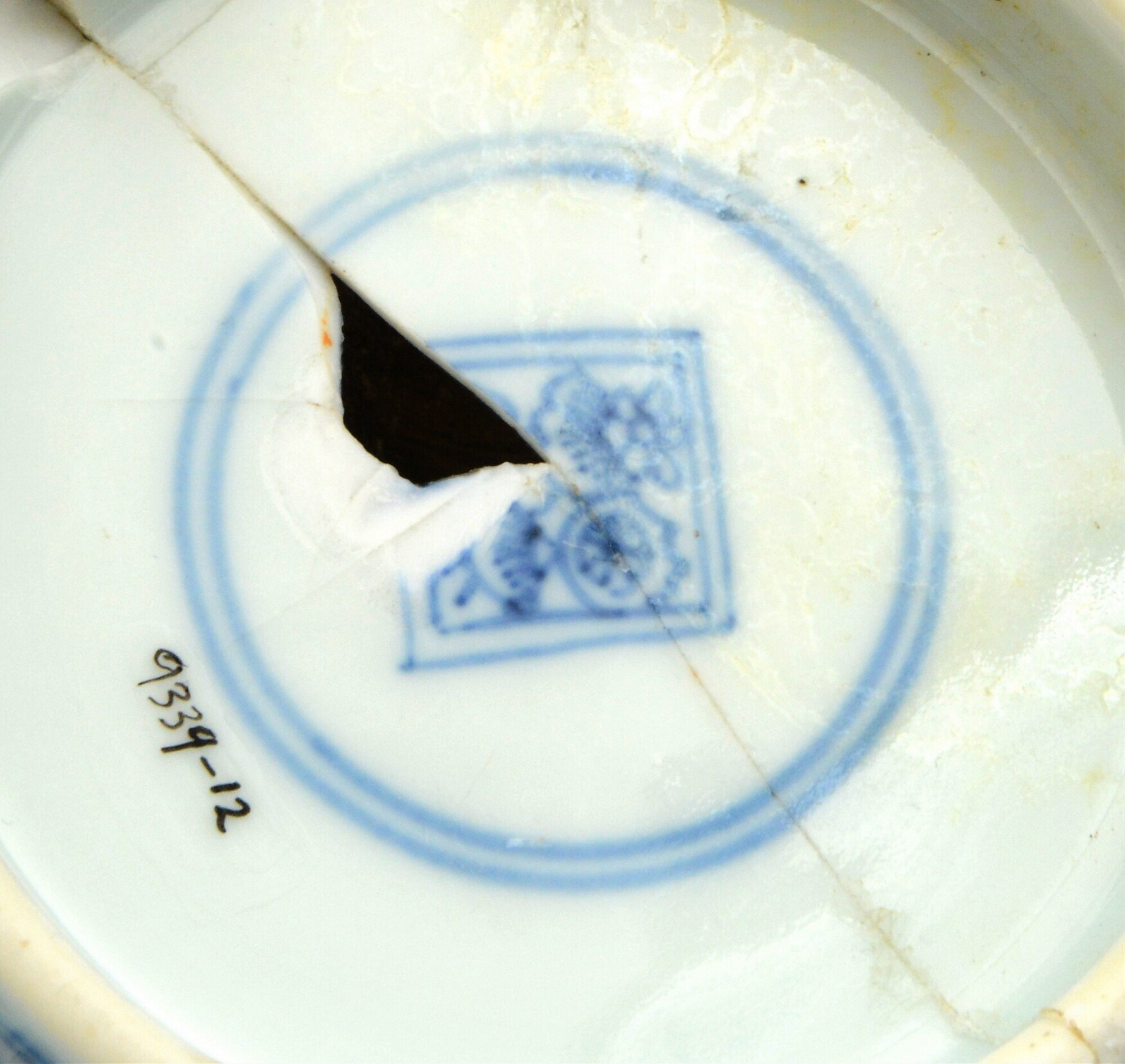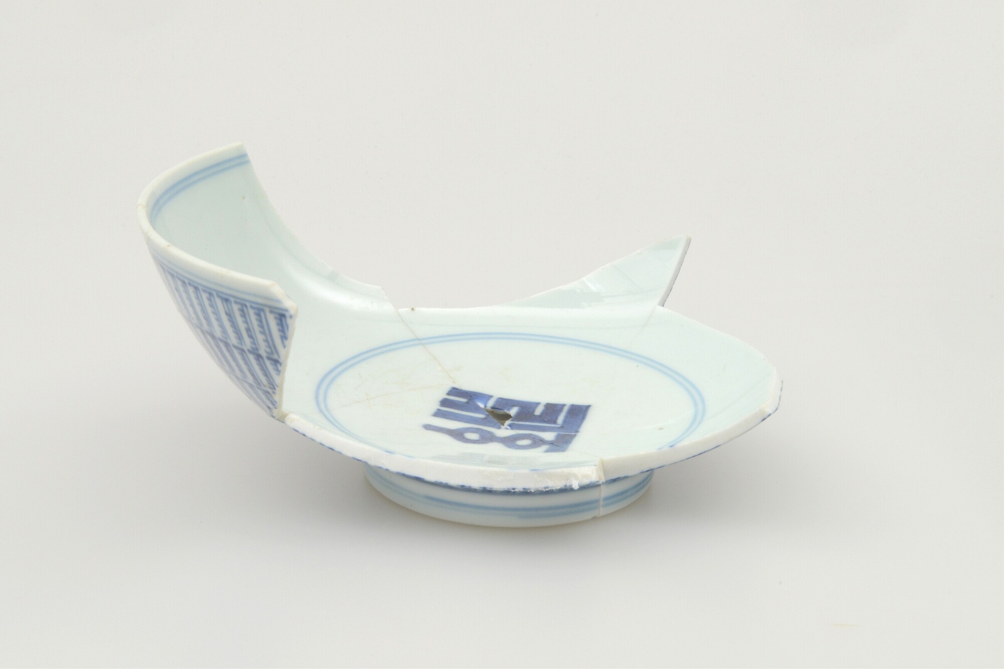 Kom; p-kom-8; kom met rechte rand; Aziatisch porselein; veldspaatglazuur; blauwe beschildering, uitwendig kamdecor, inwendig karaktermerk; standring; merk op bodem; herkomst: China