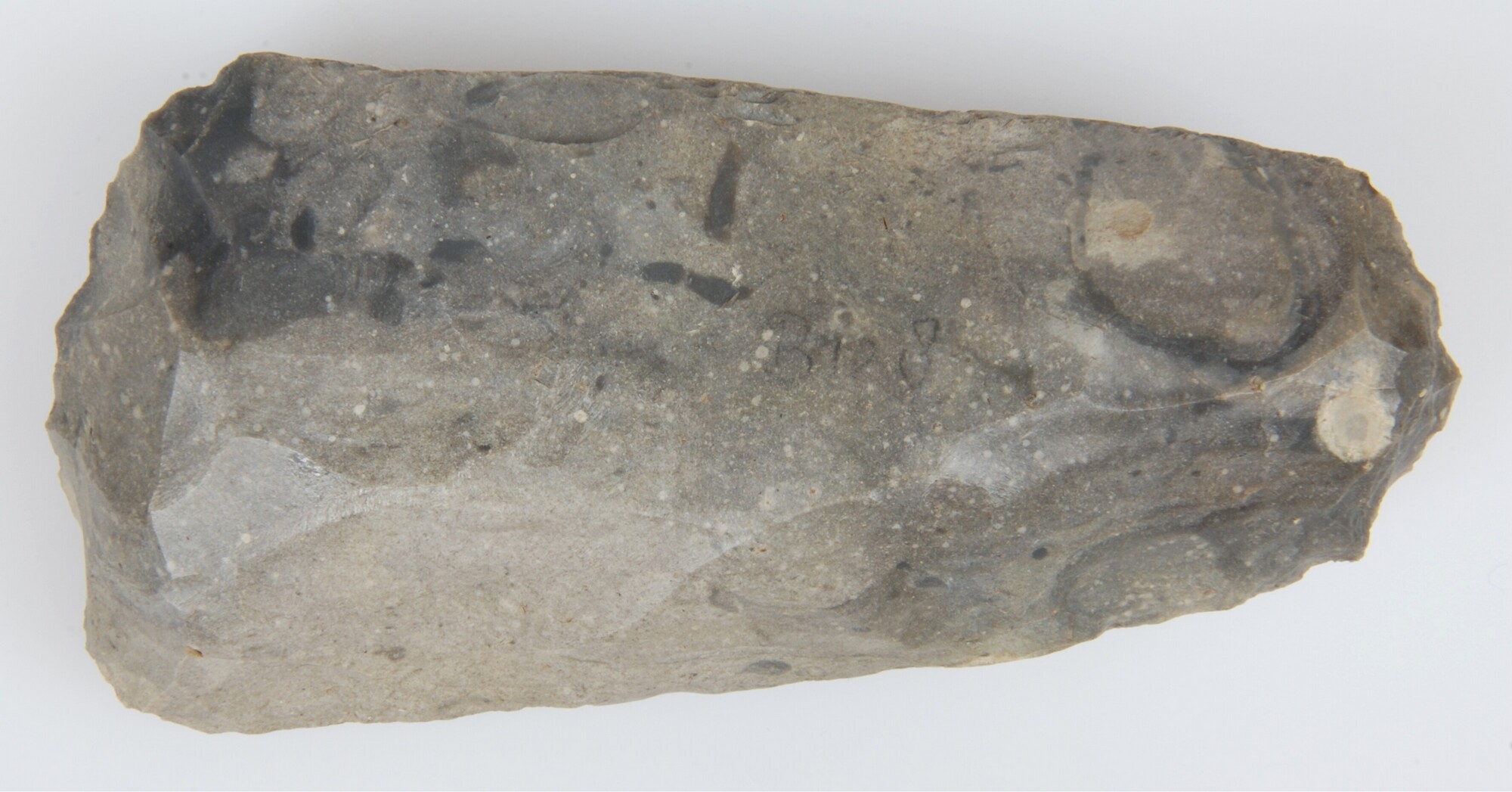 Bijl; flint-Ovalbeil; halffabrikaat, niet geslepen; herkomst: Rijckholt, Zuid-Limburg
