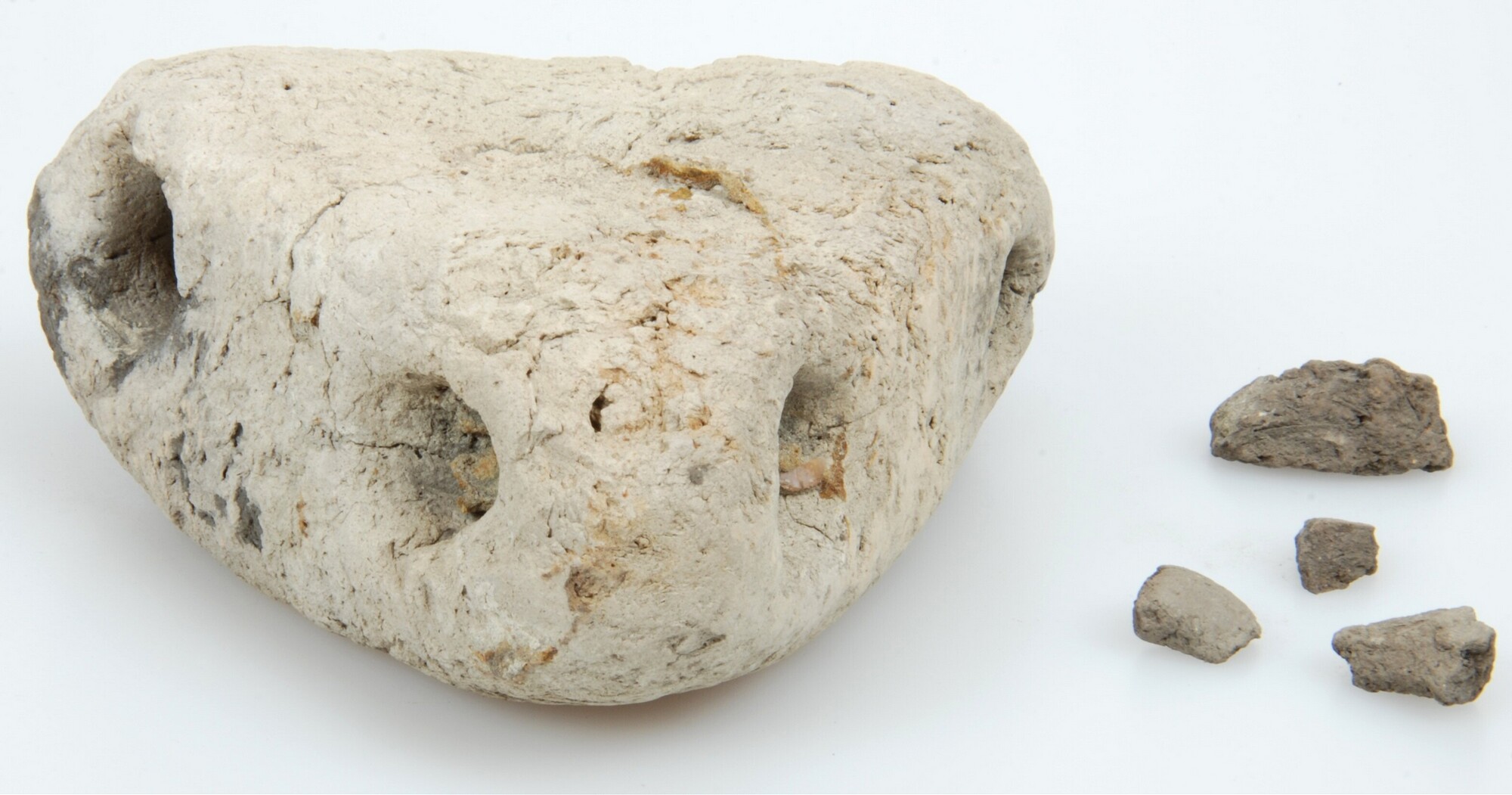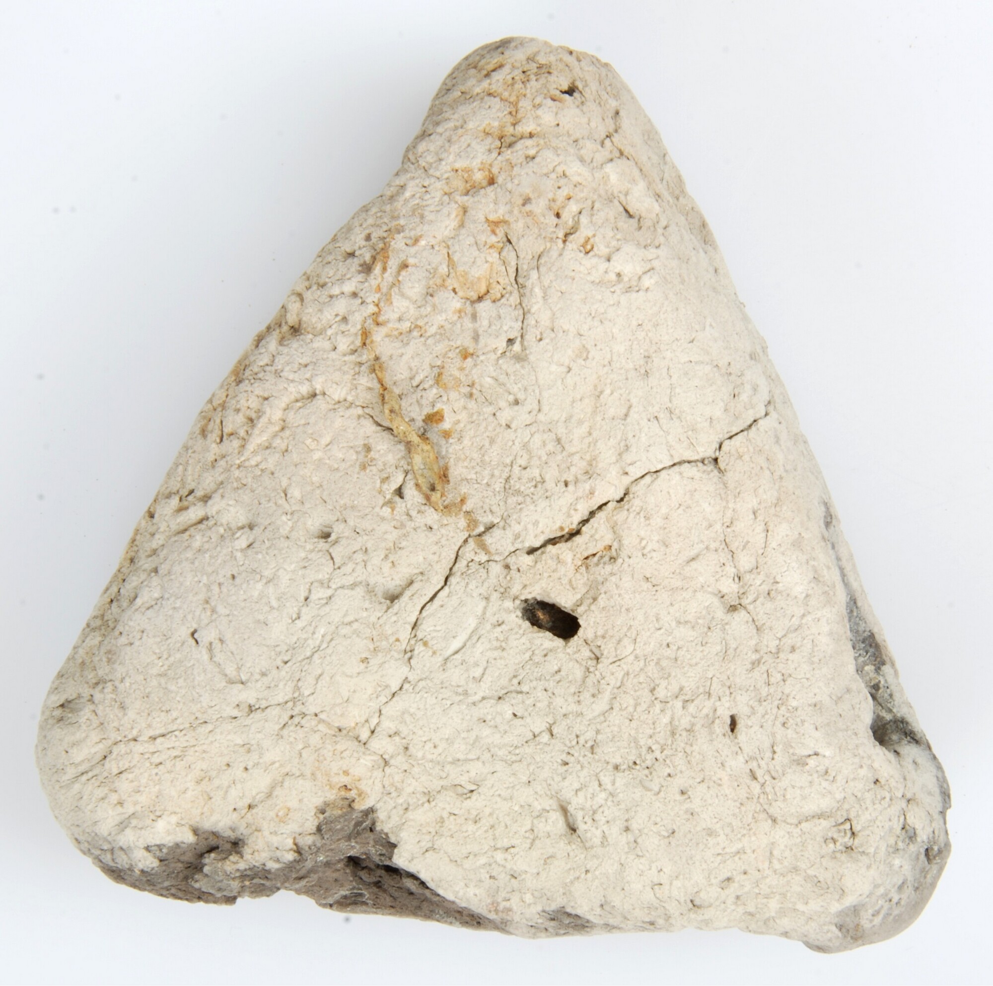 Netverzwaarder; driehoekig met in iedere hoek een ronde doorboring