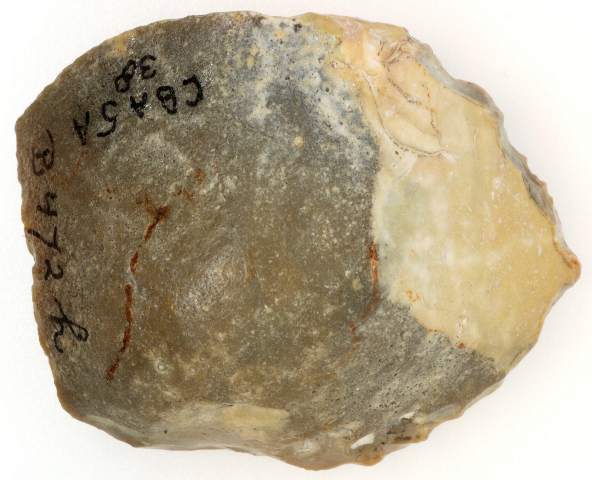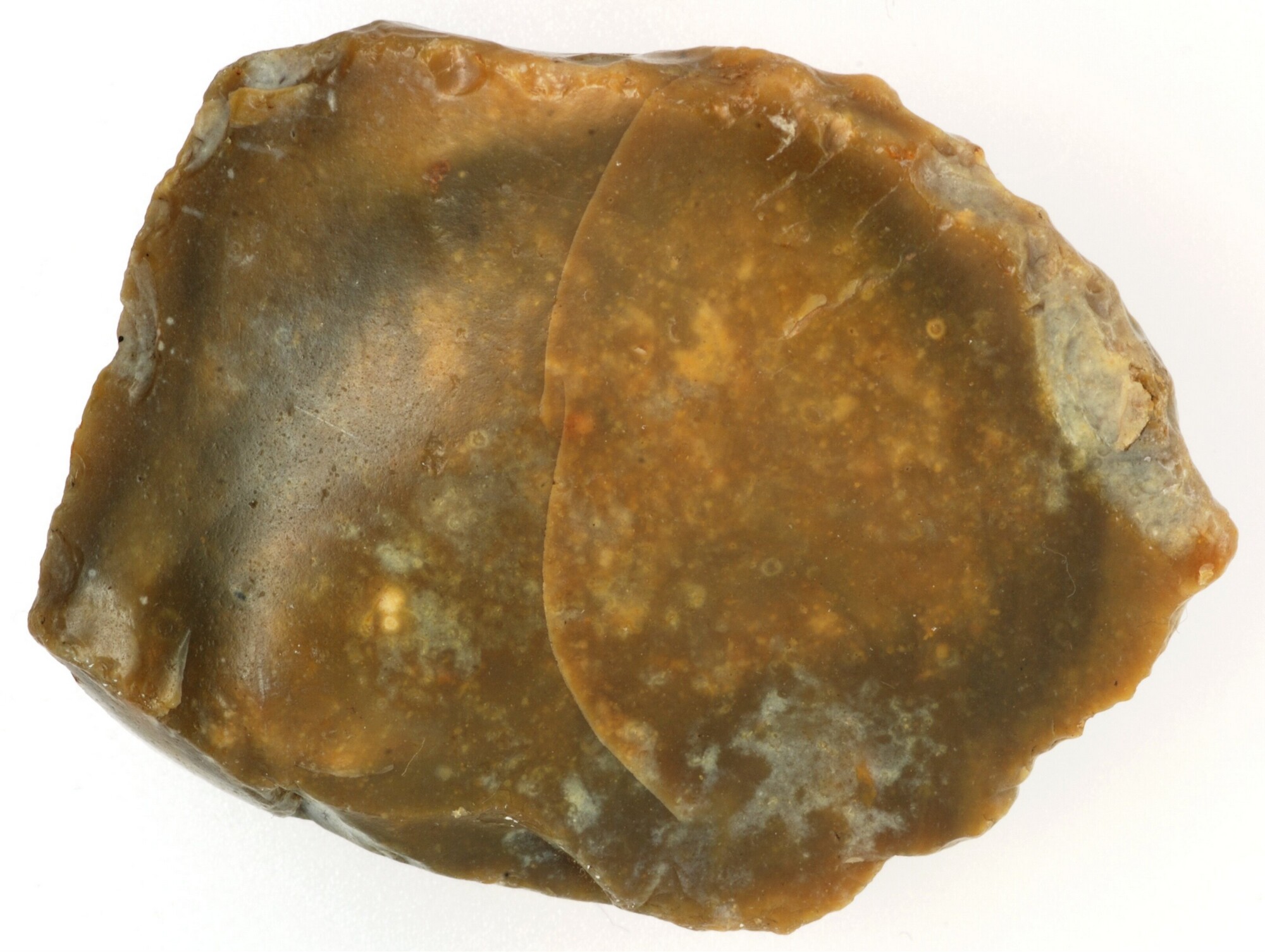 Afslag (of pseudo artefact); geretoucheerd; dorsale negatieven langs distaal einde