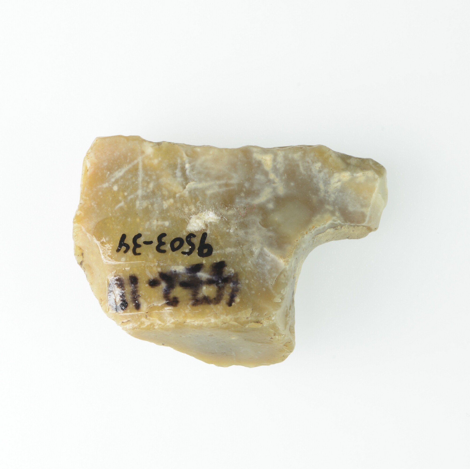 Afslag? bewerkt fragment; bruin vuursteen; cortex aanwezig