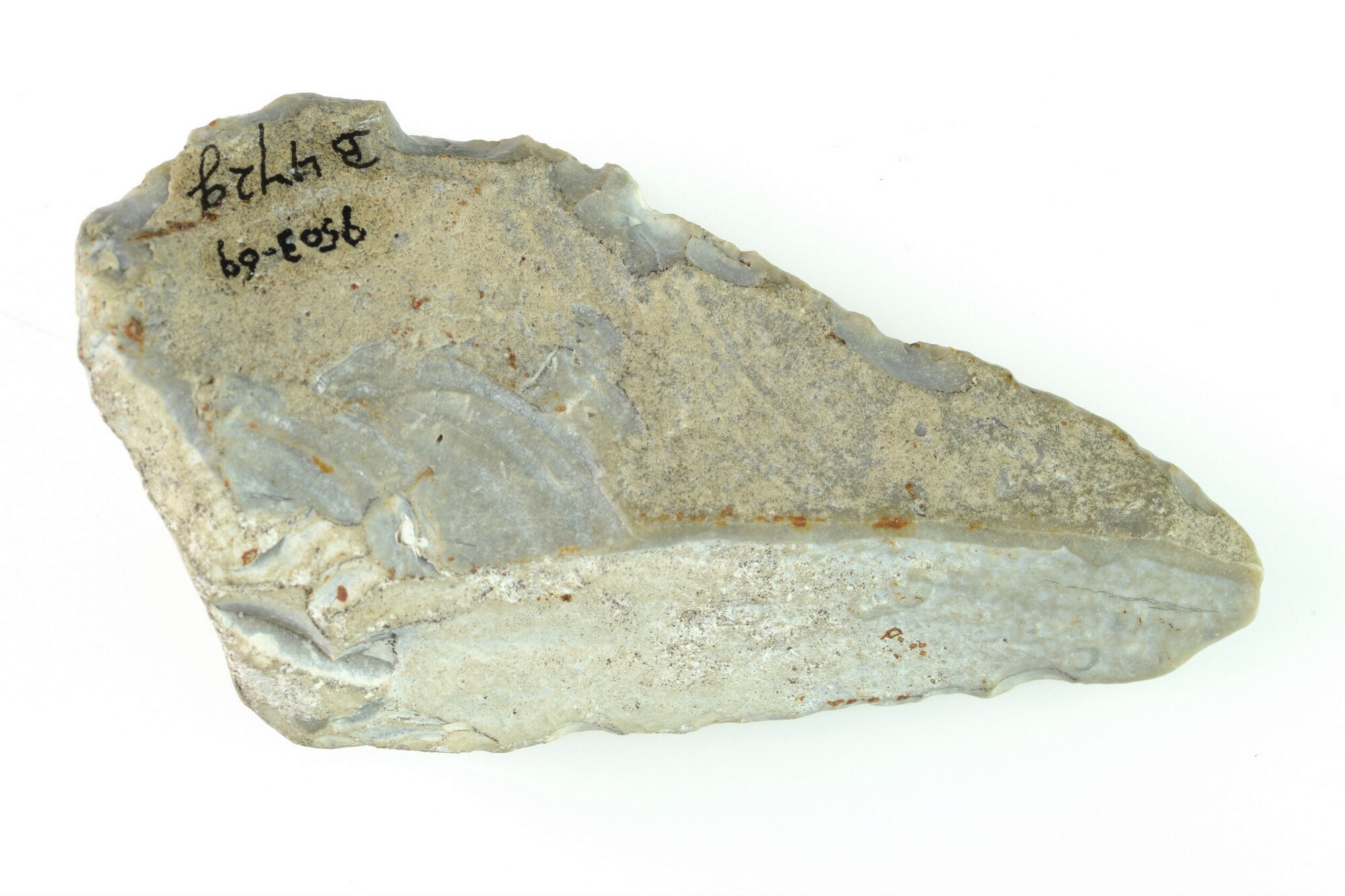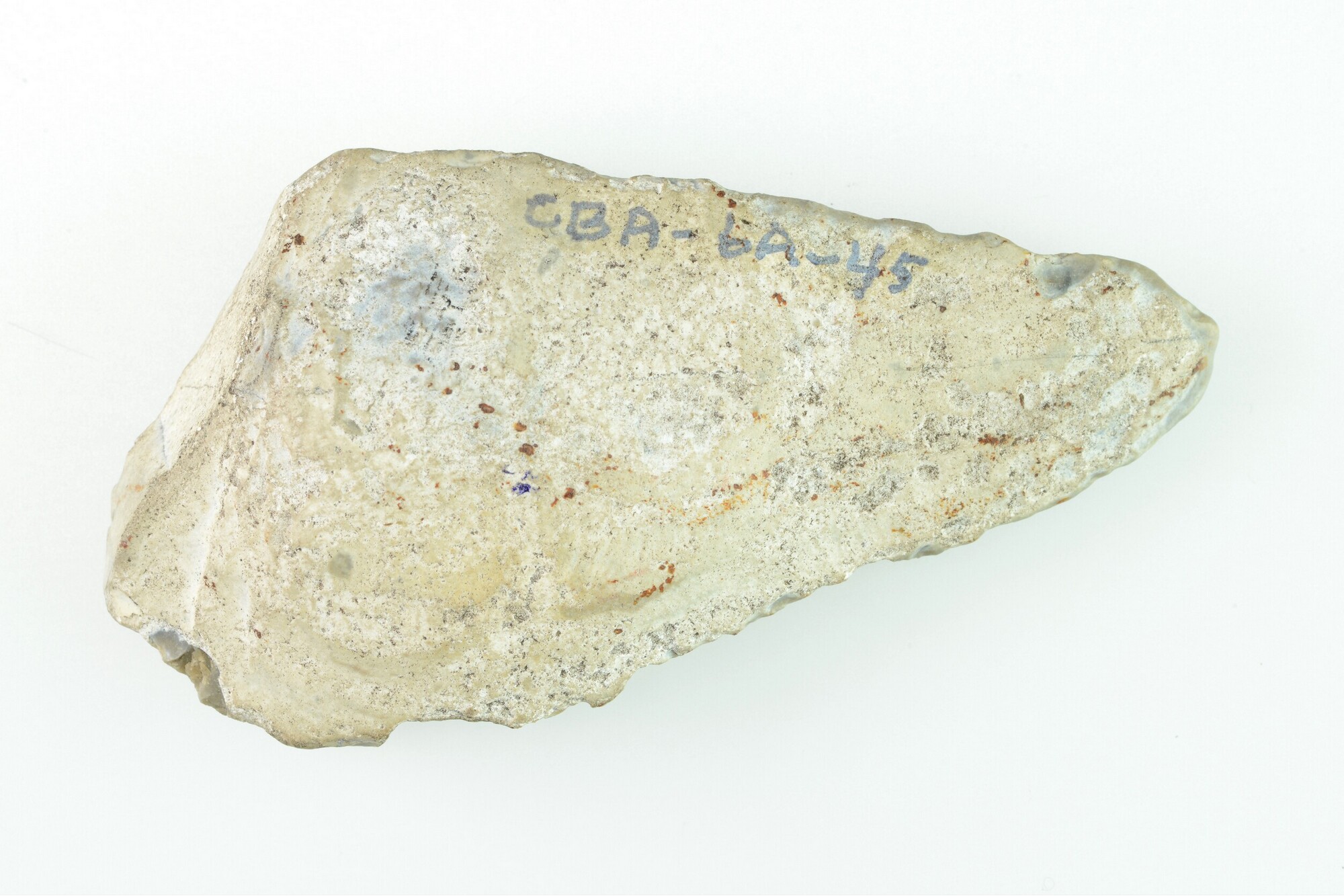 Afslag; matige windlak, zeer poreus; stompe slaghoek; grijs vuursteen; x-coordinaat: 138.530/ y-coordinaat: 471.350