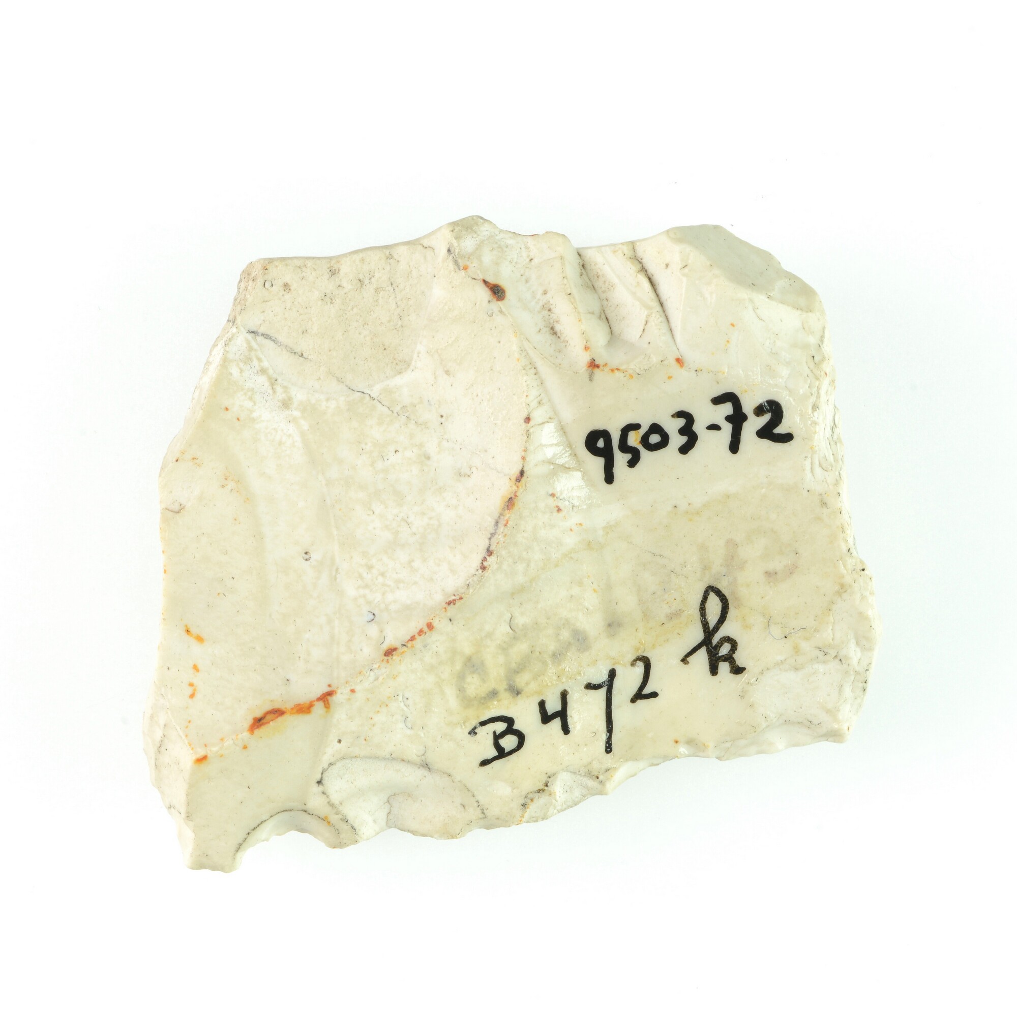 Afslag; geretoucheerd; schaaf convex; witte patina; x-coördinaat: 138.550/ y-coördinaat: 471.100
