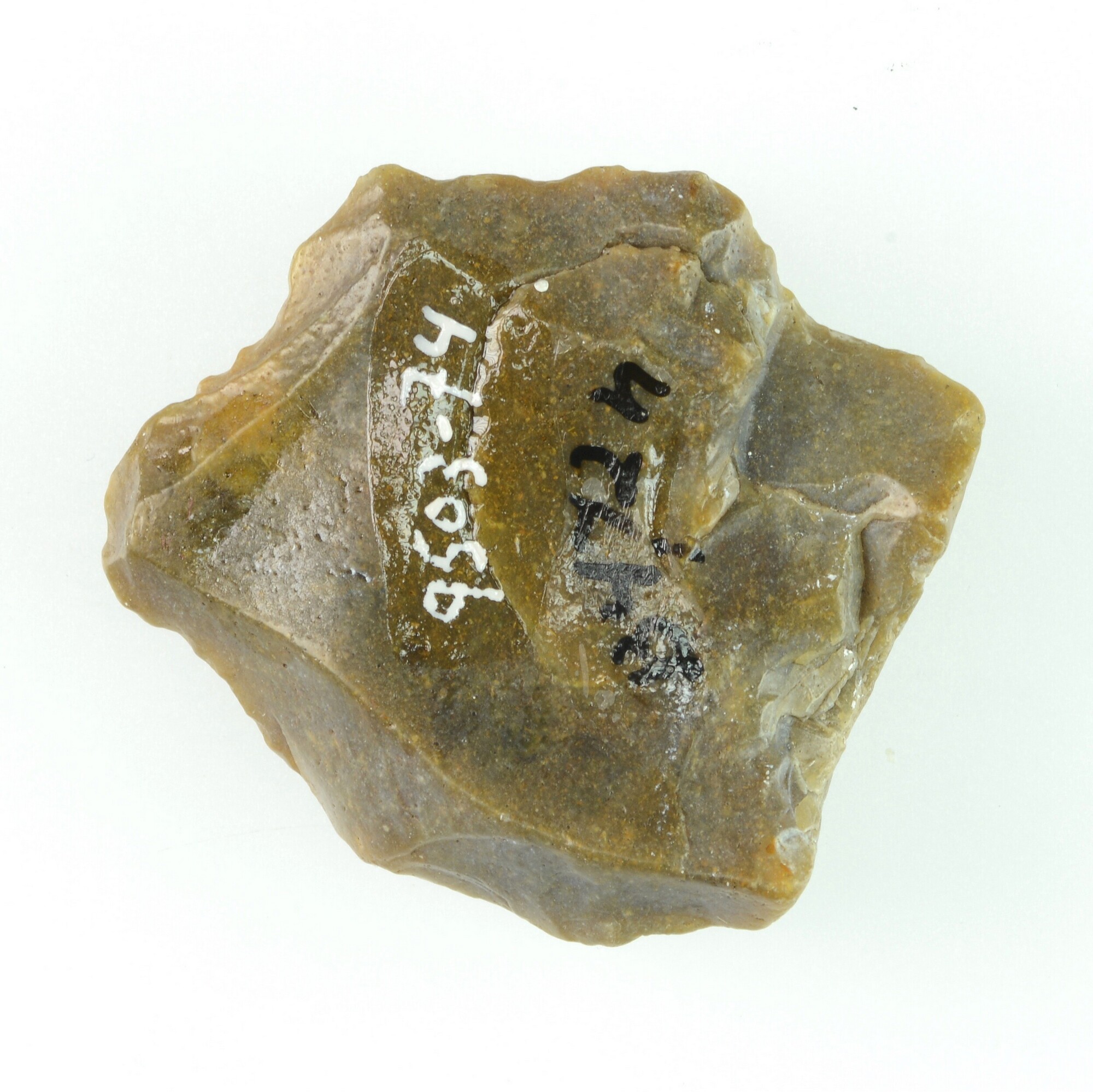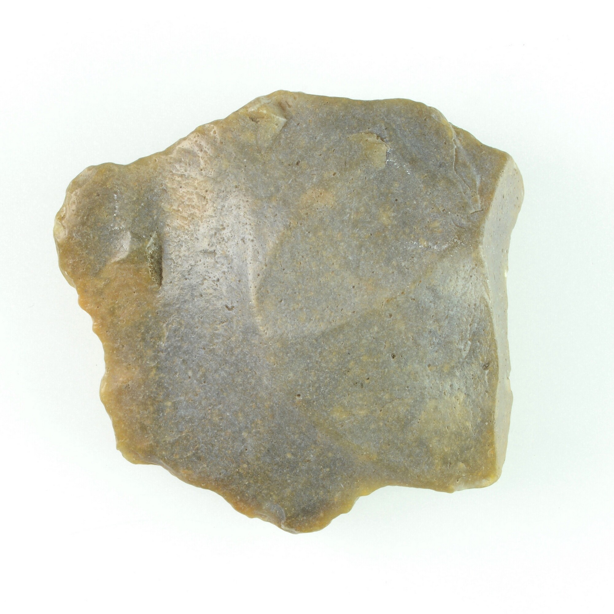 Afslag; dorsaal één negatief; grijs/beige vuursteen