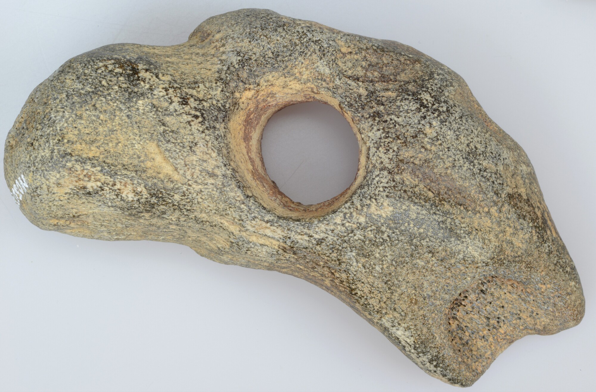 Hakbijl; uit gewei van edelhert; schuine doorboring voor steelaanzet (diameter: 3.0 cm); uiteinde afgebroken