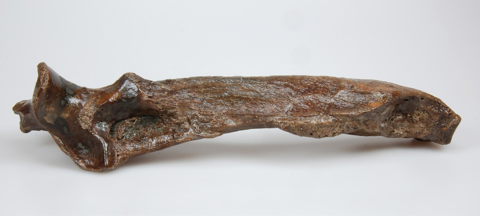 Ellepijp wolharige neushoorn: ulna Coelodonta antiquitatis (Blumenbach, 1799) met vraatsporen van een hyena.