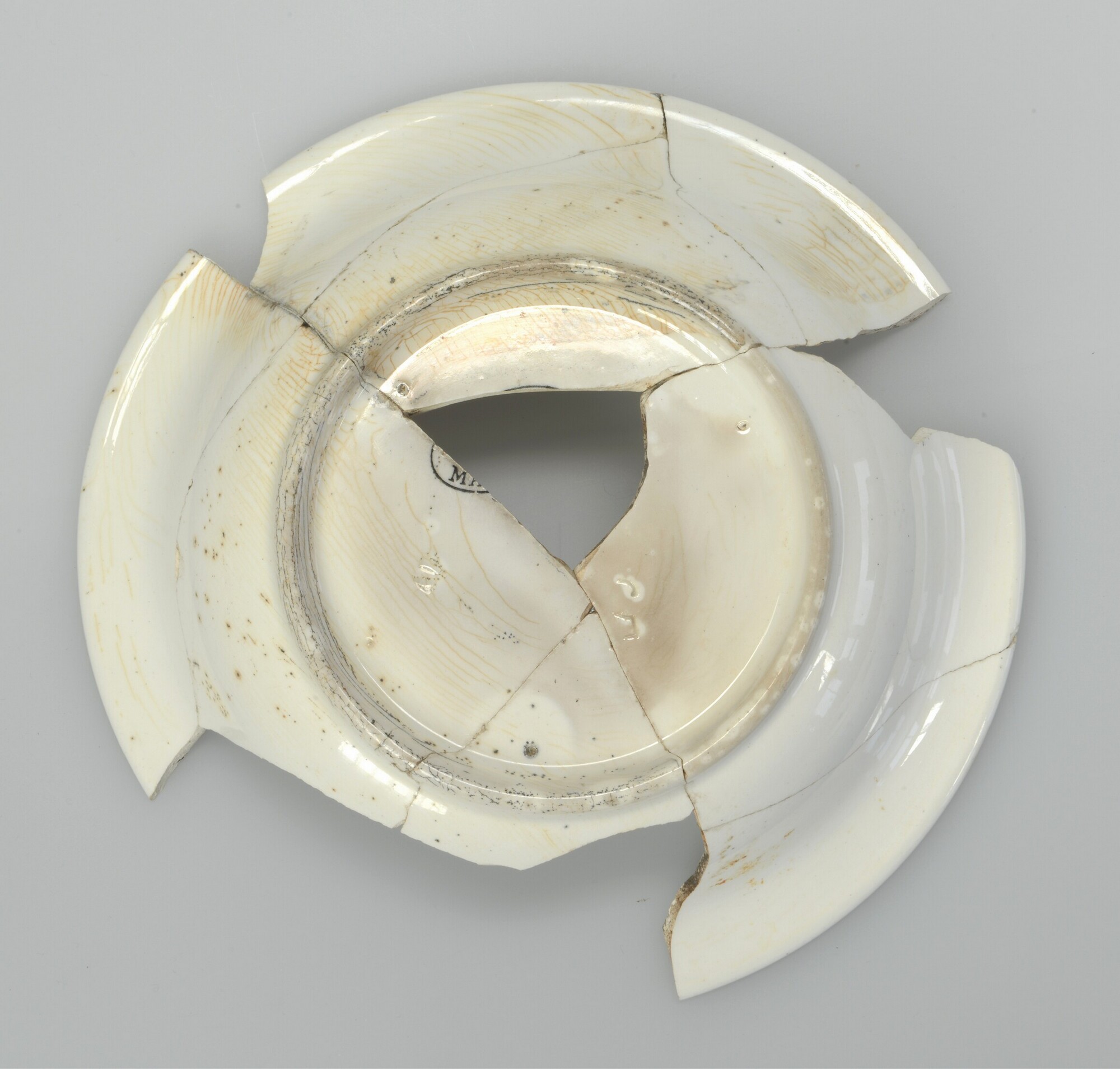 Kom; iw-kom-4; industrieel wit; loodglazuur; standring; parelrand; productieplaats: Maastricht