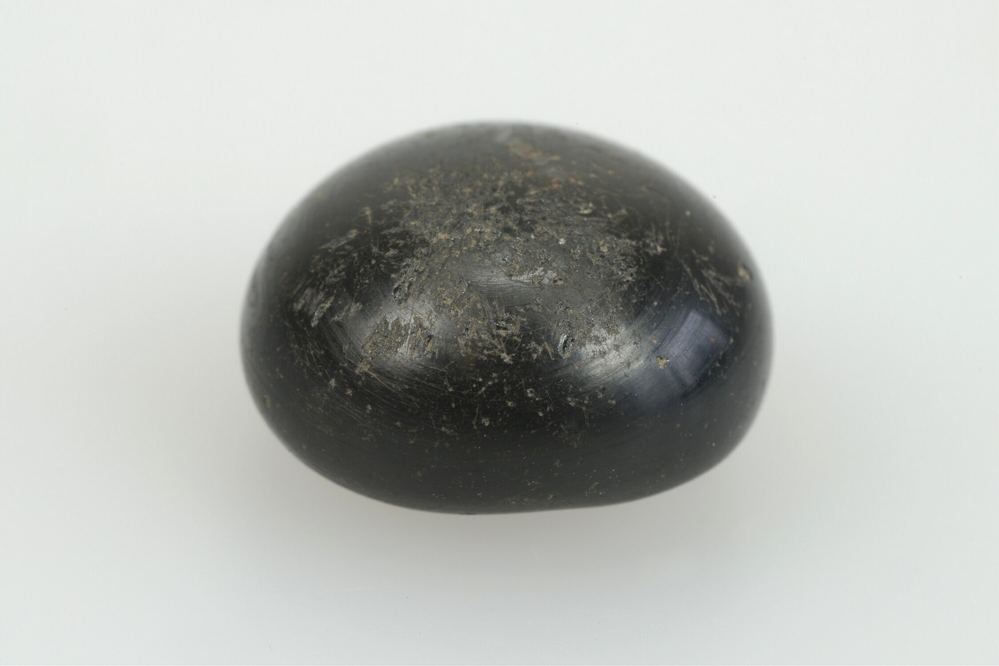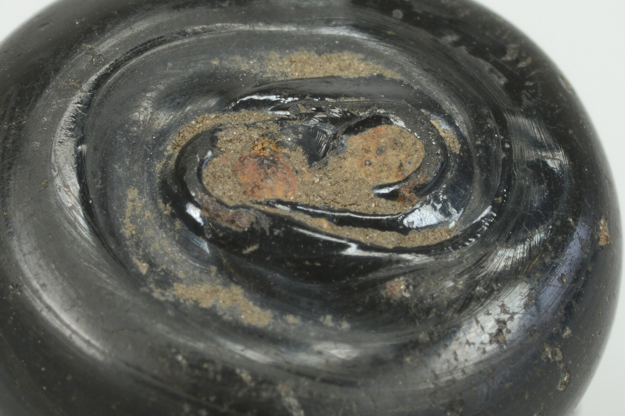 Knoop; zwart glas waarbij het ijzeren oogje aan de onderzijde ontbreekt; herkomst: vermoedelijk Duitsland