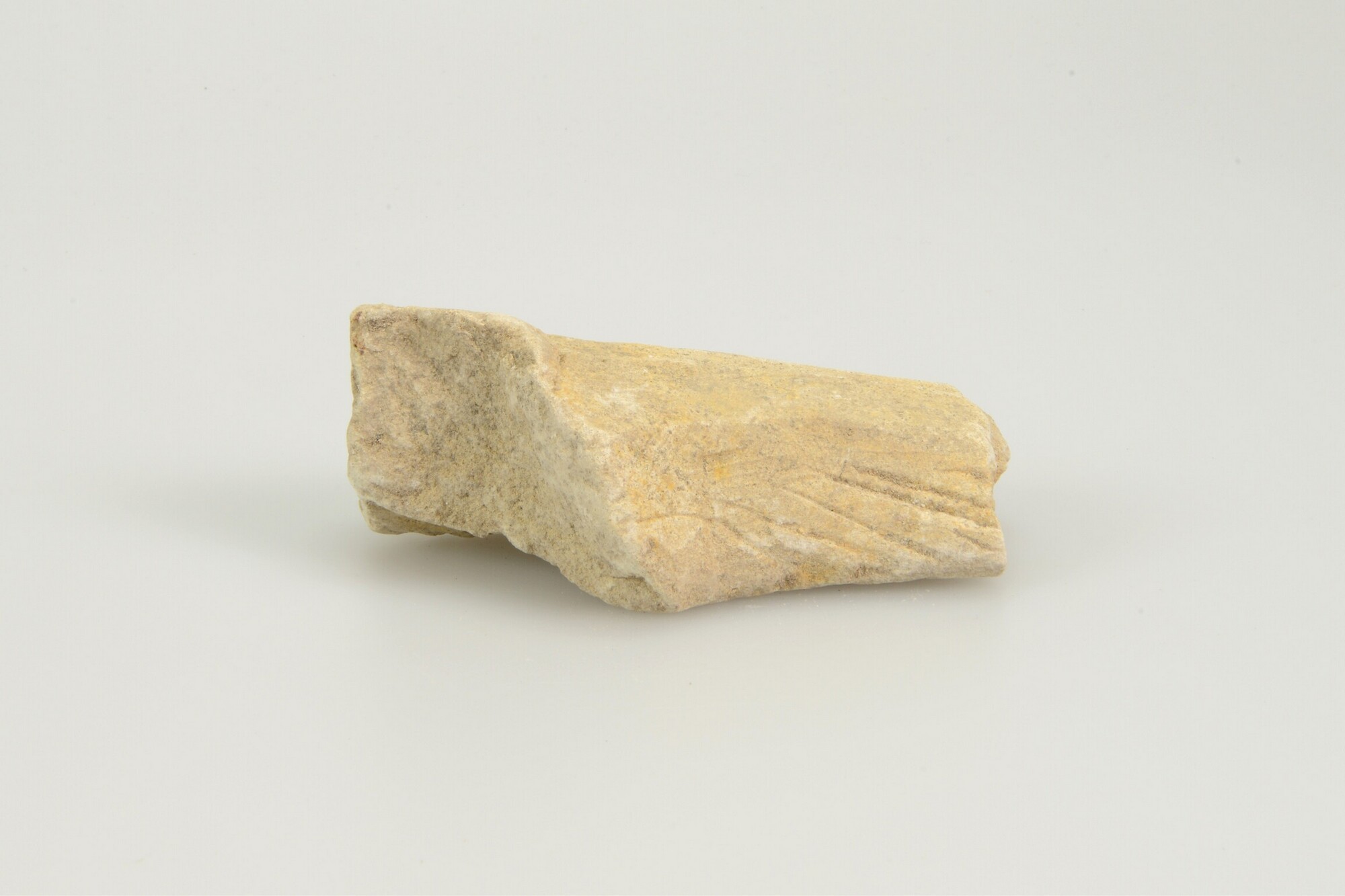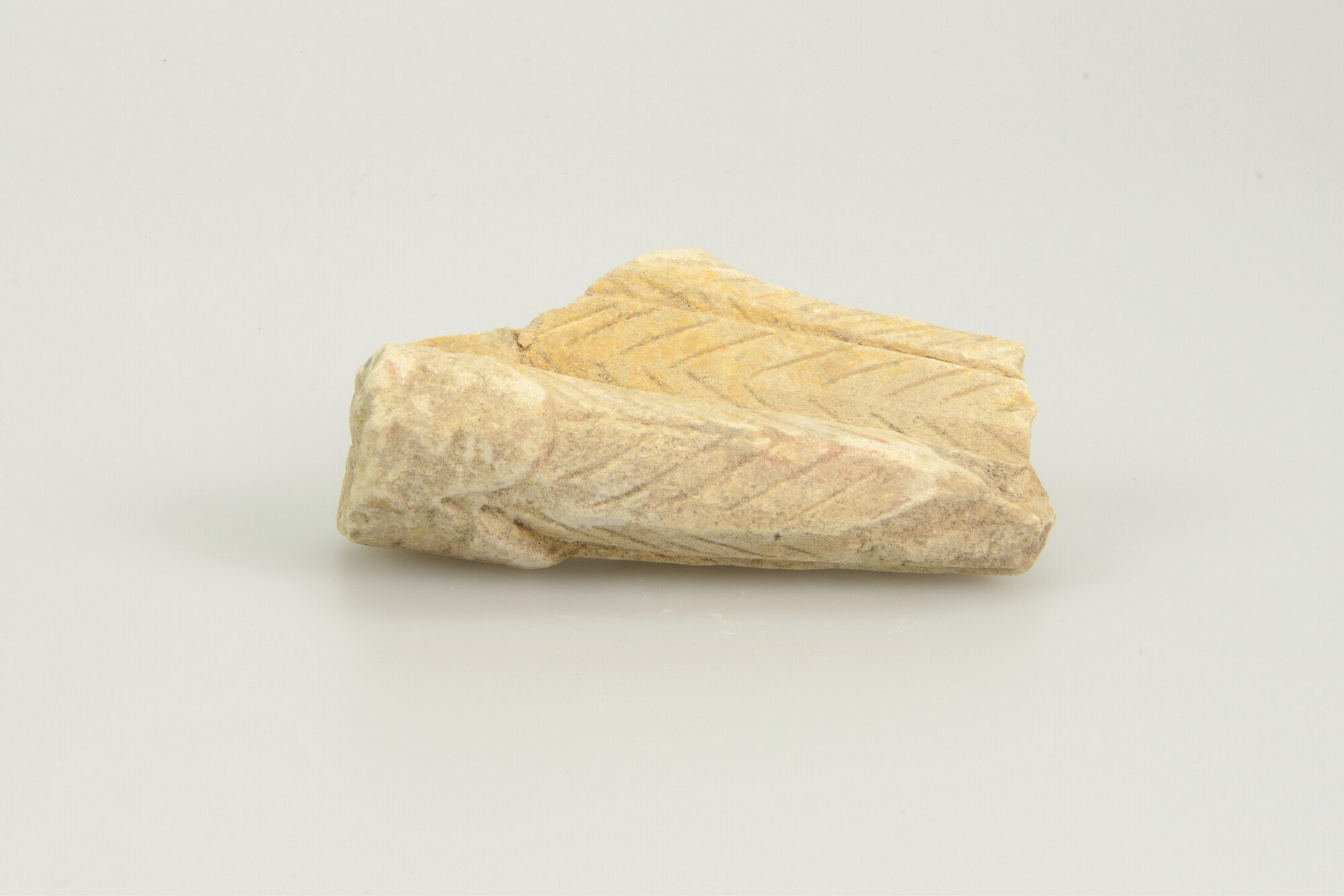 Sacramentshuis, fragment; staand figuur. zigzaglijnen zichtbaar en polychromie