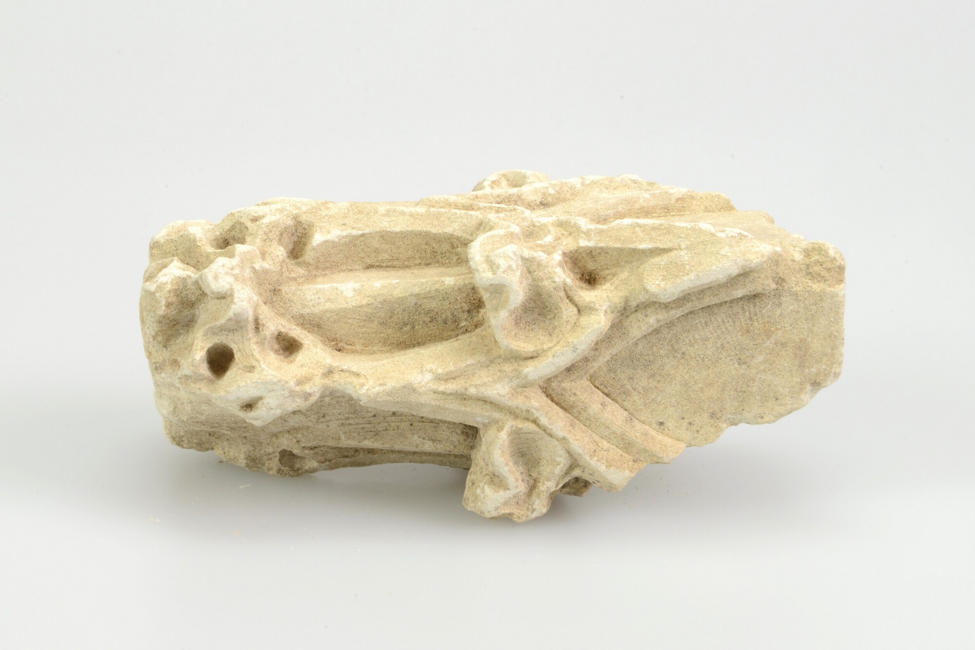 Sacramentshuis, fragment; pinakel met aan ieder van de vier zijden een verdiept veld (casement). Aan de onderzijde een vierkant dookgat