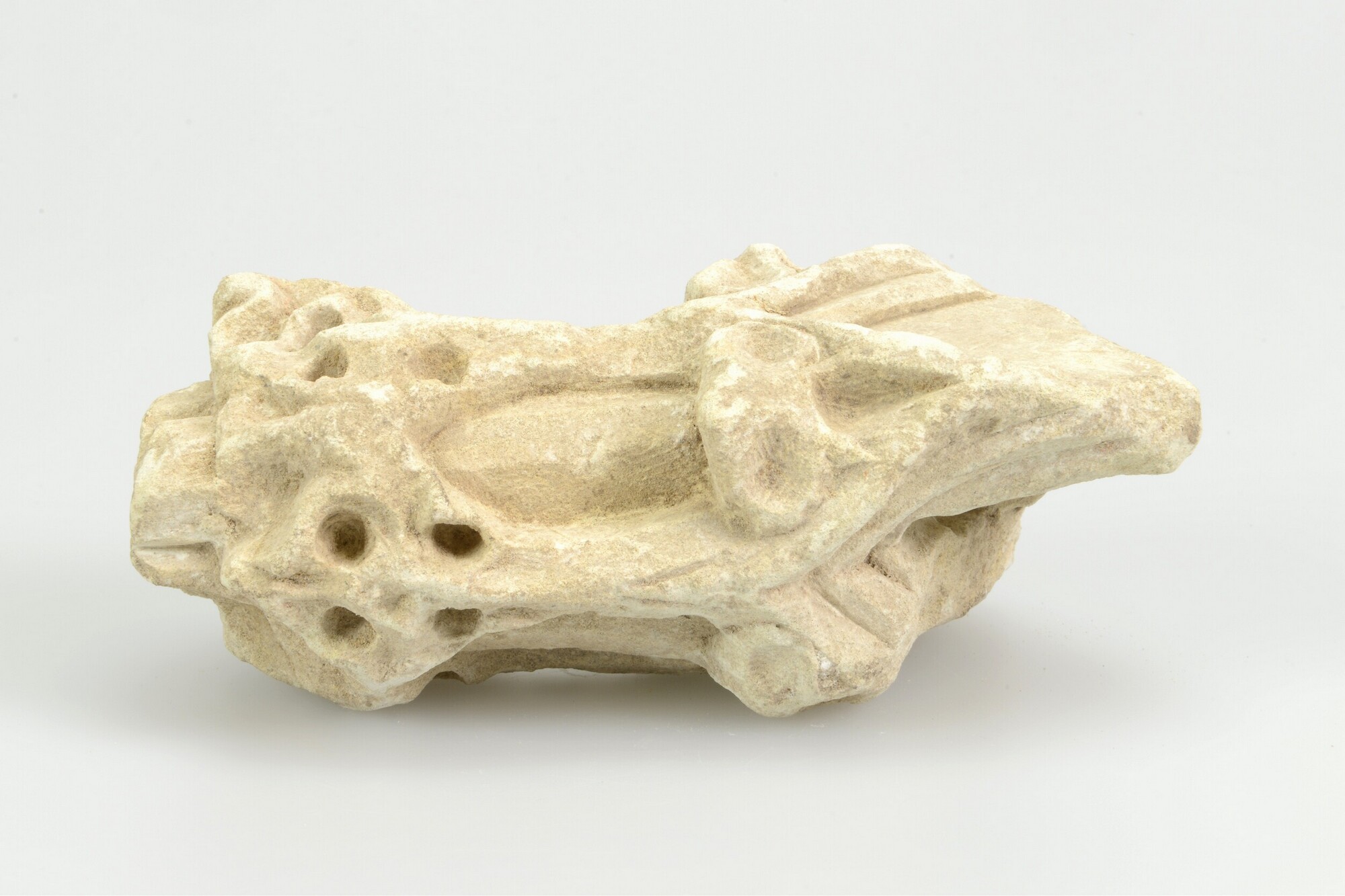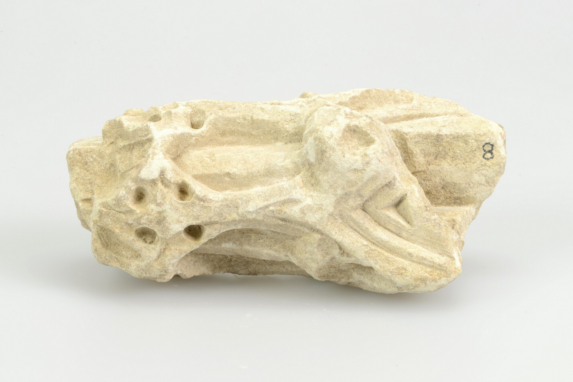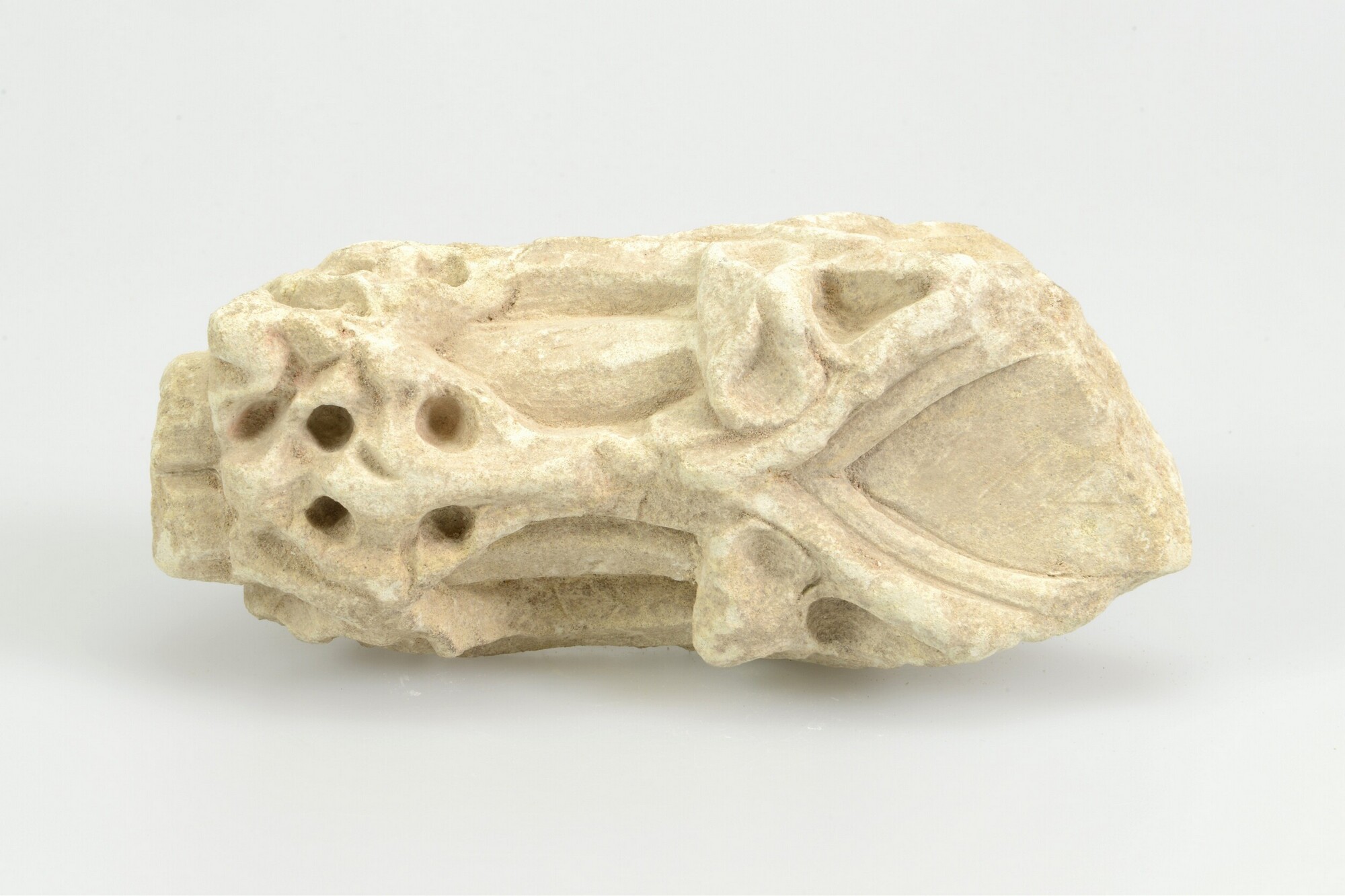 Sacramentshuis, fragment; pinakel met aan ieder van de vier zijden een verdiept veld (casement). Aan de onderzijde een vierkant dookgat