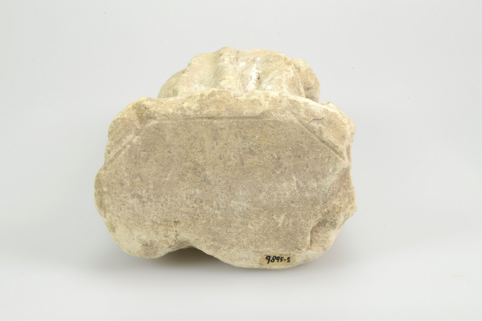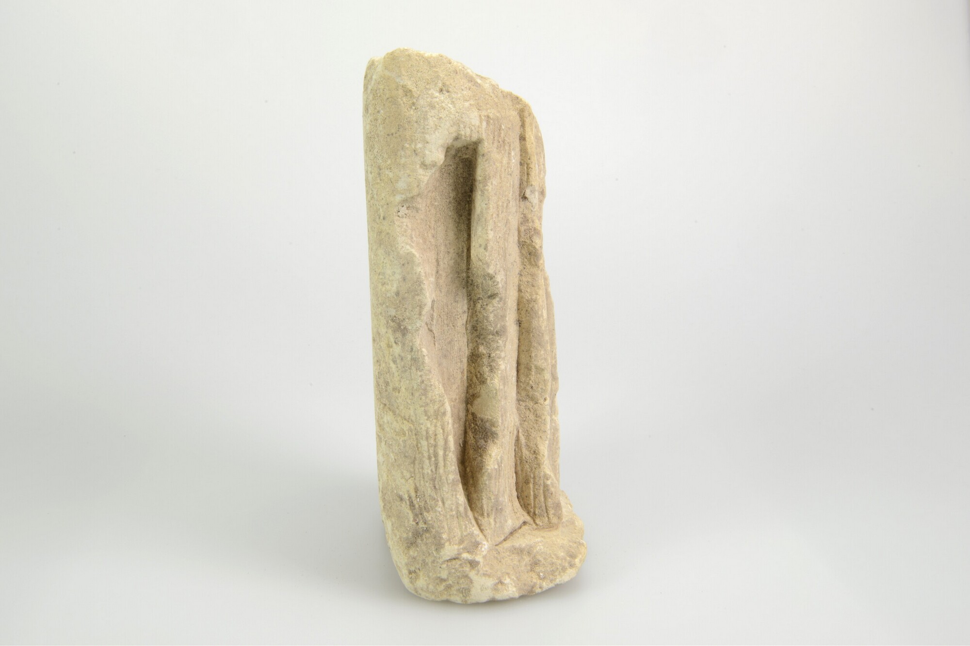 Sacramentshuis, fragment; onderzijde van een figuur met een geprononceerd linkerbeen (een van de Driekoningen? Johannes de Doper? Rochus?