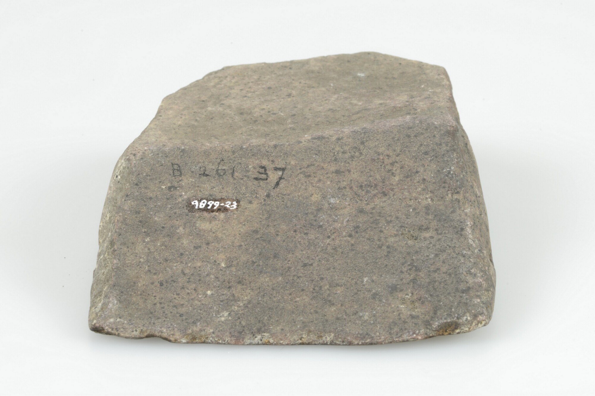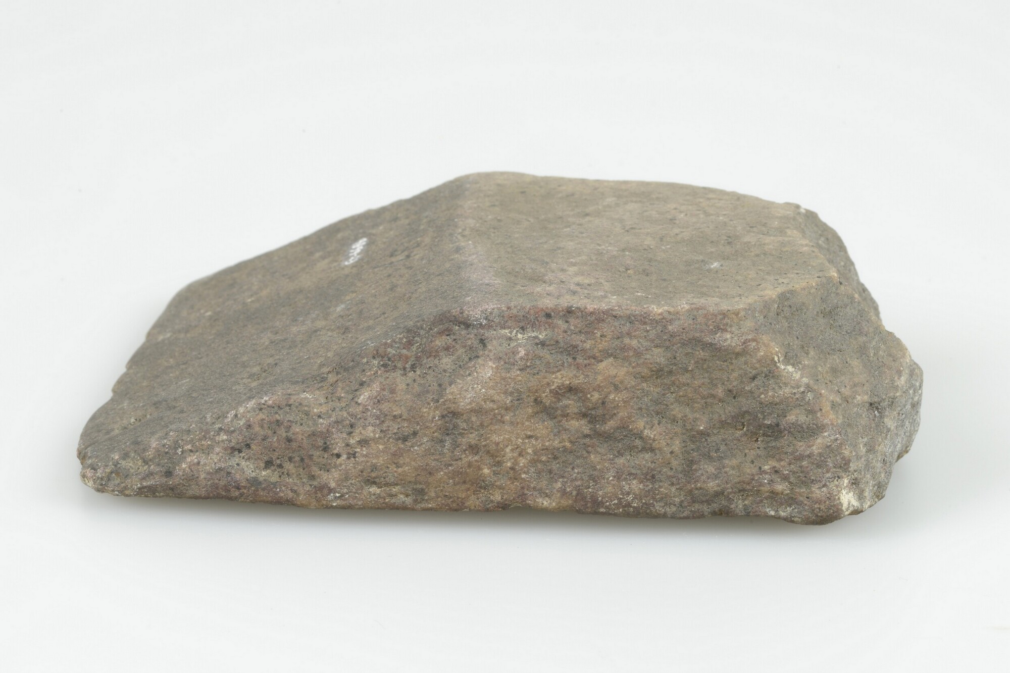 Falsificatie van een wig, bijlvormig, van roodachtige zandsteen