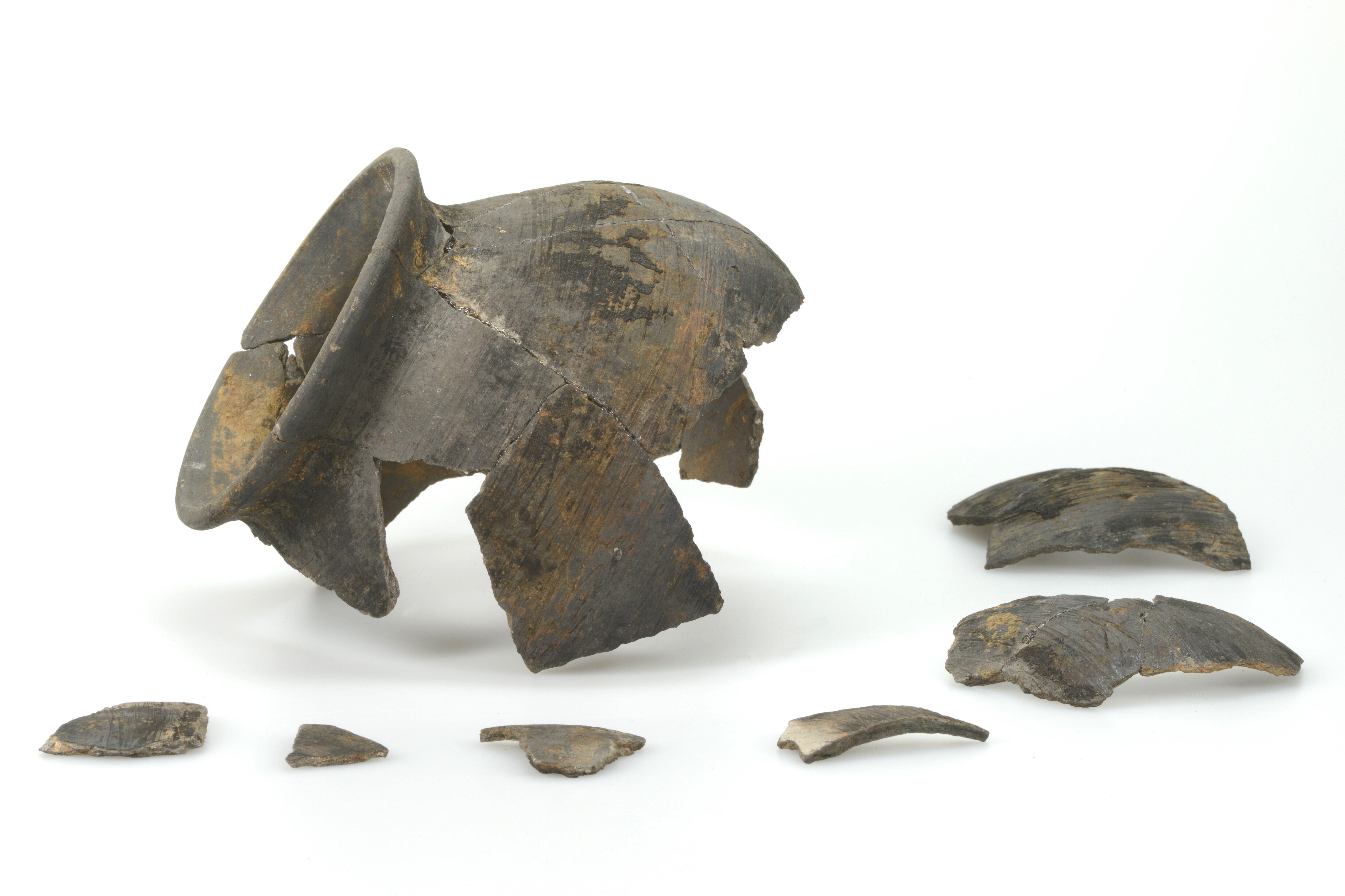 Kogelpot; kp-kog-4; kogelpot met rechte van boven afgeplatte rand; kogelpot-aardewerk; bezemstreekversiering
